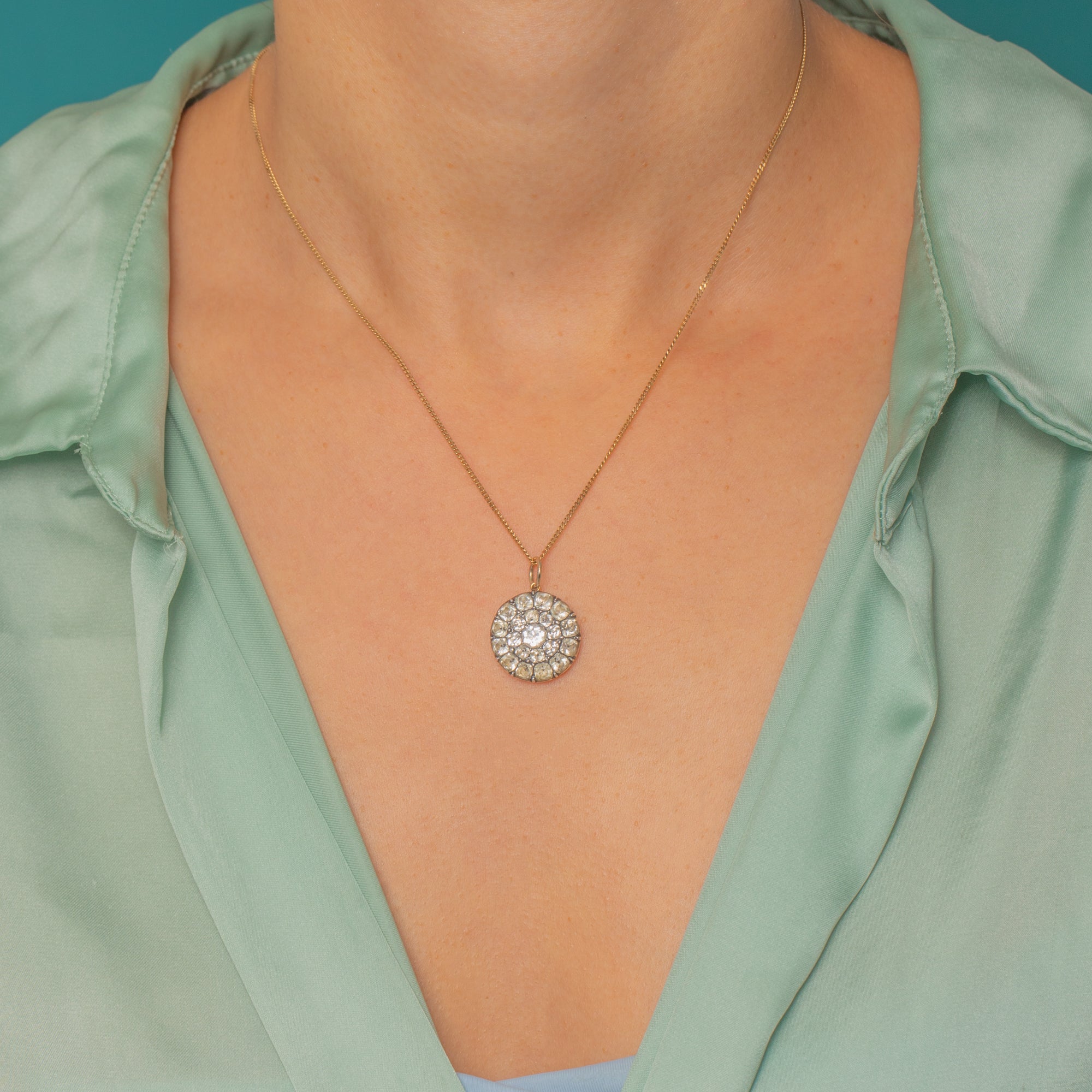 This exquisite Georgian pendant shimmers with a halo of bright Black Dot Paste stones set in Silver. Arranged in a perfect circular cluster, the graduated stones create a mesmerising play of light reminiscent of early Diamond jewels. The foil-backed stones sparkle with depth and warmth, a hallmark of fine 18th-century craftsmanship.
