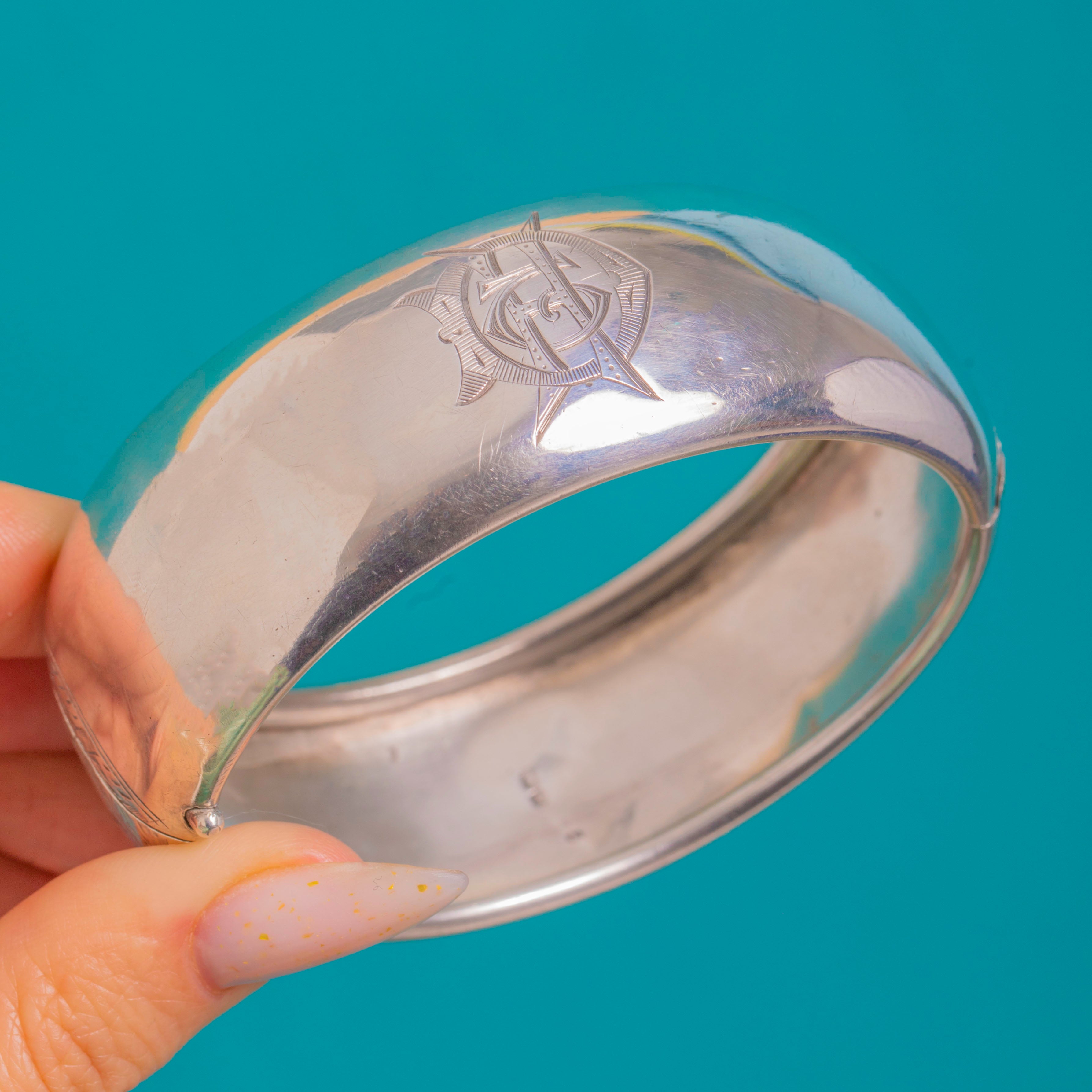 Hallmarked in Birmingham for 1884, the bangle has a secure side hinge and neat push‑in box clasp that provides easy, confident wear, while a satisfying 36.5g of Silver gives this antique treasure a luxurious presence, perfect worn solo or alongside your favourite stack.