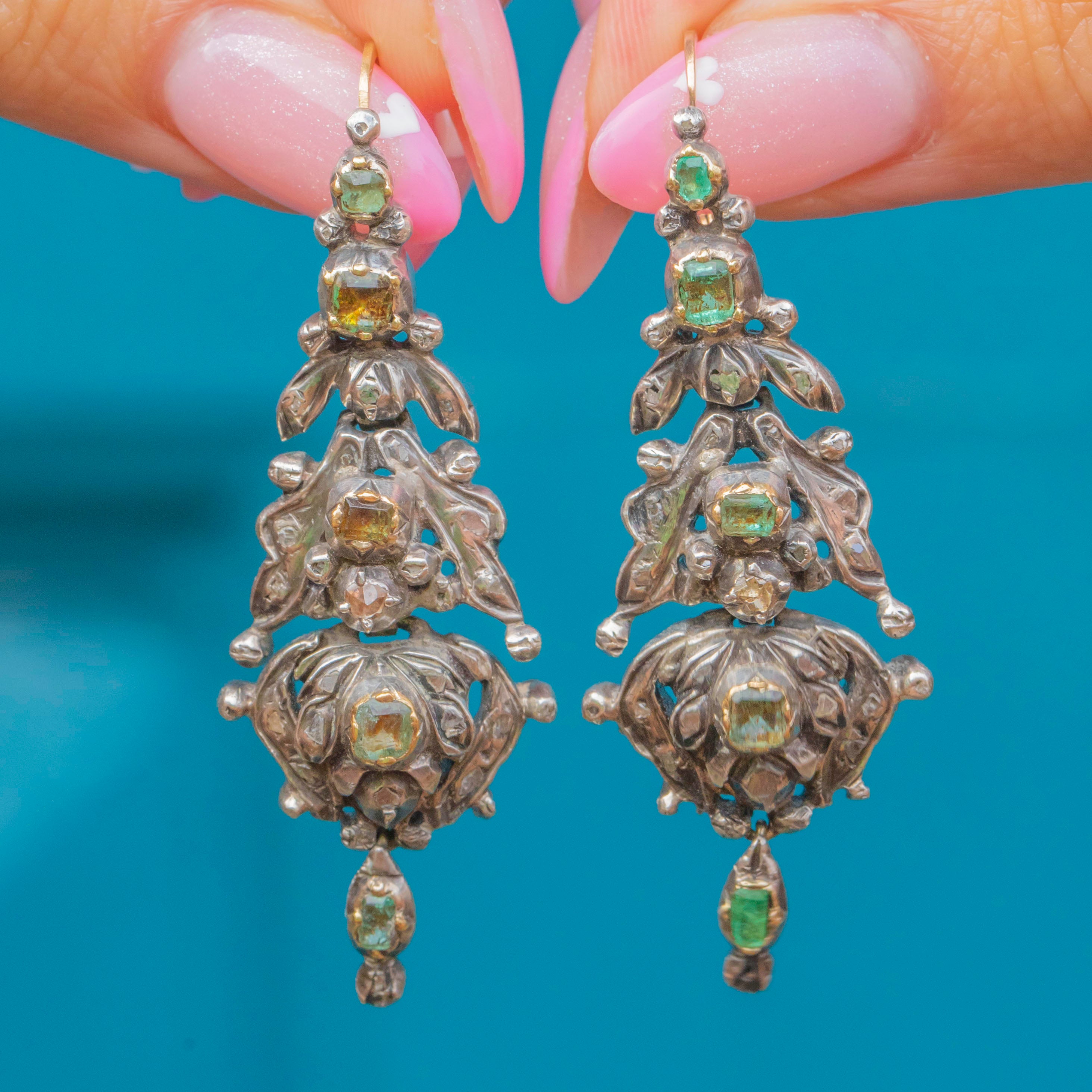 Iberian Emerald & Rose-Cut Diamond Drop Earrings, c.1780-1790