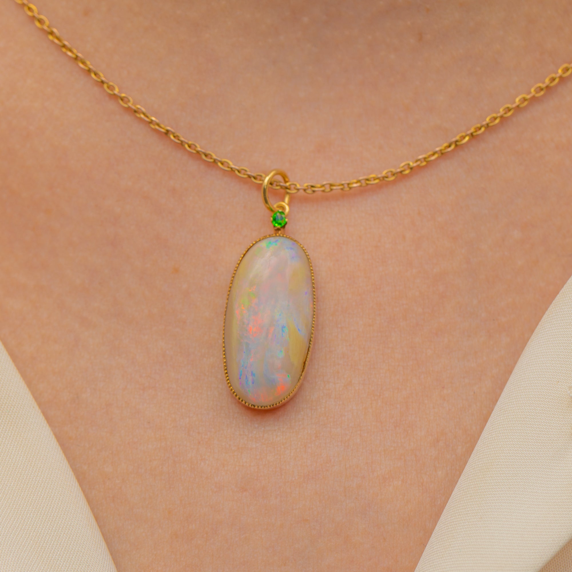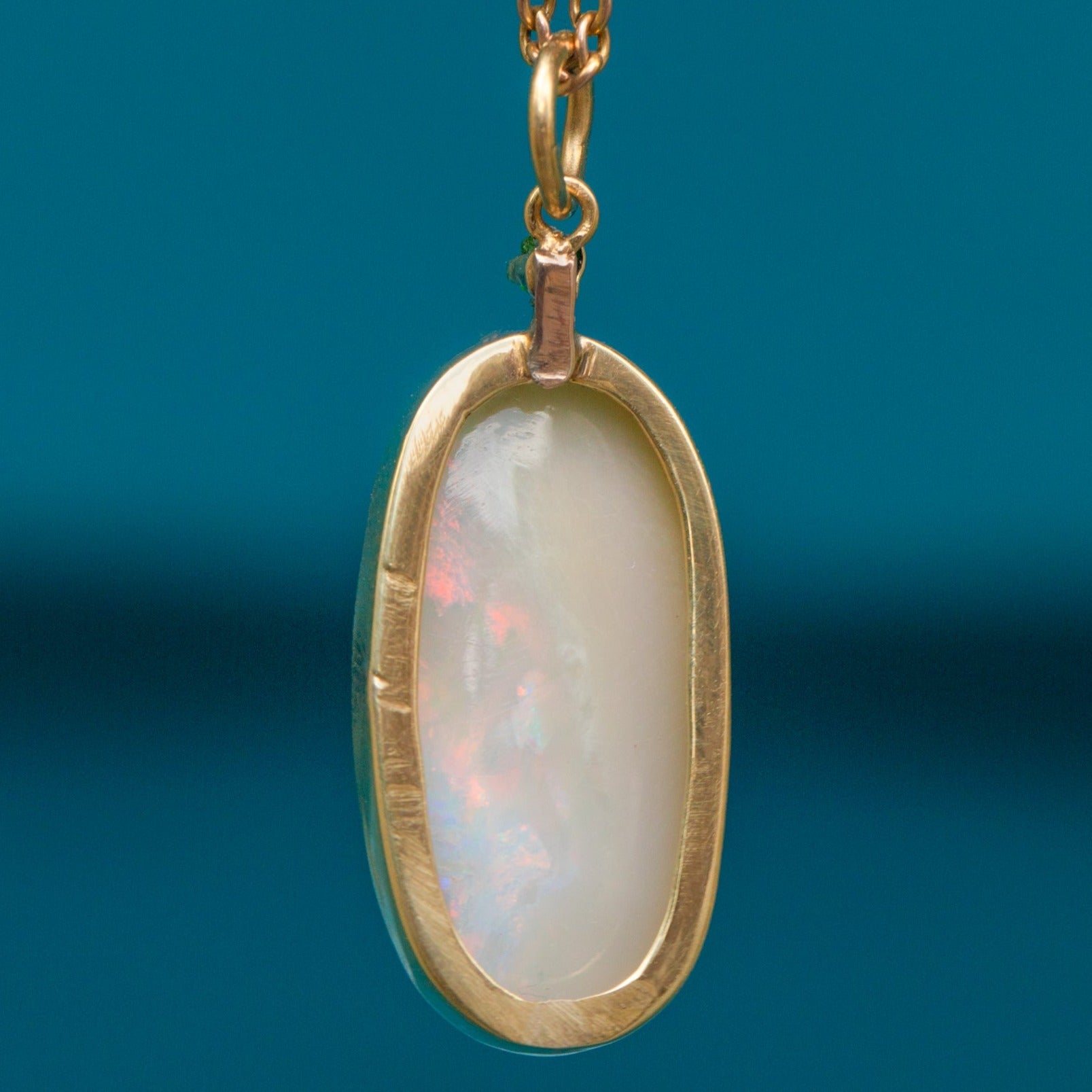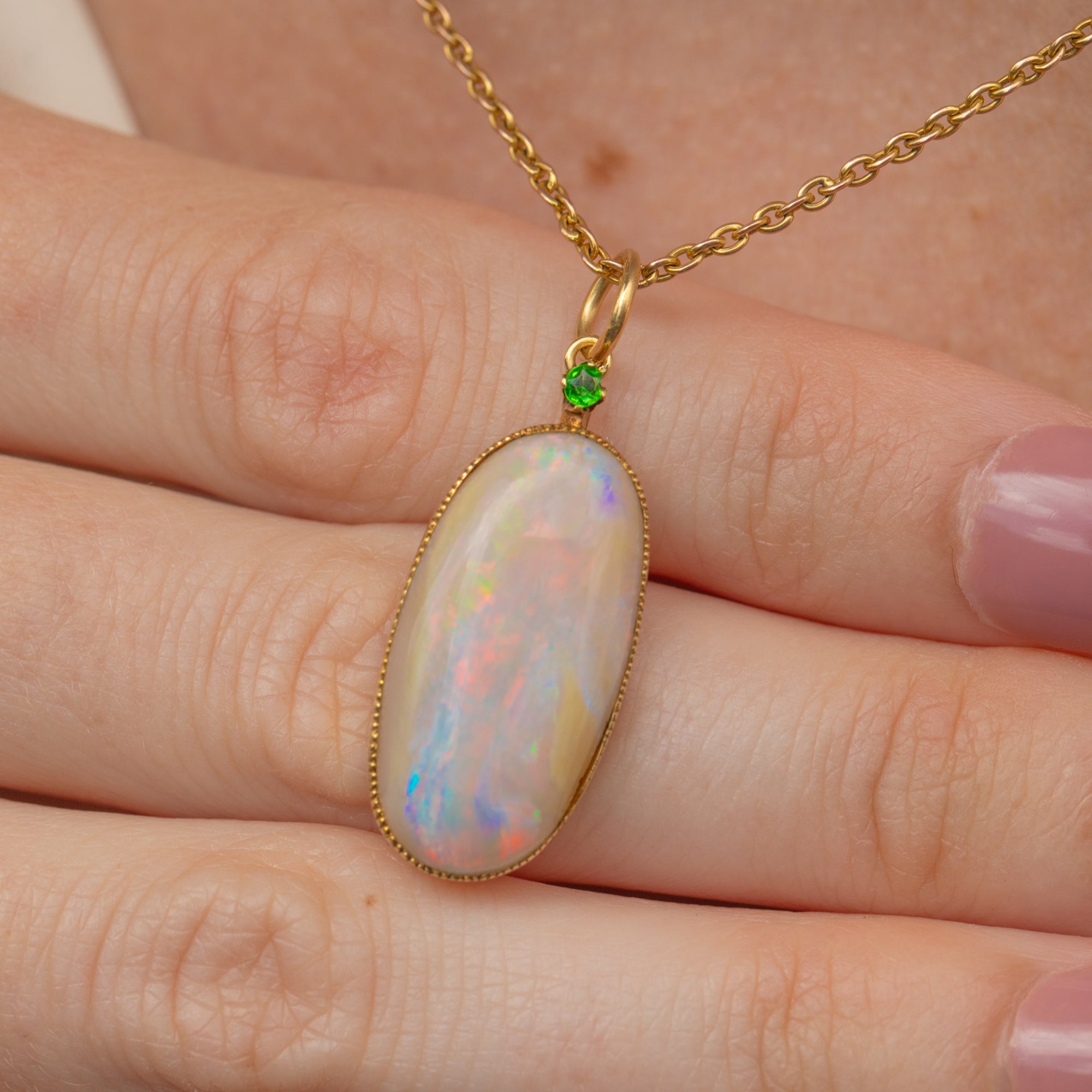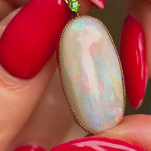 Large 15ct Gold Opal Pendant- Demantoid Garnet, 5.76ct Opal