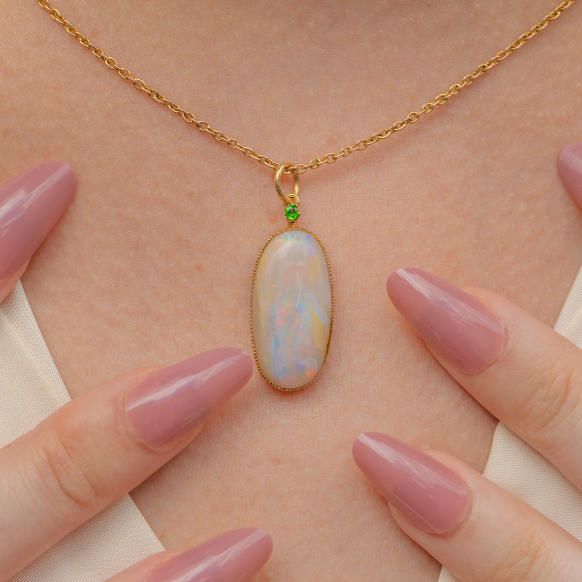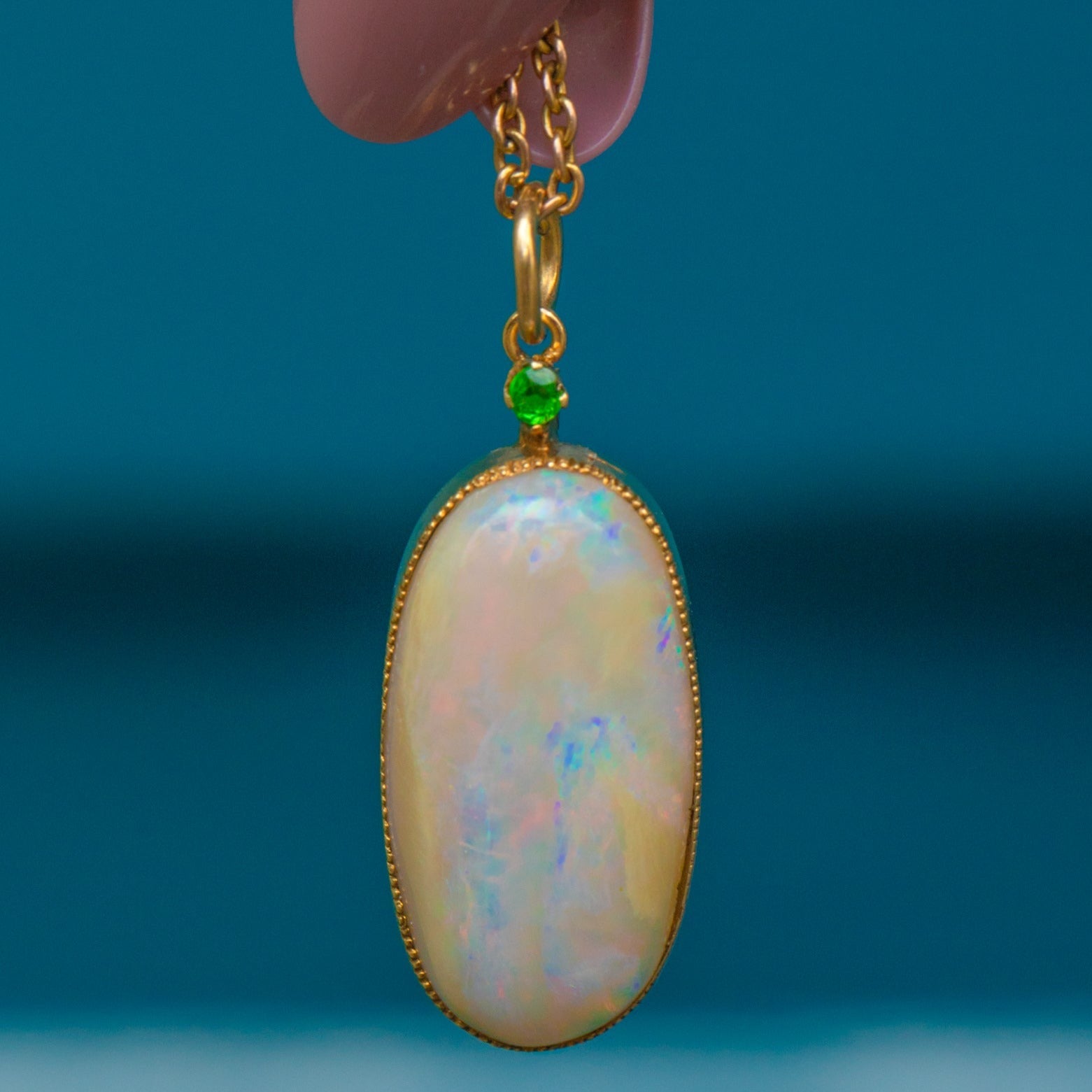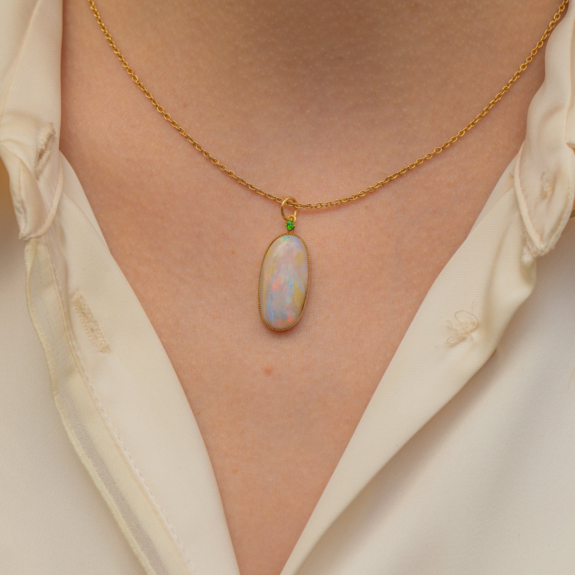 Large 15ct Gold Opal Pendant- Demantoid Garnet, 5.76ct Opal