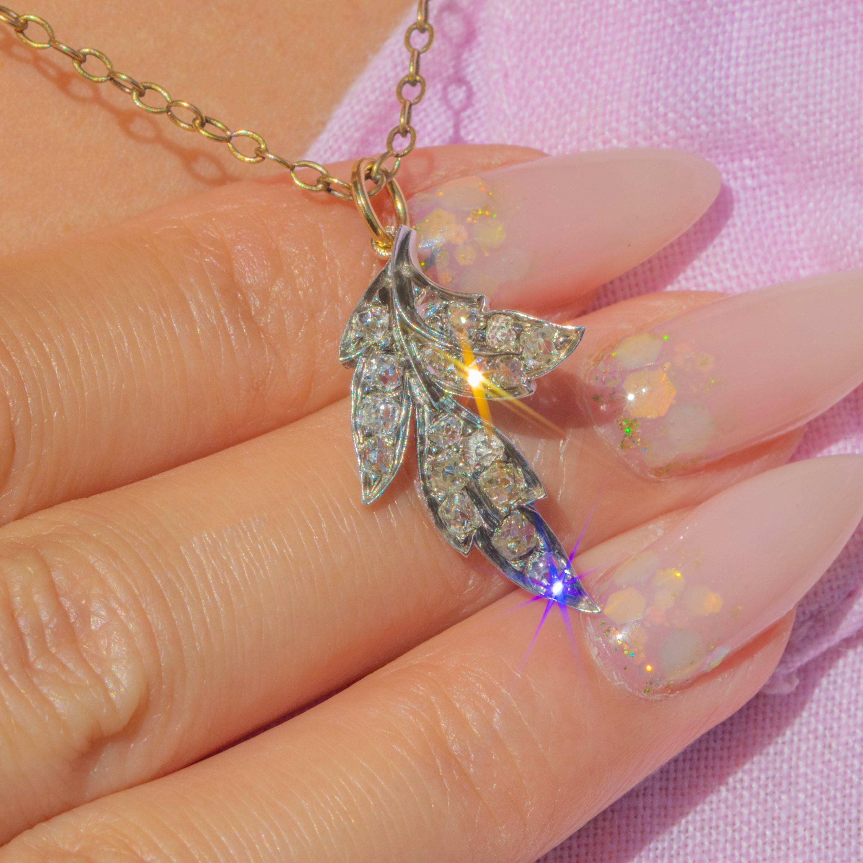 Large Antique 18ct & Silver Old Mine Cut Diamond Leaf Charm 0.70cts