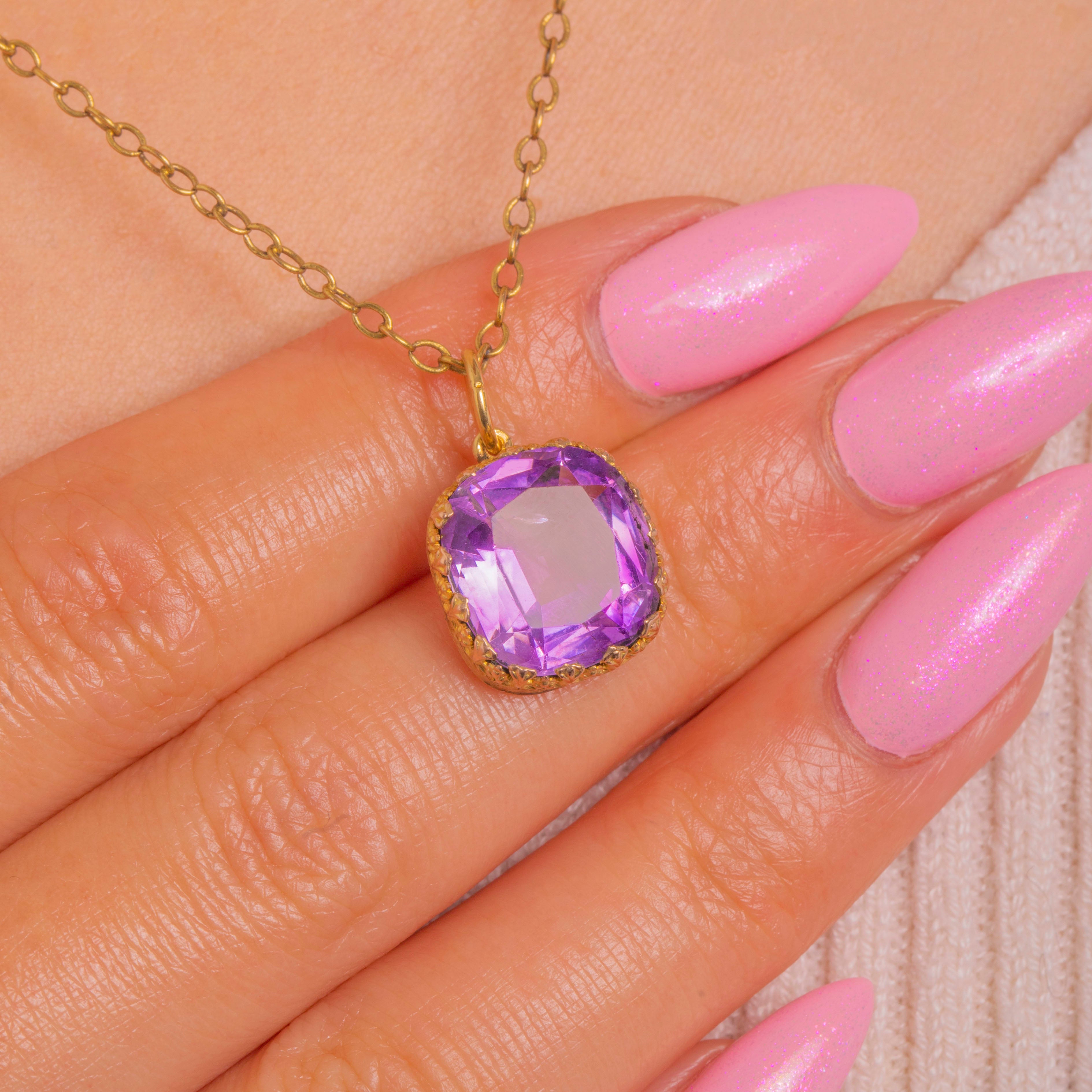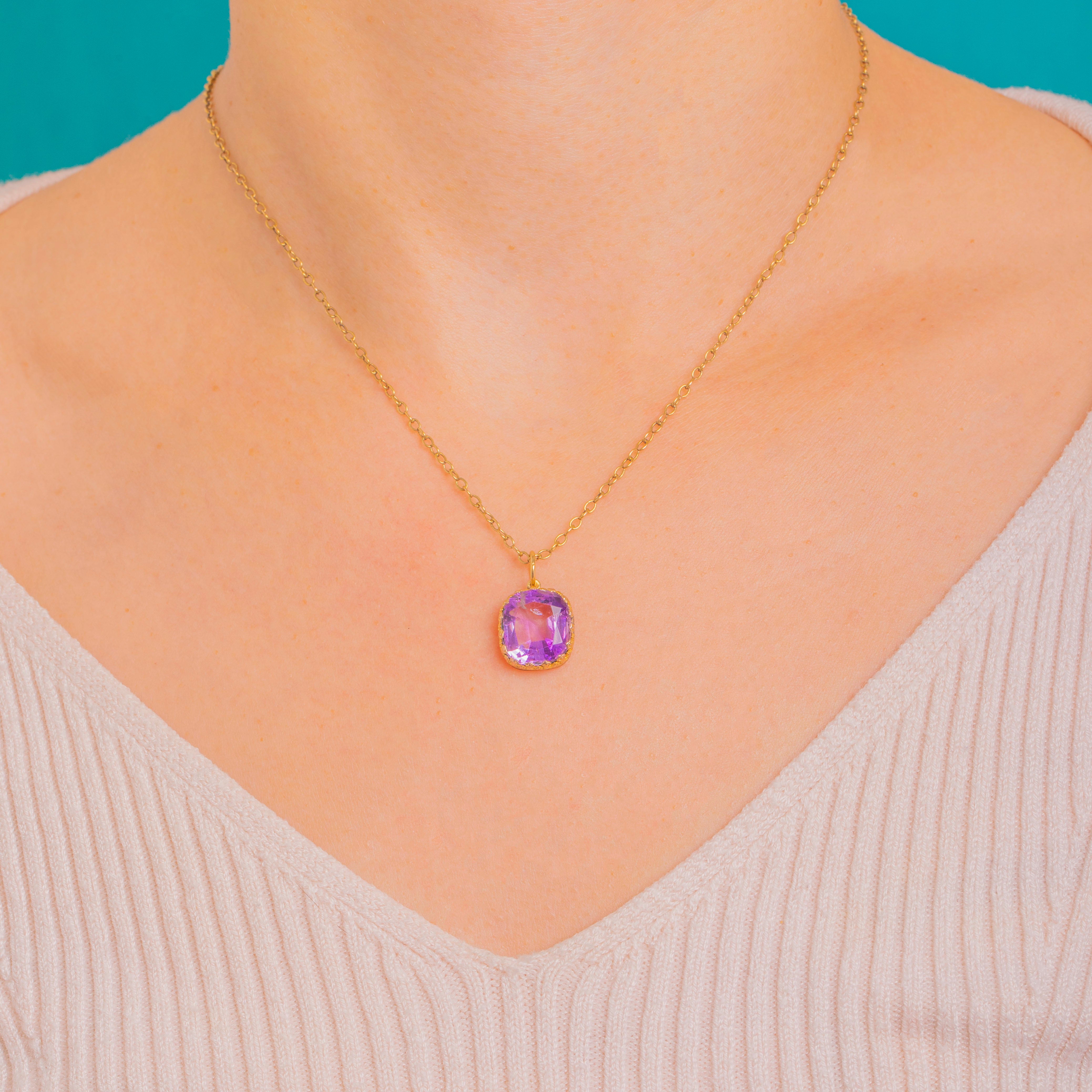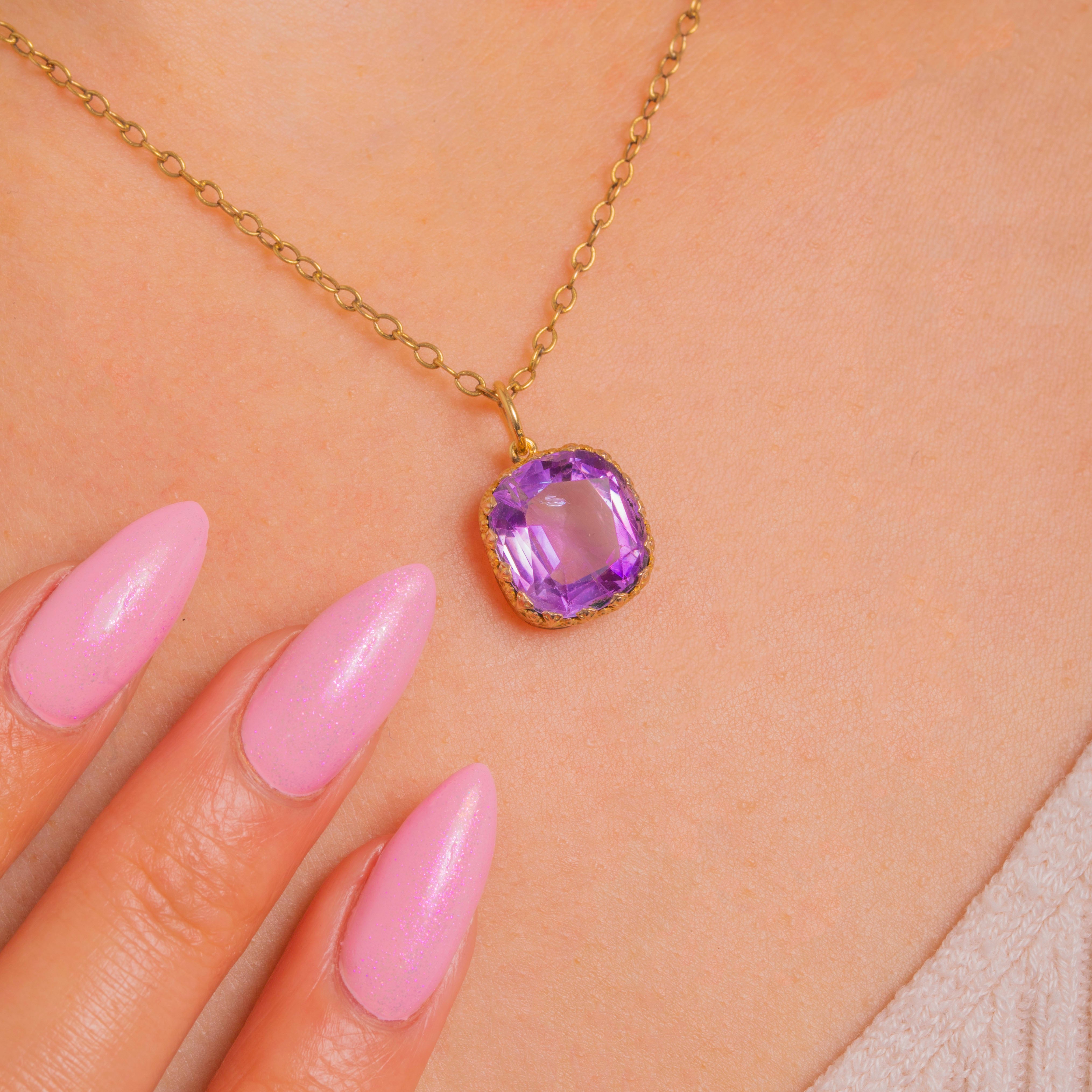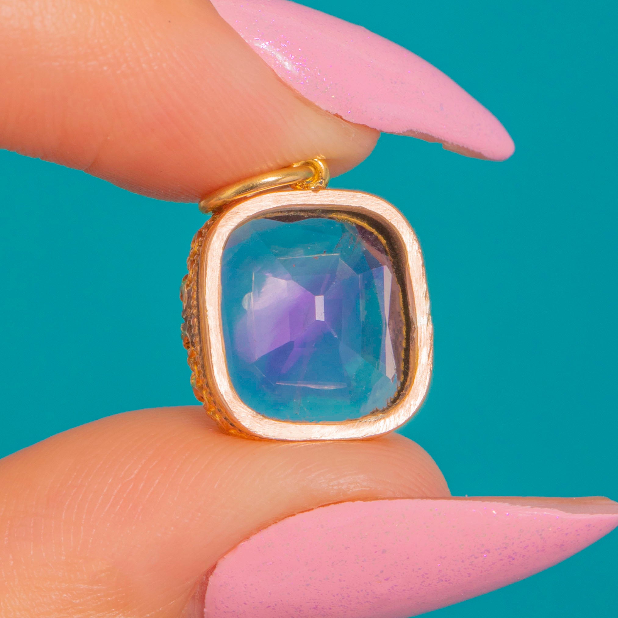 Mit satten violetten Nuancen erstrahlt dieser Victorian Amethyst-Anhänger, gefertigt aus 15ct Gold, und fängt die romantische Ästhetik der Epoche in einer edlen, tragbaren Form ein. Der kissenförmige Amethyst besticht durch seine intensive Farbe und elegante Ausstrahlung, meisterhaft gefasst, um Facettierung und Farbtiefe hervorzuheben.