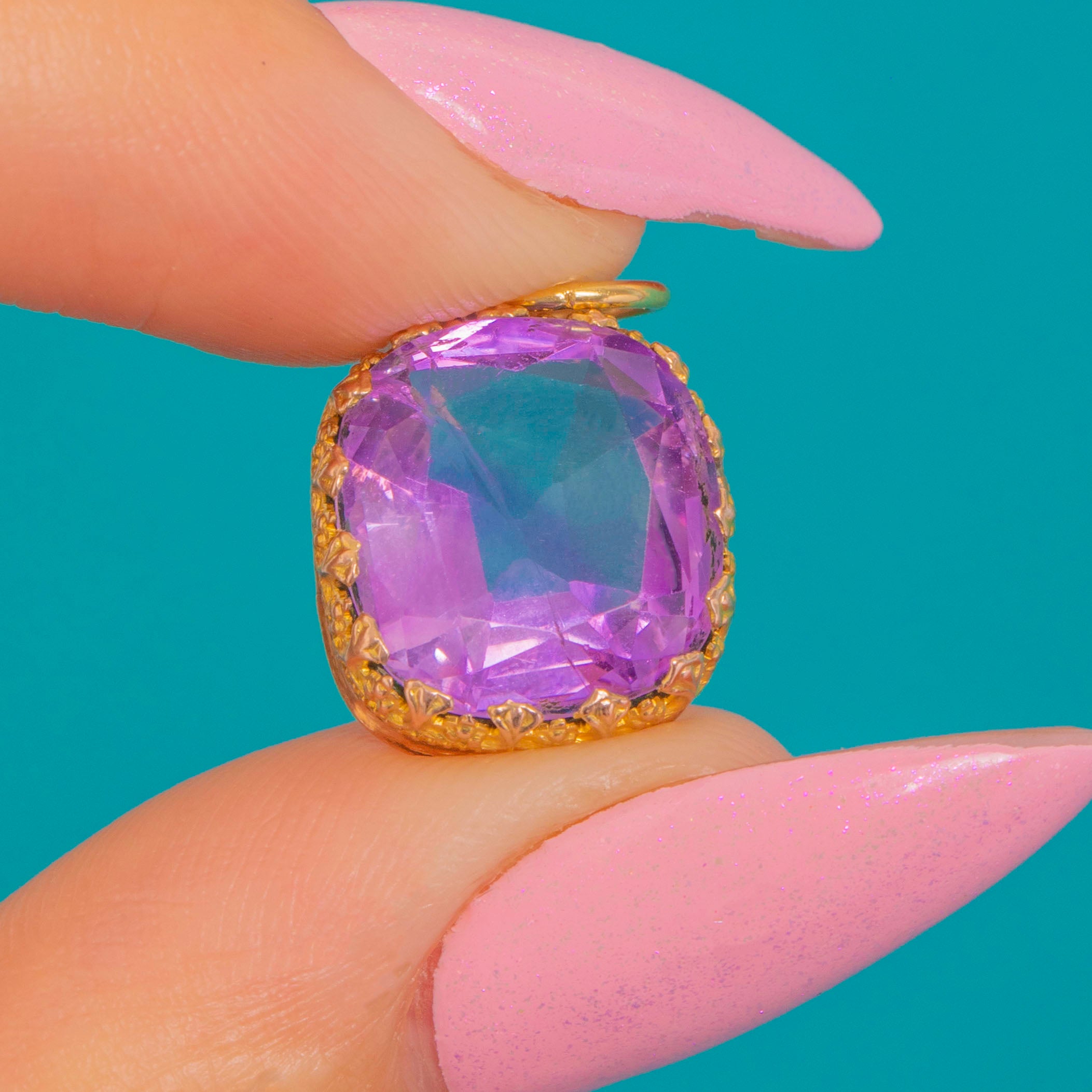 Prächtiger Victorian Anhänger aus 15ct Gold mit Krappenfassung und Amethyst