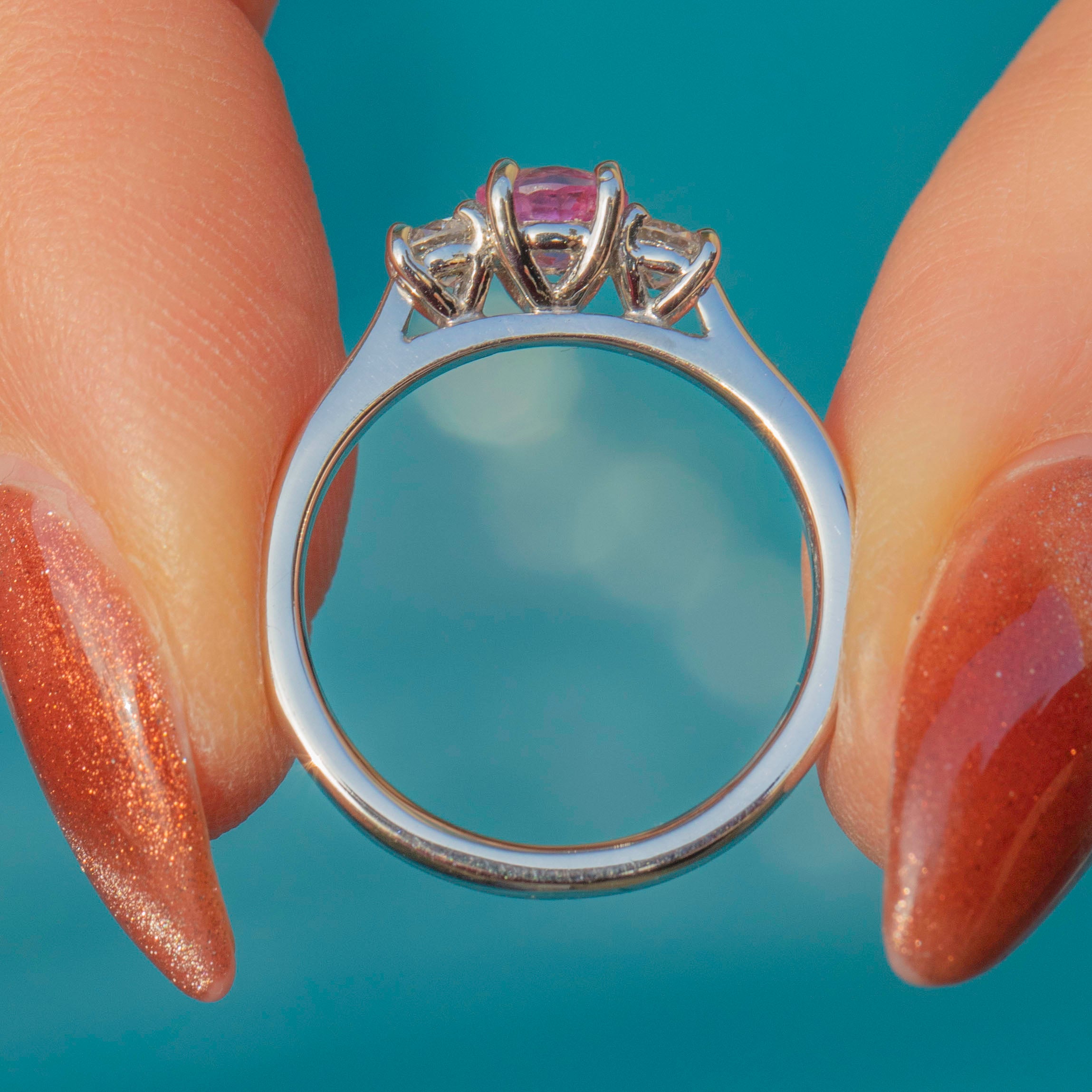 Platinum Pink Sapphire Diamond Trilogy Ring