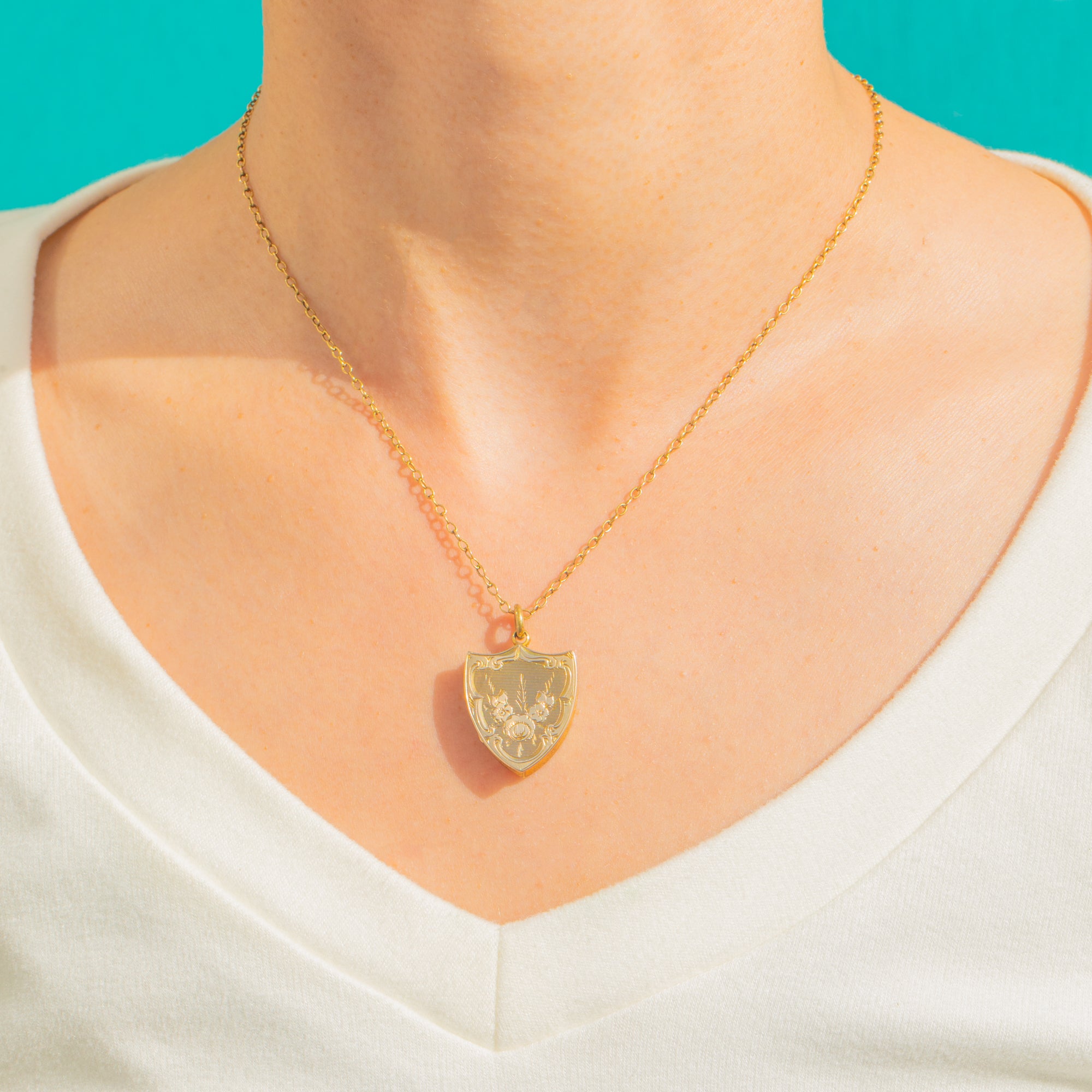 Hübsliches graviertes Medaillon aus 9ct Gold in Schildform