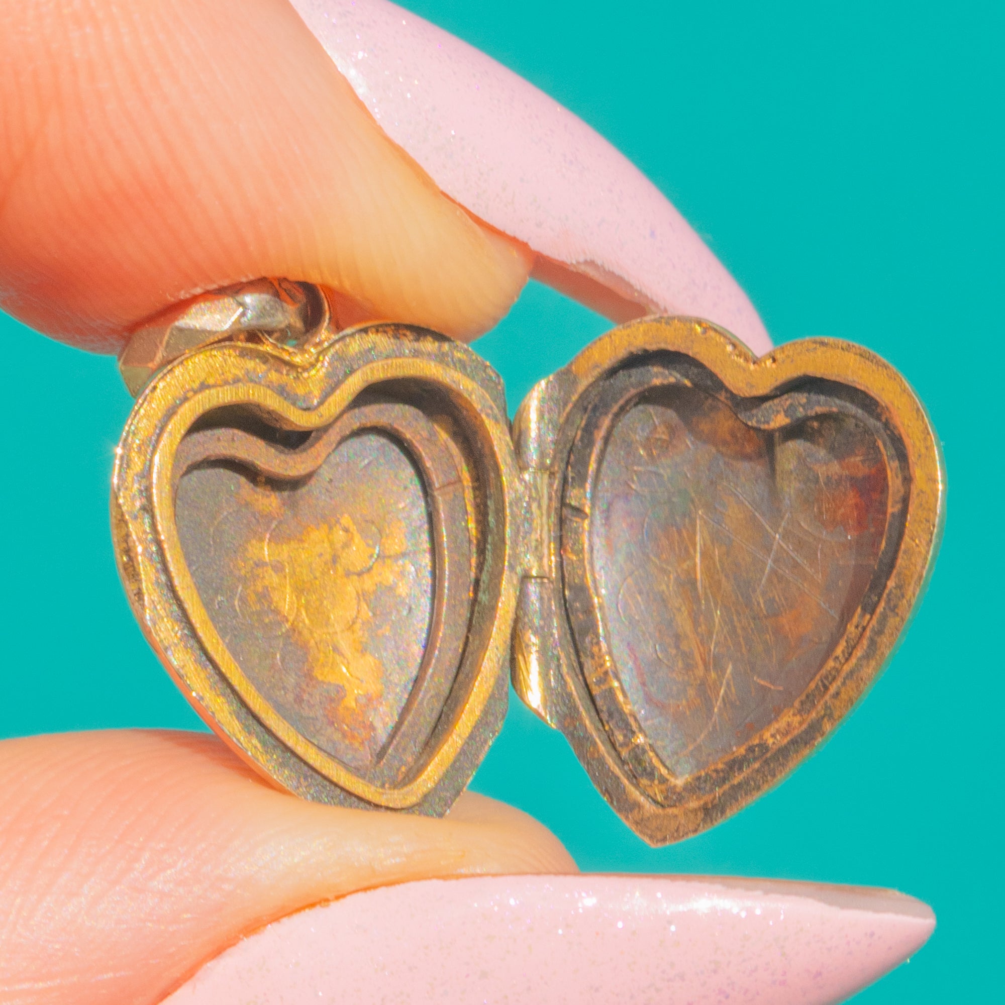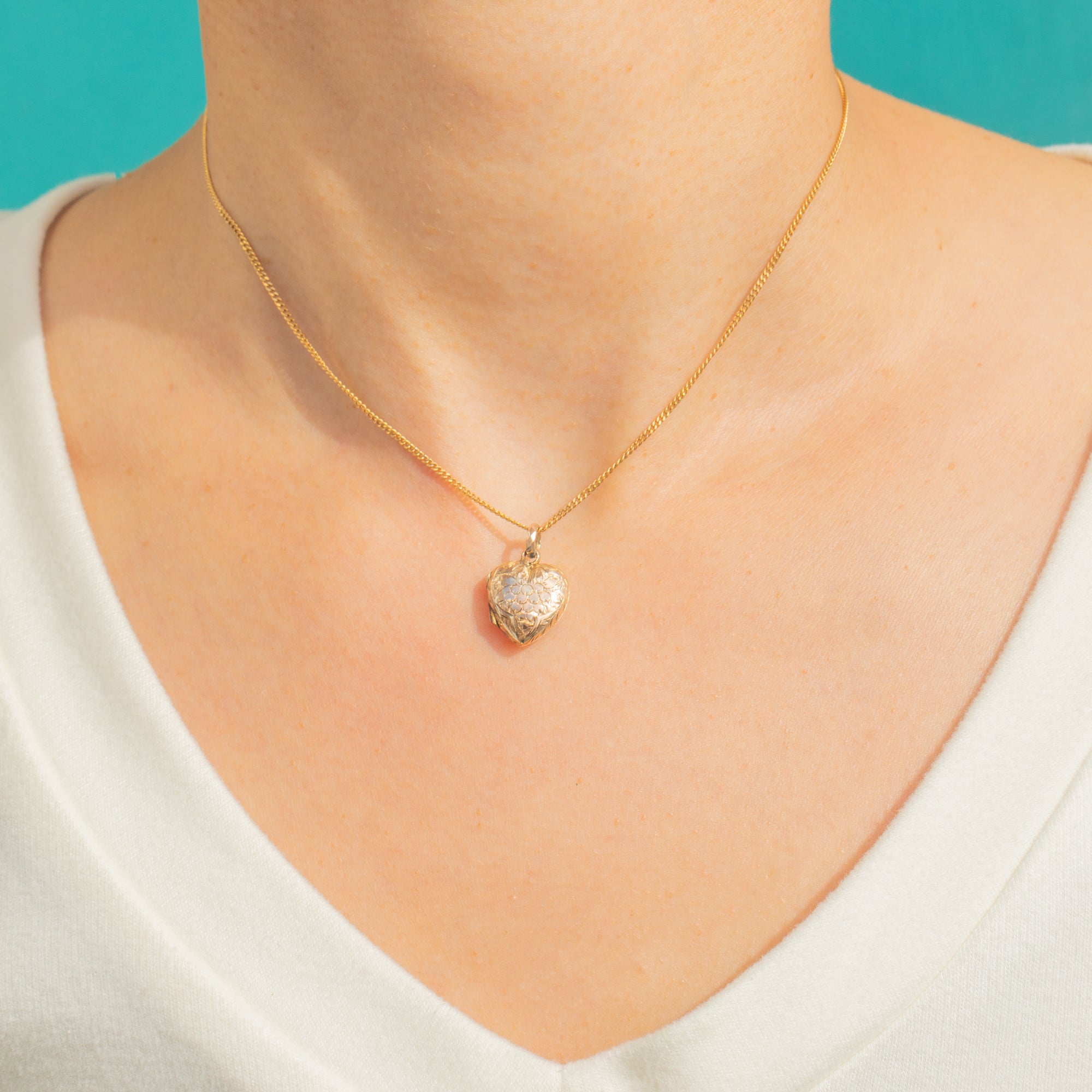 Öffnen Sie das Medaillon, um zwei Rahmen für wertvolle Fotos oder Erinnerungsstücke zu entdecken. Vorder- und Rückseite prüfen als 9ct Gold; der sanfte, antike Schimmer macht es mühelos, das Stück einzeln oder in Kombination mit Ihren Lieblingsketten zu tragen.