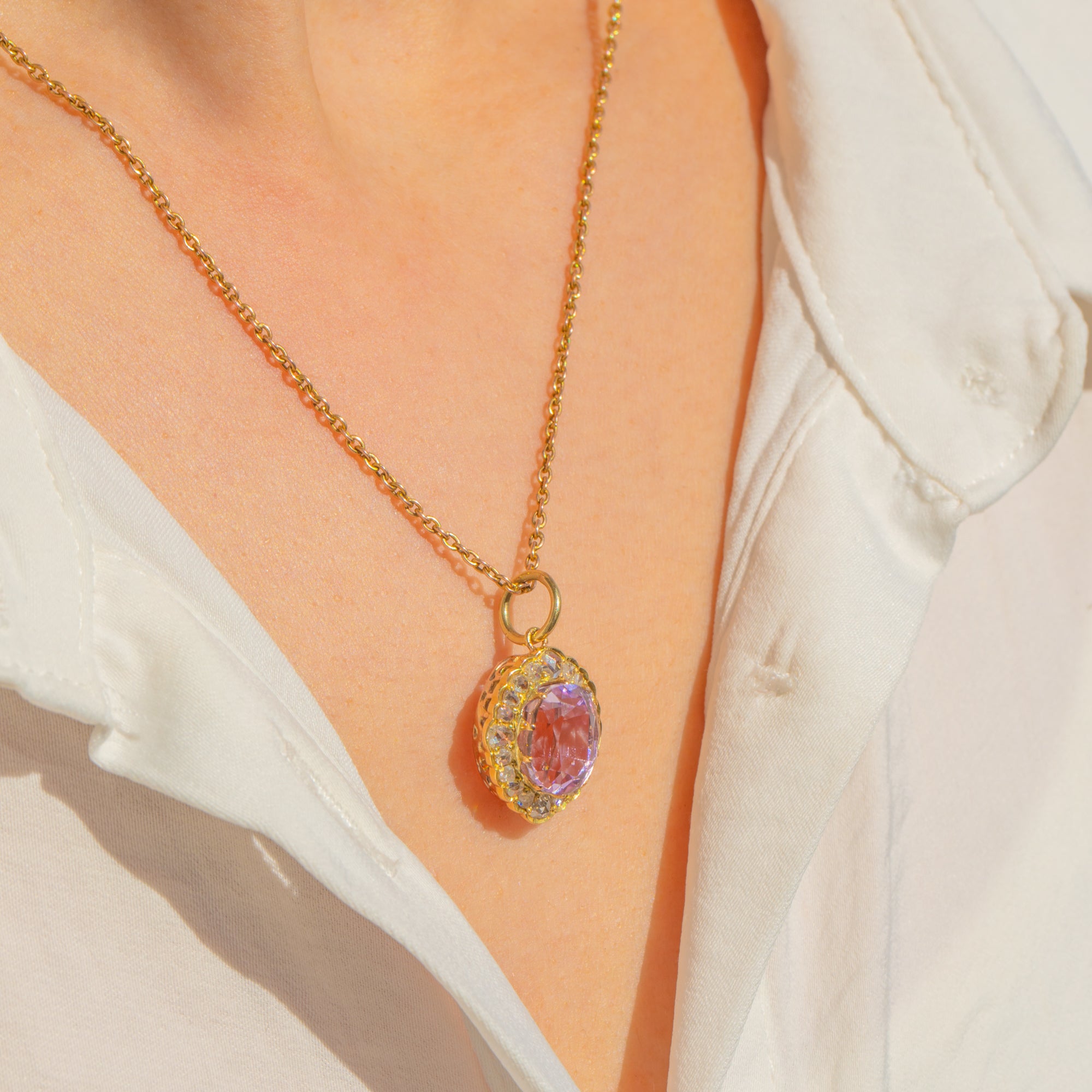 Entdeckt im Jahr 1902 und benannt nach Tiffany & Co.s berühmtem Gemmologen George Frederick Kunz, machen Kunzits ruhiger Farbton und außergewöhnliche Klarheit ihn zu einer exquisiten Wahl für einen wertvollen antiken Anhänger – glamourös, feminin und zeitlos.