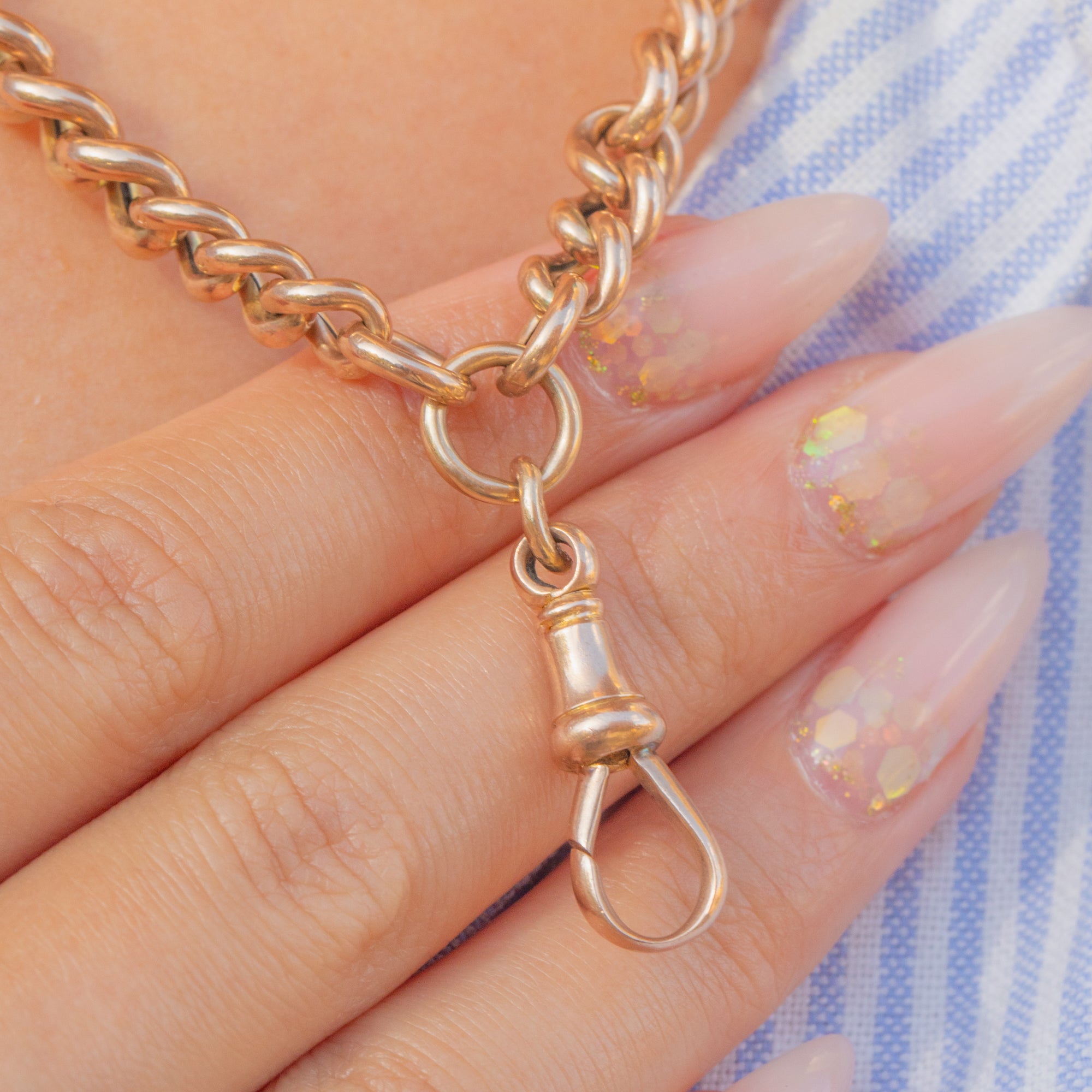 Glowing with the warm hue of 9ct Gold and stamped to each link, its impressive 27.1g weight gives a luxurious drape and satisfying presence. A timeless Victorian silhouette that seamlessly bridges function and finesse, perfect worn solo or layered.
