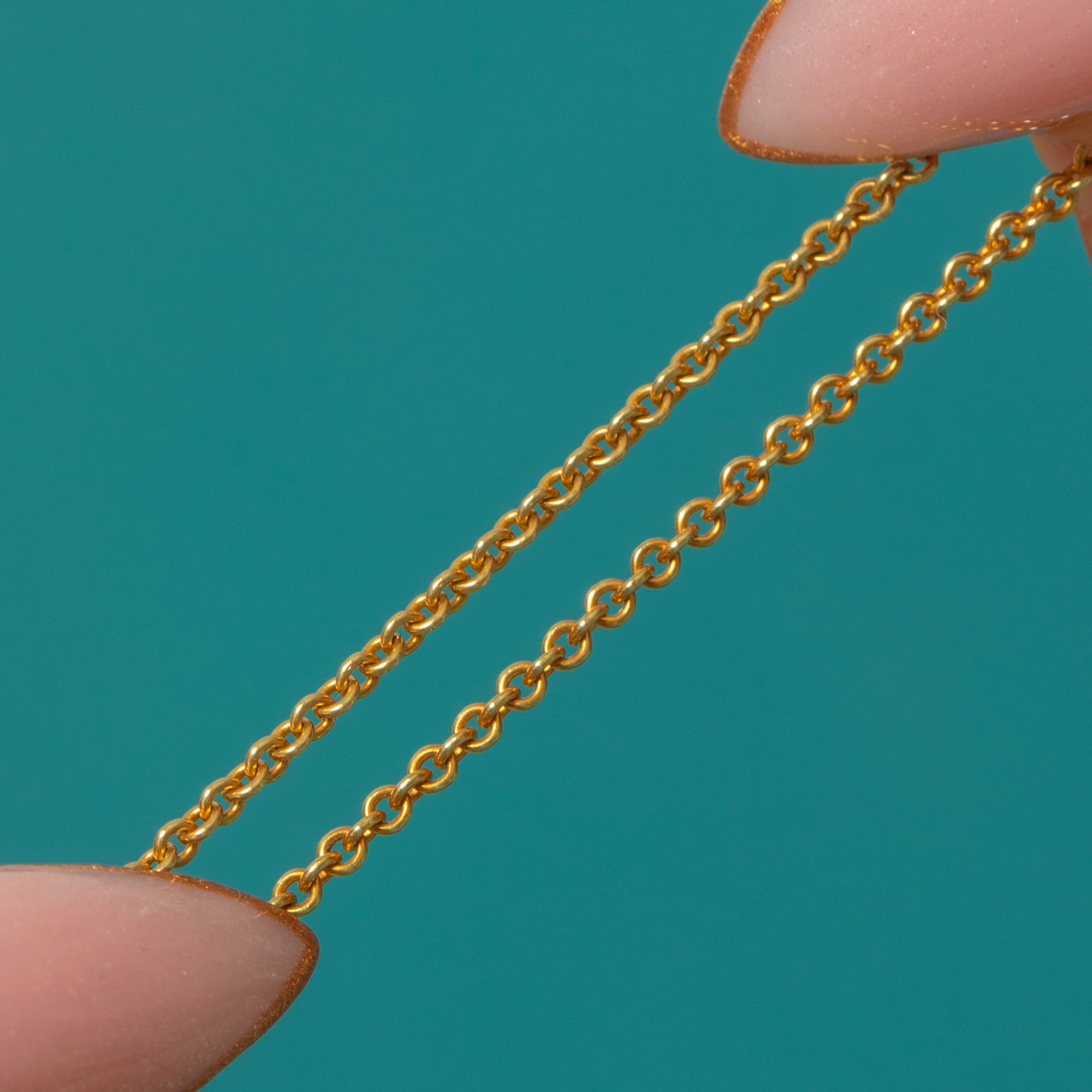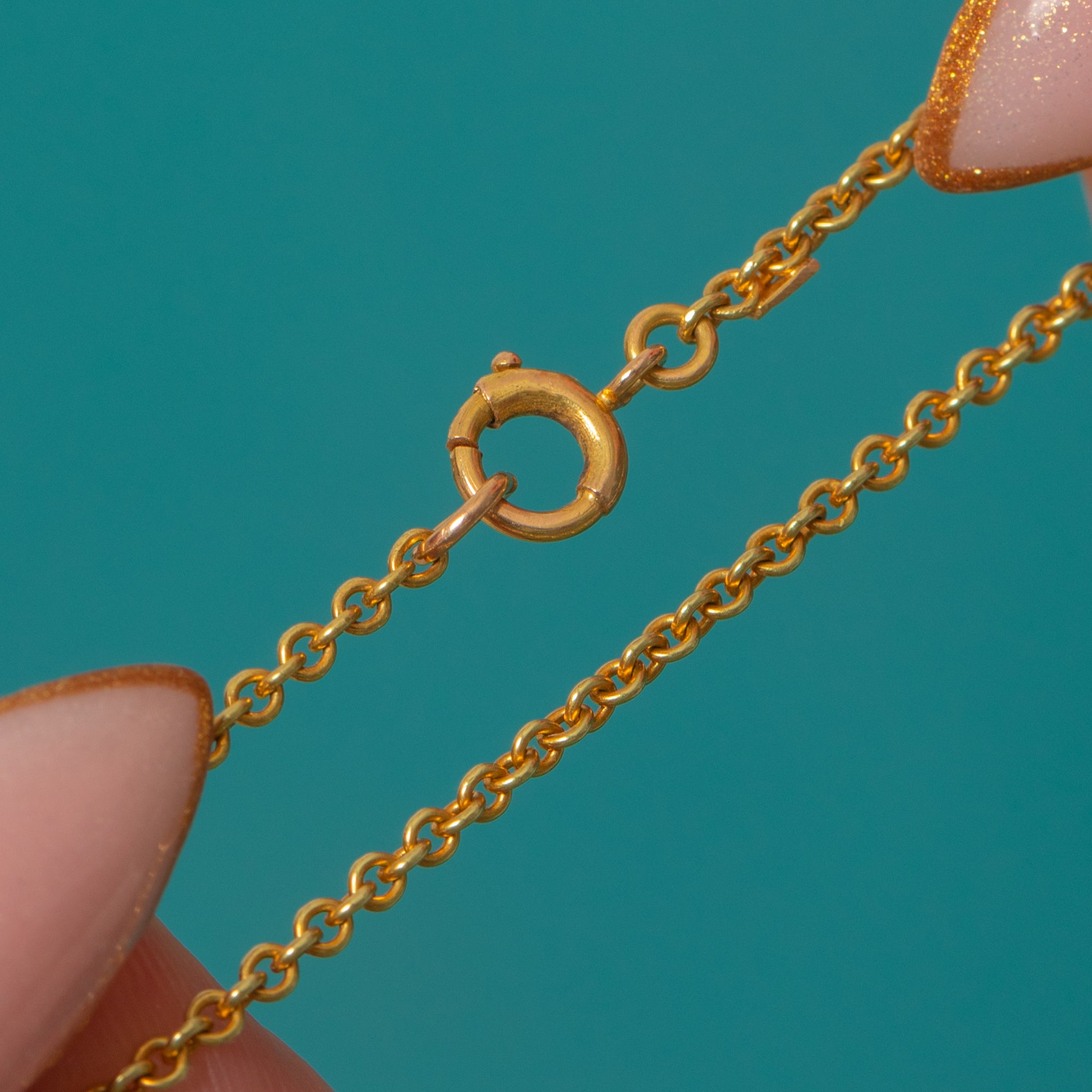 This rare Victorian 15ct Gold pendant chain is a dream find for antique jewellery lovers, complete with its original and highly collectable “15CT” tag near the clasp. At 28" long, it’s the perfect length for pendants, lockets or charms, and also looks beautiful worn alone or layered with other favourites.