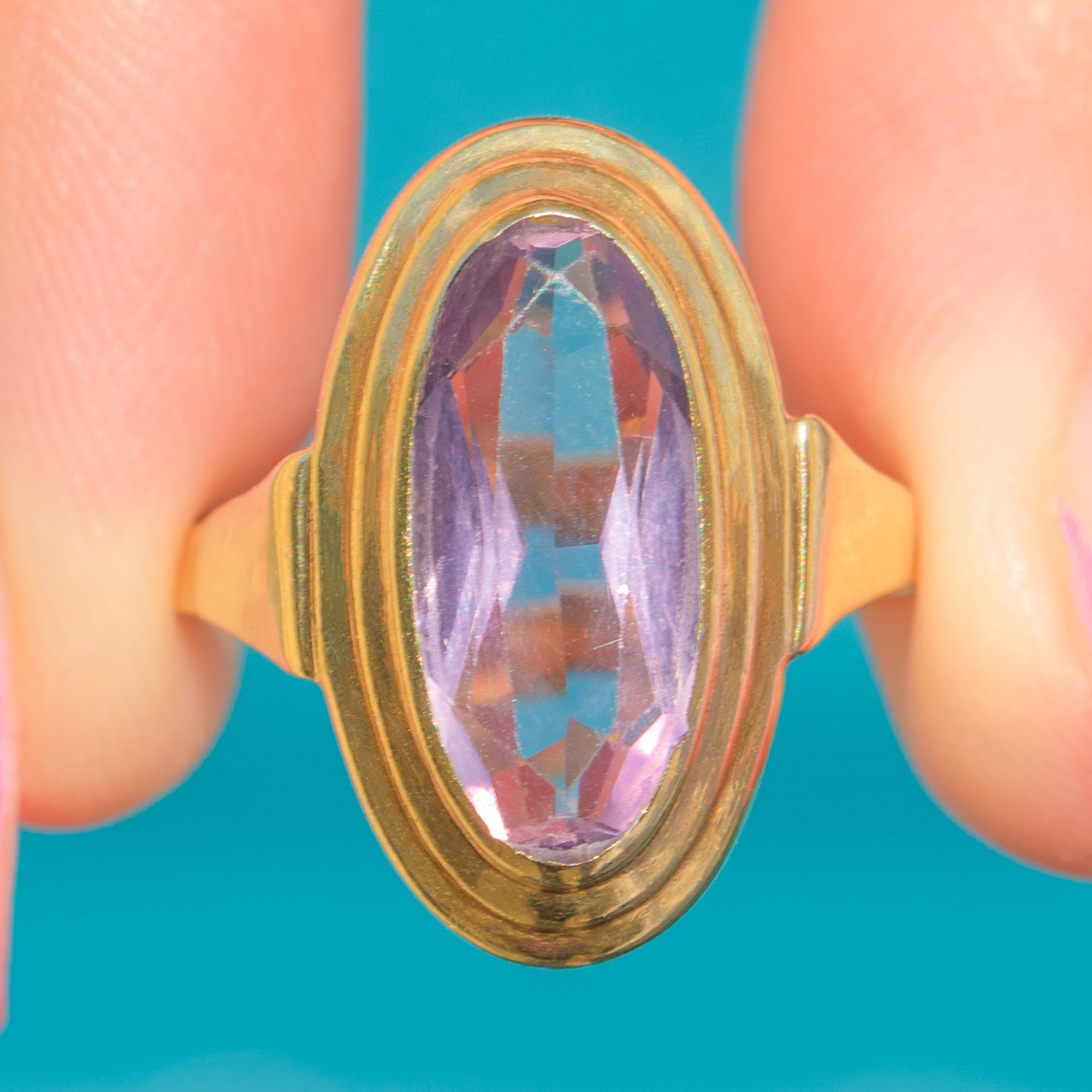 Inject some vintage glamour into your wardrobe with this Rose-De-France Amethyst Gold oval dress ring! The exuberant 1.60ct Rose-De-France Amethyst boasts the most beautiful lilac hue, with its subtle facets providing a true mystical edge.