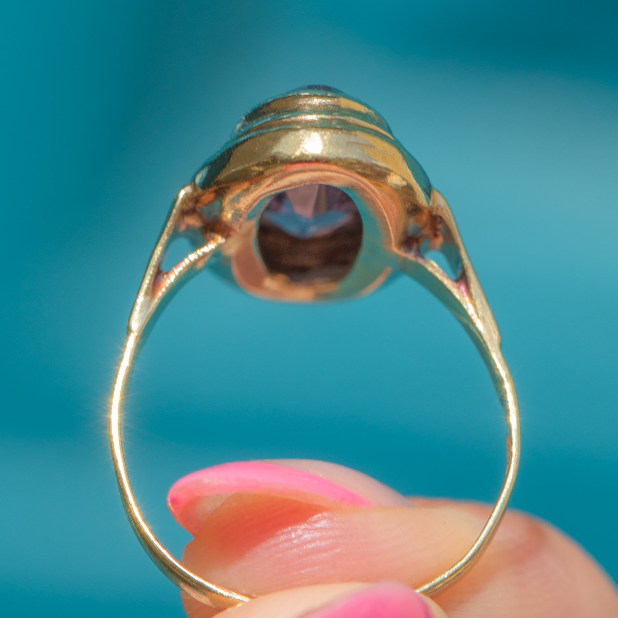 Her Amethyst is hugged tightly by a chunky bezel, sitting upon a smooth and buttery 9ct Gold band. It is safe to say that this vintage Amethyst ring is a real delight!