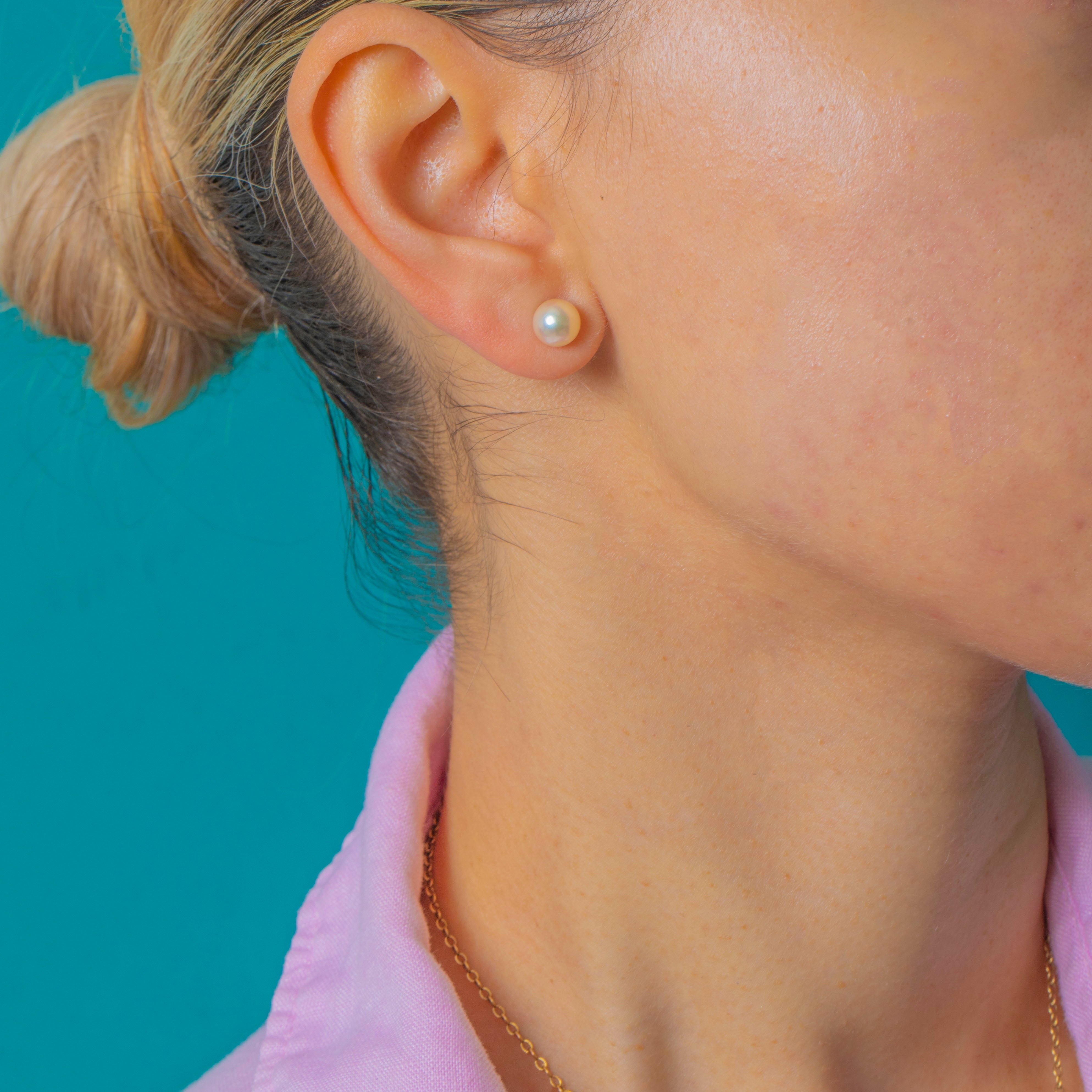 Diese exquisiten Cartier-Ohrringe aus der Mitte des 20. Jahrhunderts sind ein zeitloses Paar klassischer Akoya-Perlenstecker, gefertigt aus luxuriösem 18 Karat Gelbgold. Die Perlen zeigen den charakteristischen sanften Glanz und die feine Schicht, für die hochwertige japanische Akoya-Perlen berühmt sind, und verleihen dem Ohr eine elegante, dezente Ausstrahlung.