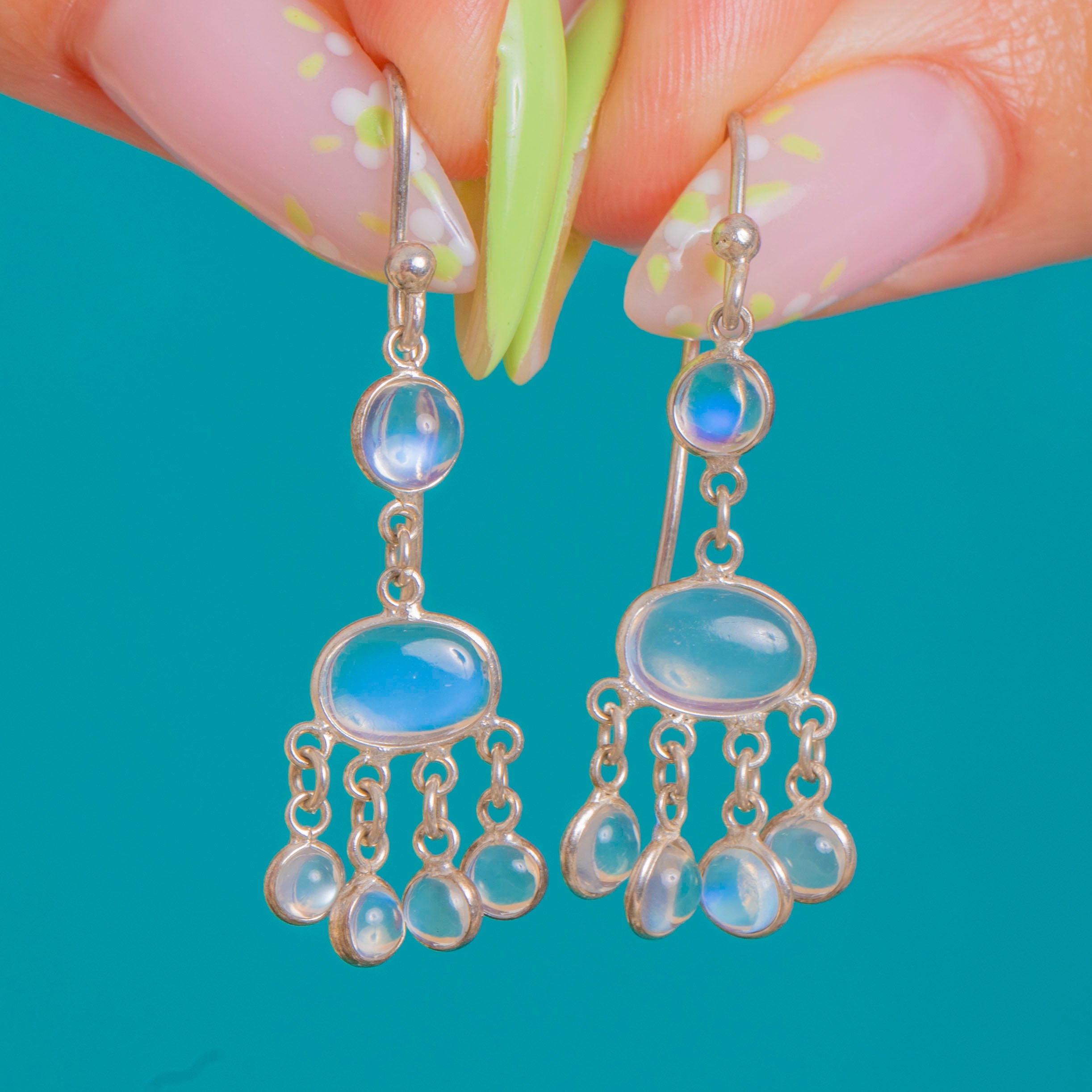 Silberne Mondstein-Chandelier-Ohrringe