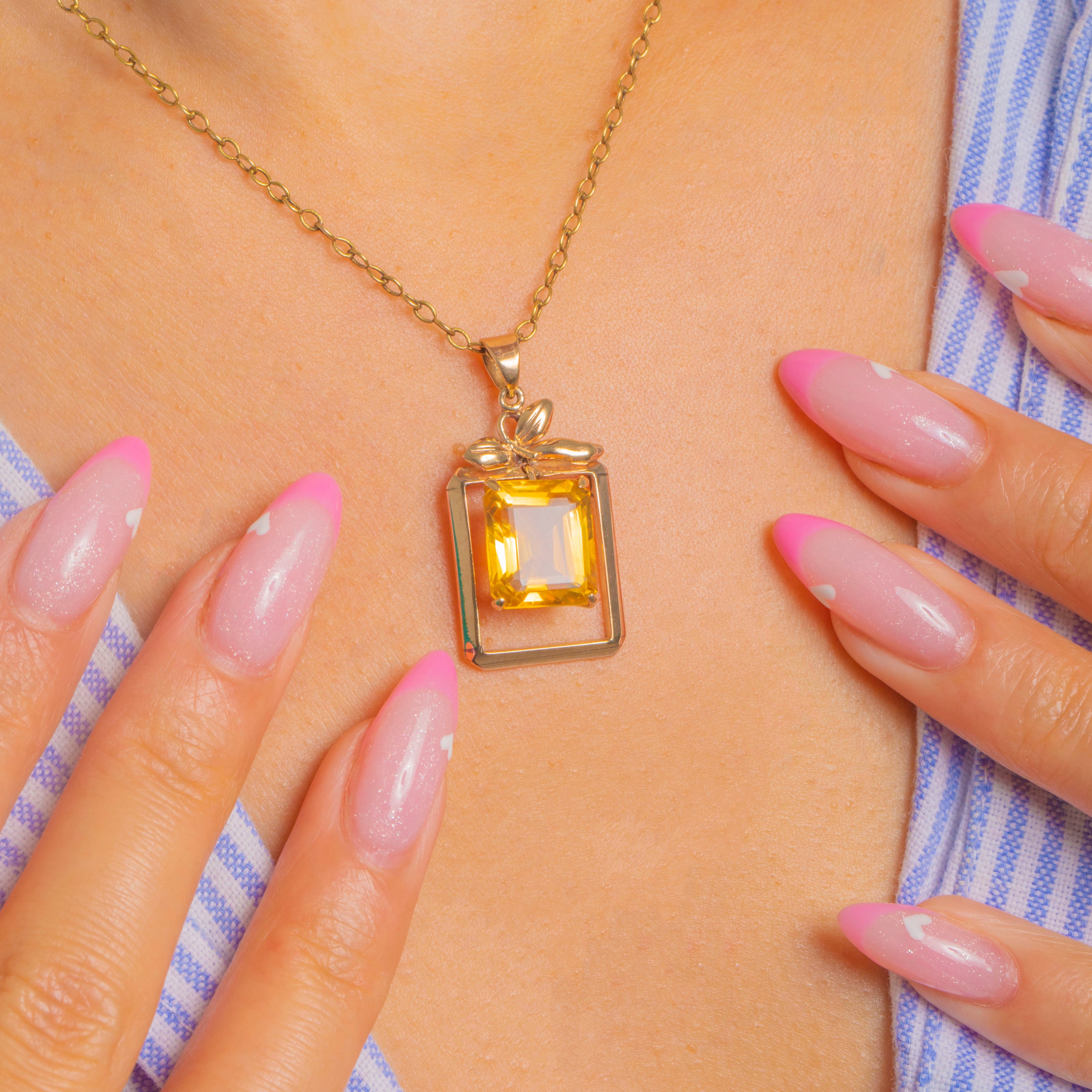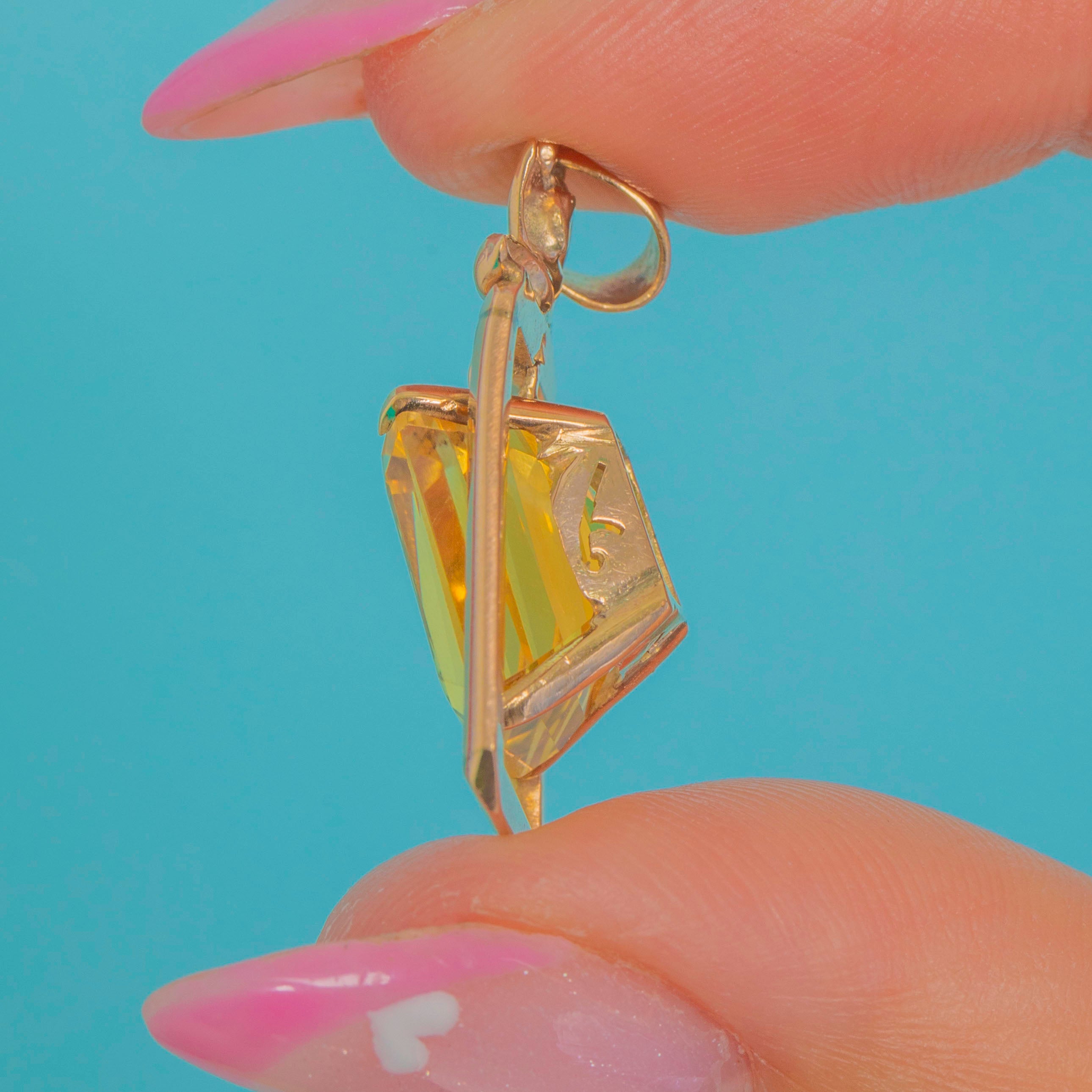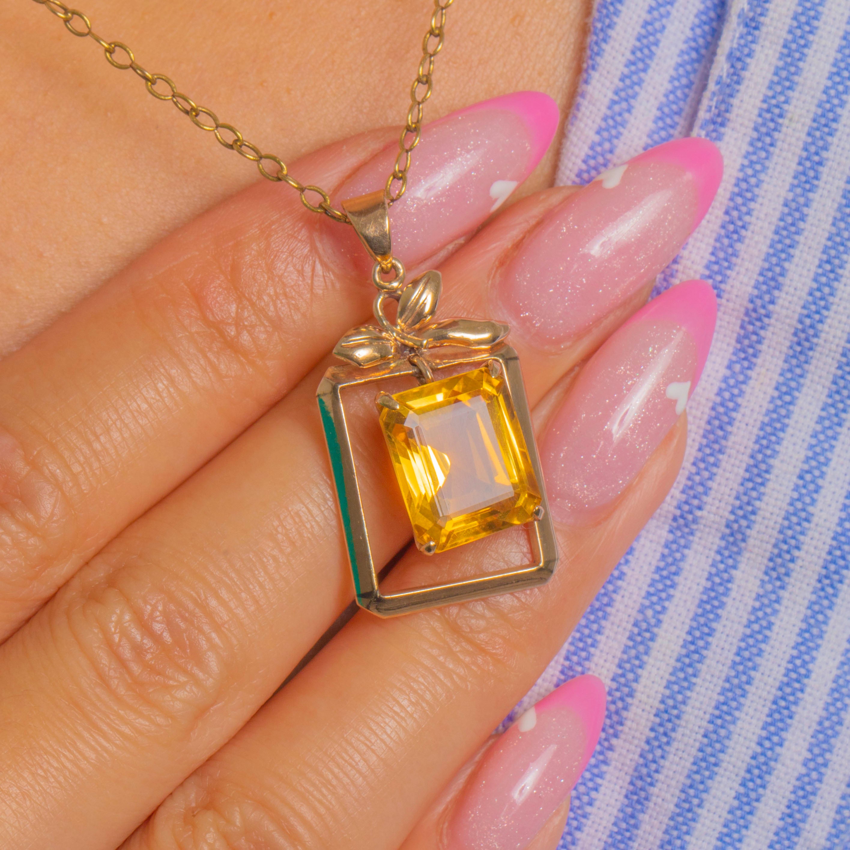 Sleek Mid-Century Vintage 14 Carat Citrine Pendant