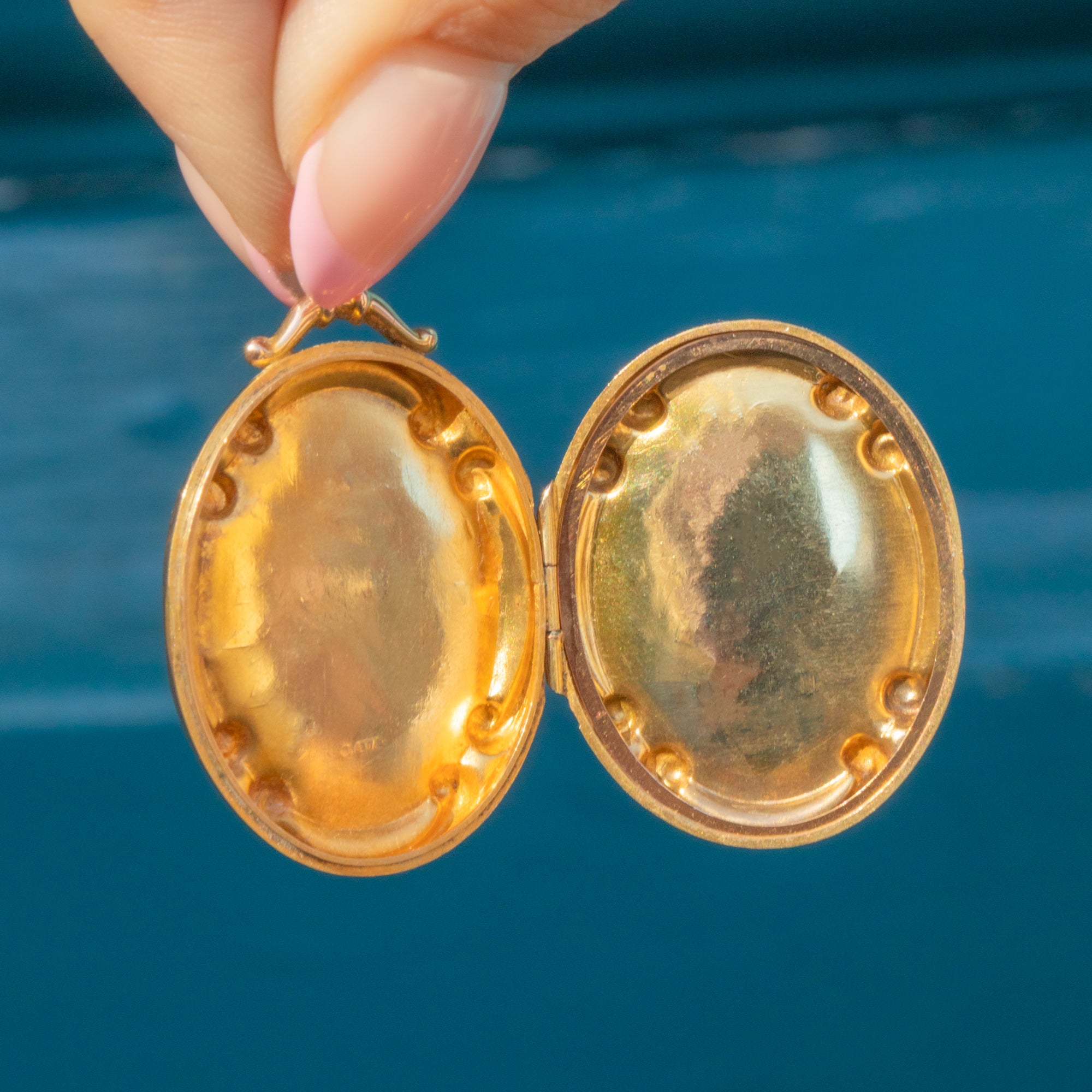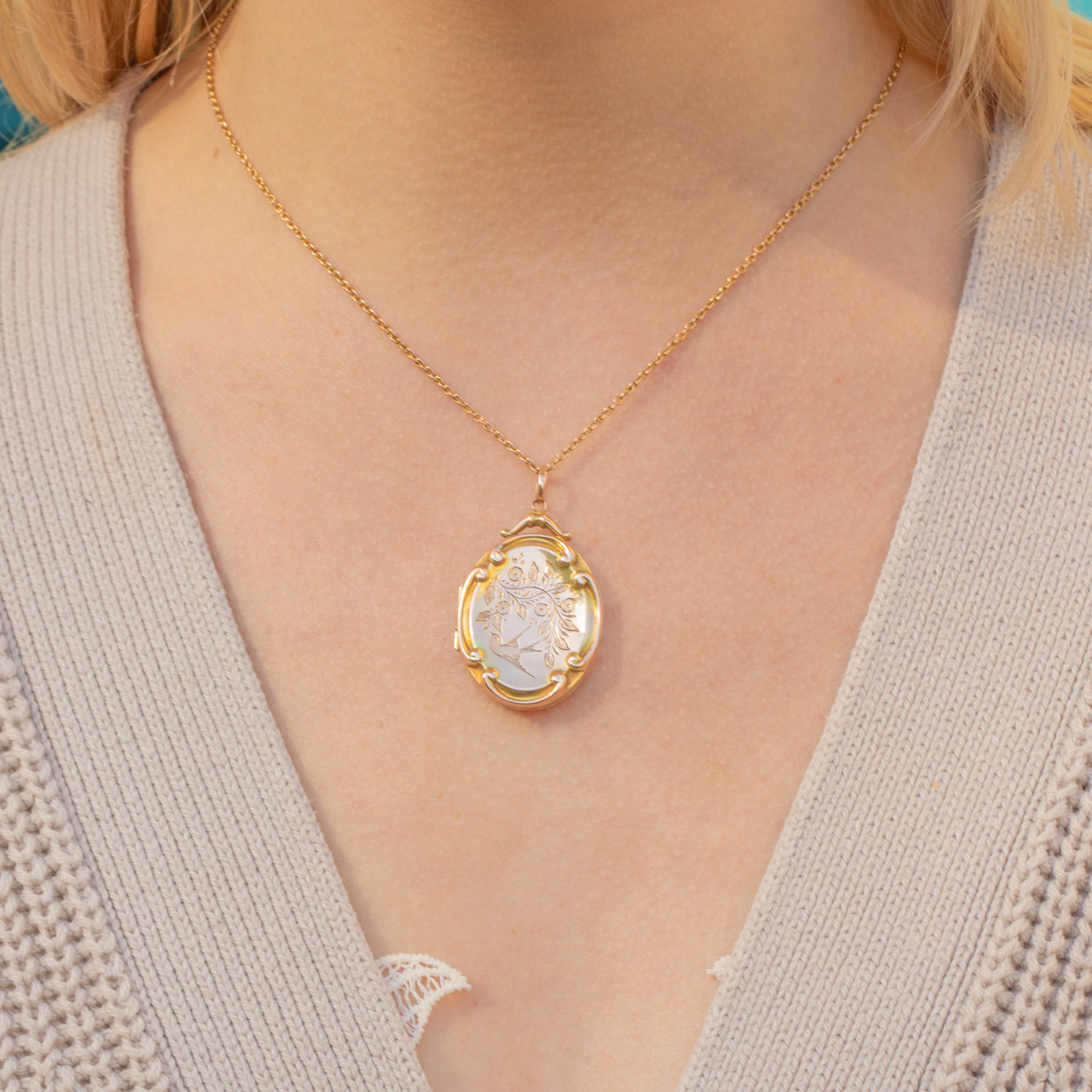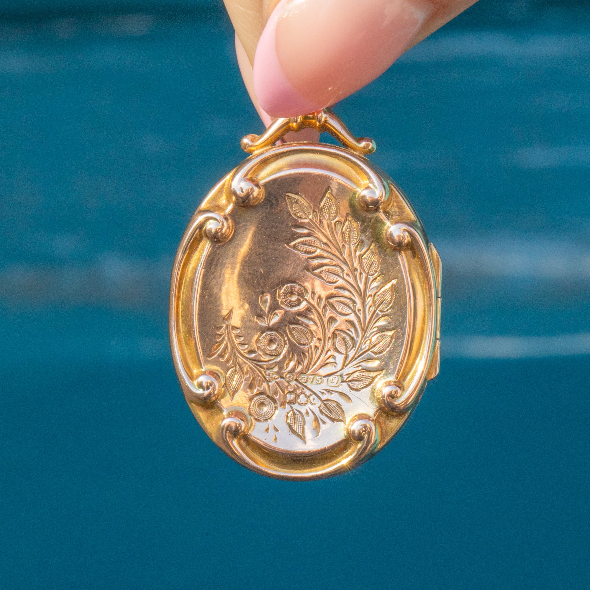 This solid 9ct Gold engraved swallow oval locket is gorgeous! Exquisitely engraved with delicate details on both sides, this decorative antique locket was made to be cherished for generations.