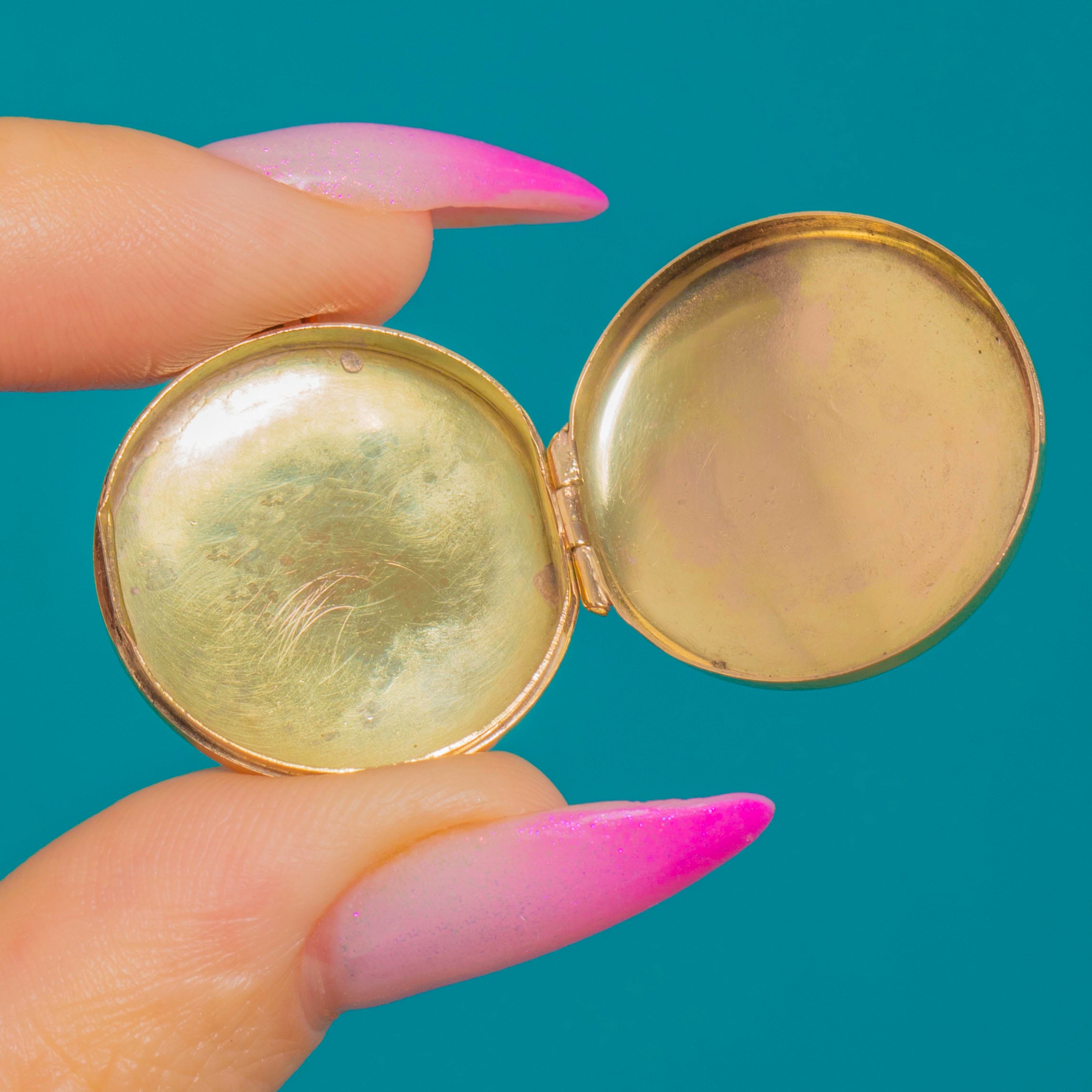 HERVORRAGEND: Leichte altersgemäße Gebrauchsspuren, mit klarer Gravur und strahlendem Glanz. Scharnier und Öse sind sicher, der Anhänger schließt präzise. Das Innere ist sauber; es sind keine Bilderrahmen oder Verglasungen vorhanden.