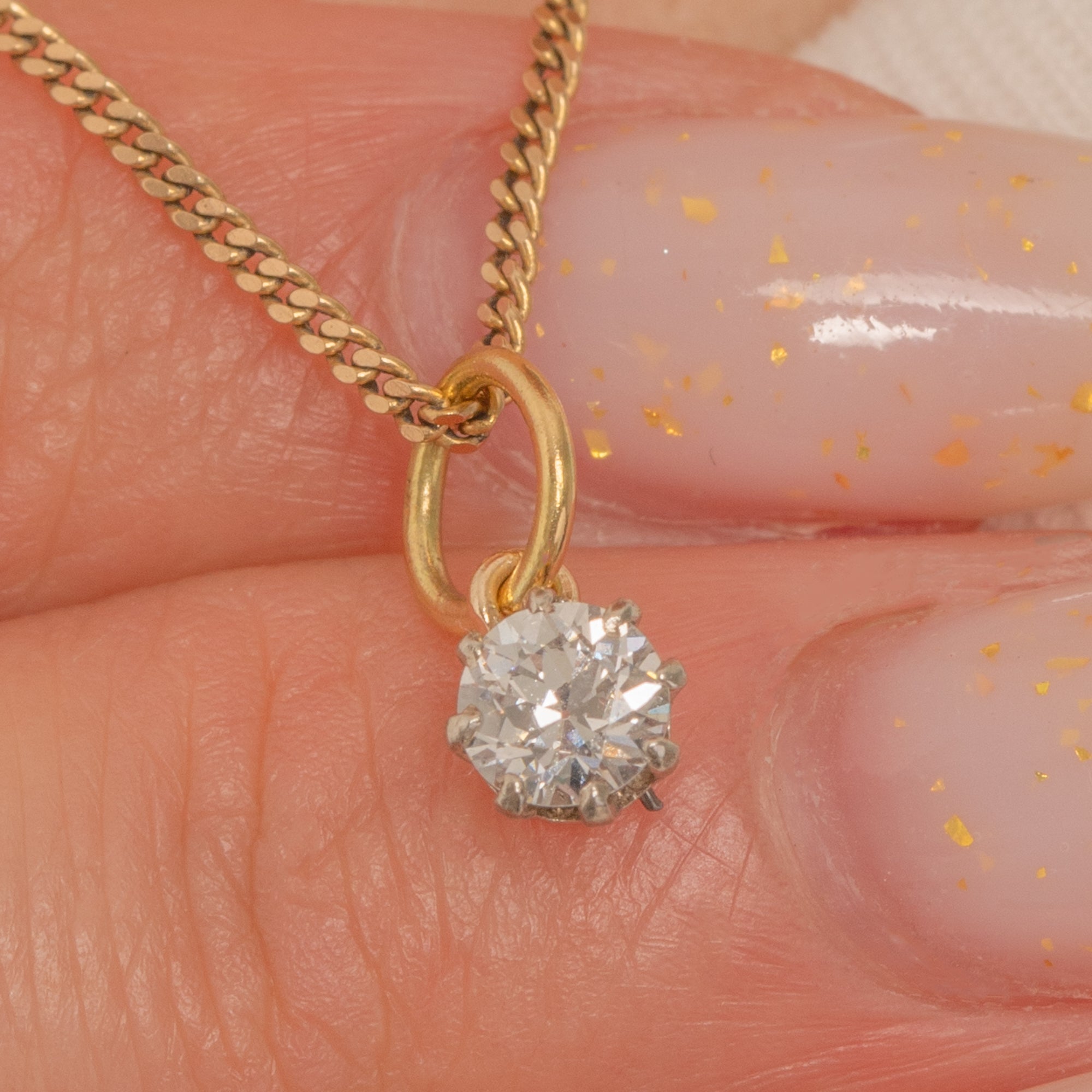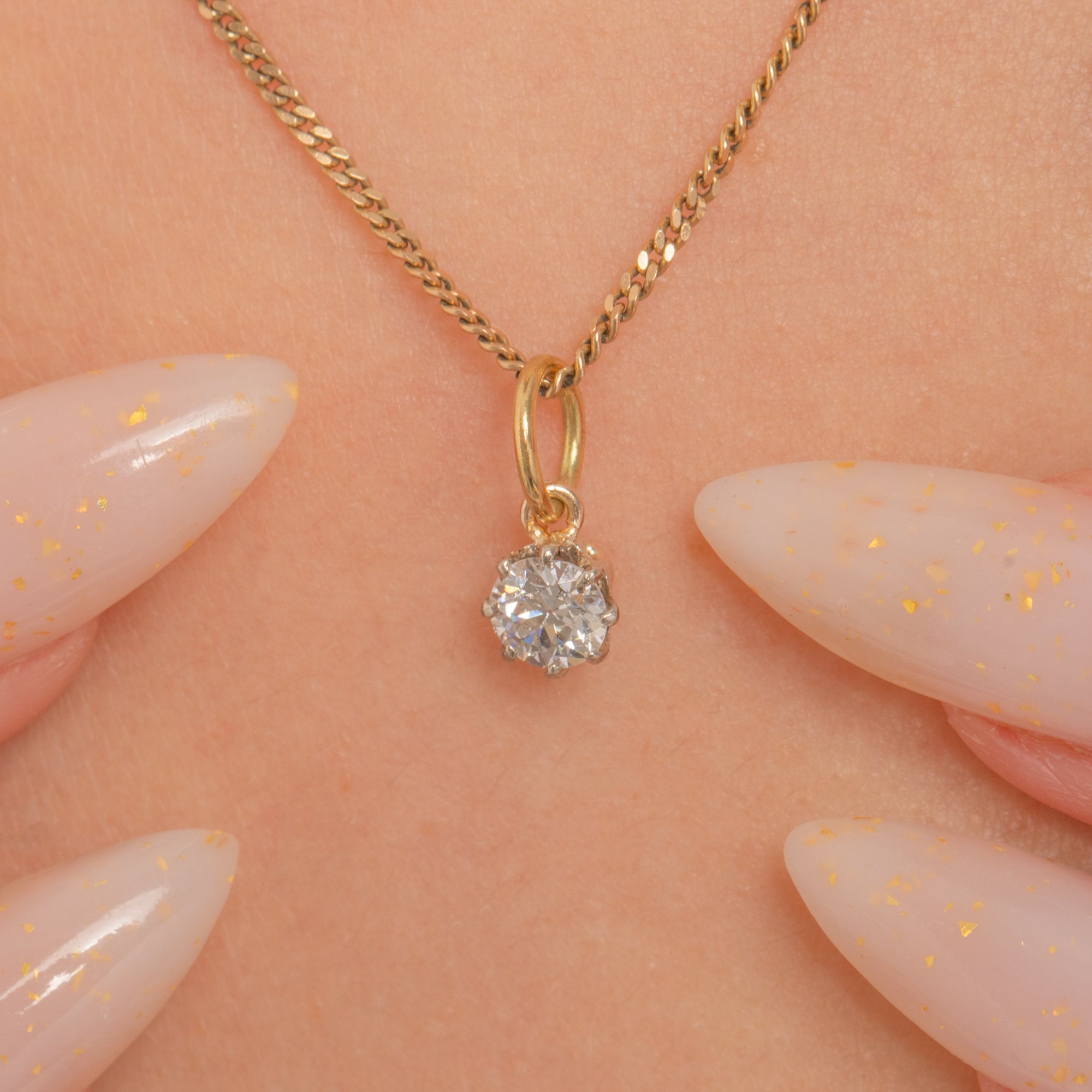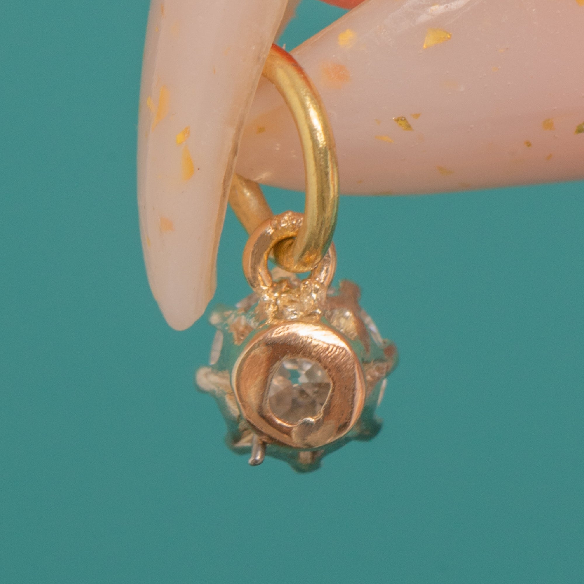 A whisper of Victorian elegance, this petite Rose-Cut Diamond solitaire glows in warm 15ct Gold and is neatly fitted with an 18ct Gold jump ring. The Diamond has that romantic, softly scintillating allure that Rose cuts are loved for, bringing a delicate sparkle to any look.