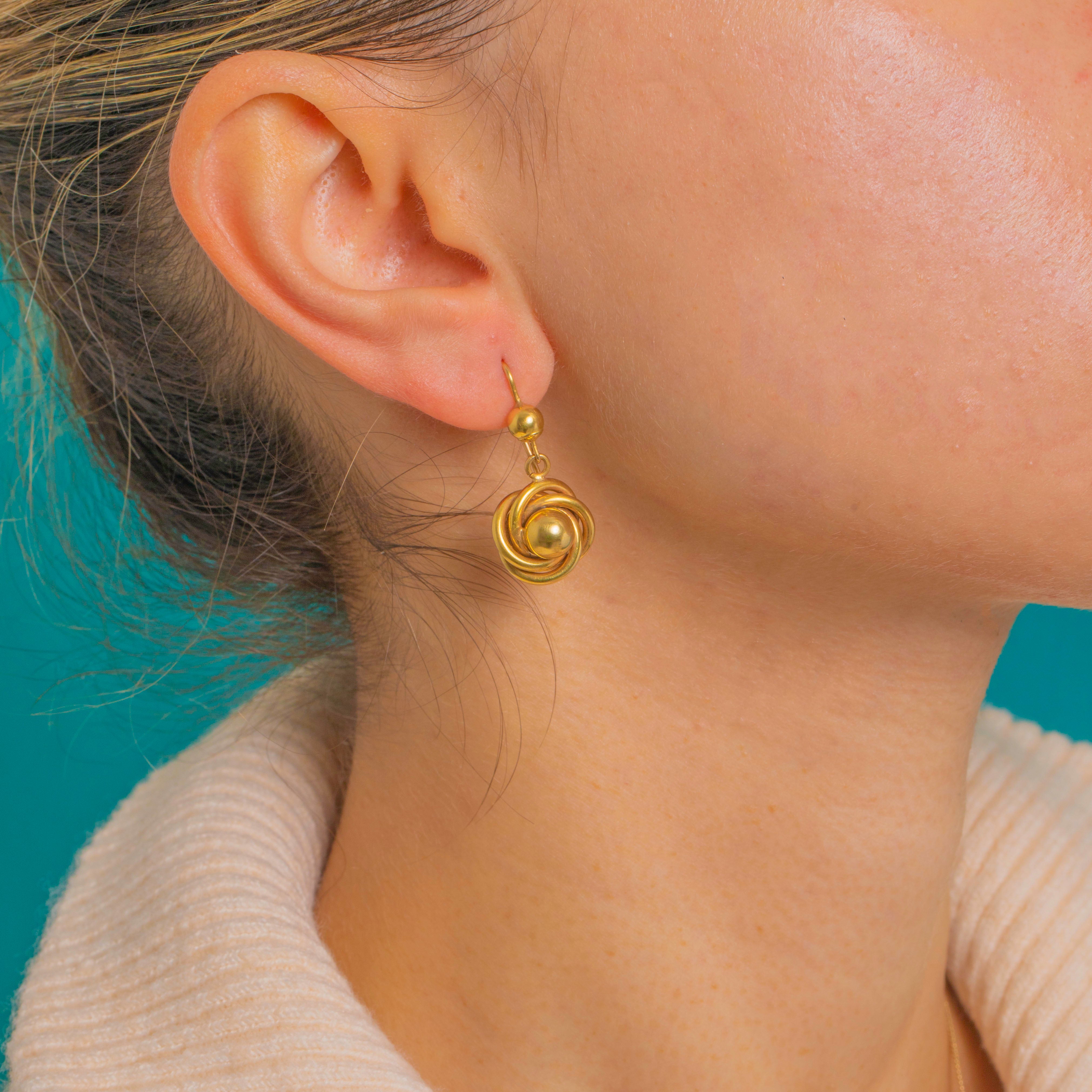 Victorian 15ct Gold Round Knot Earrings