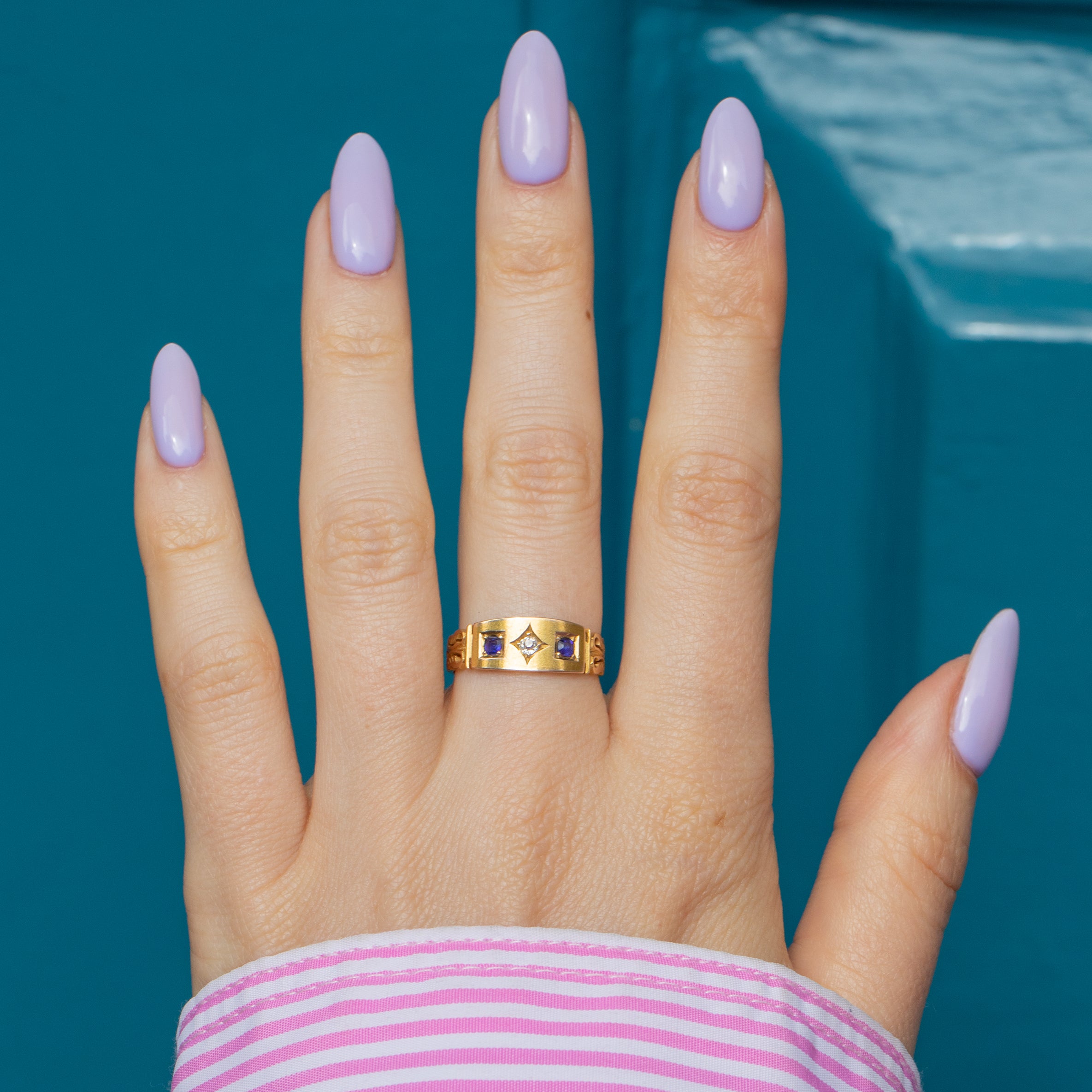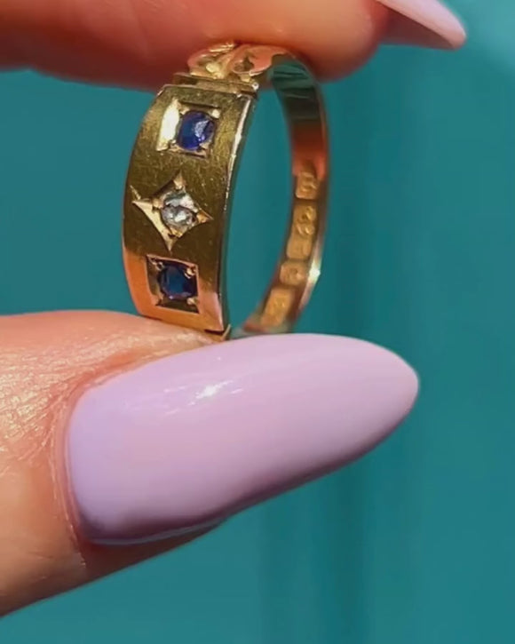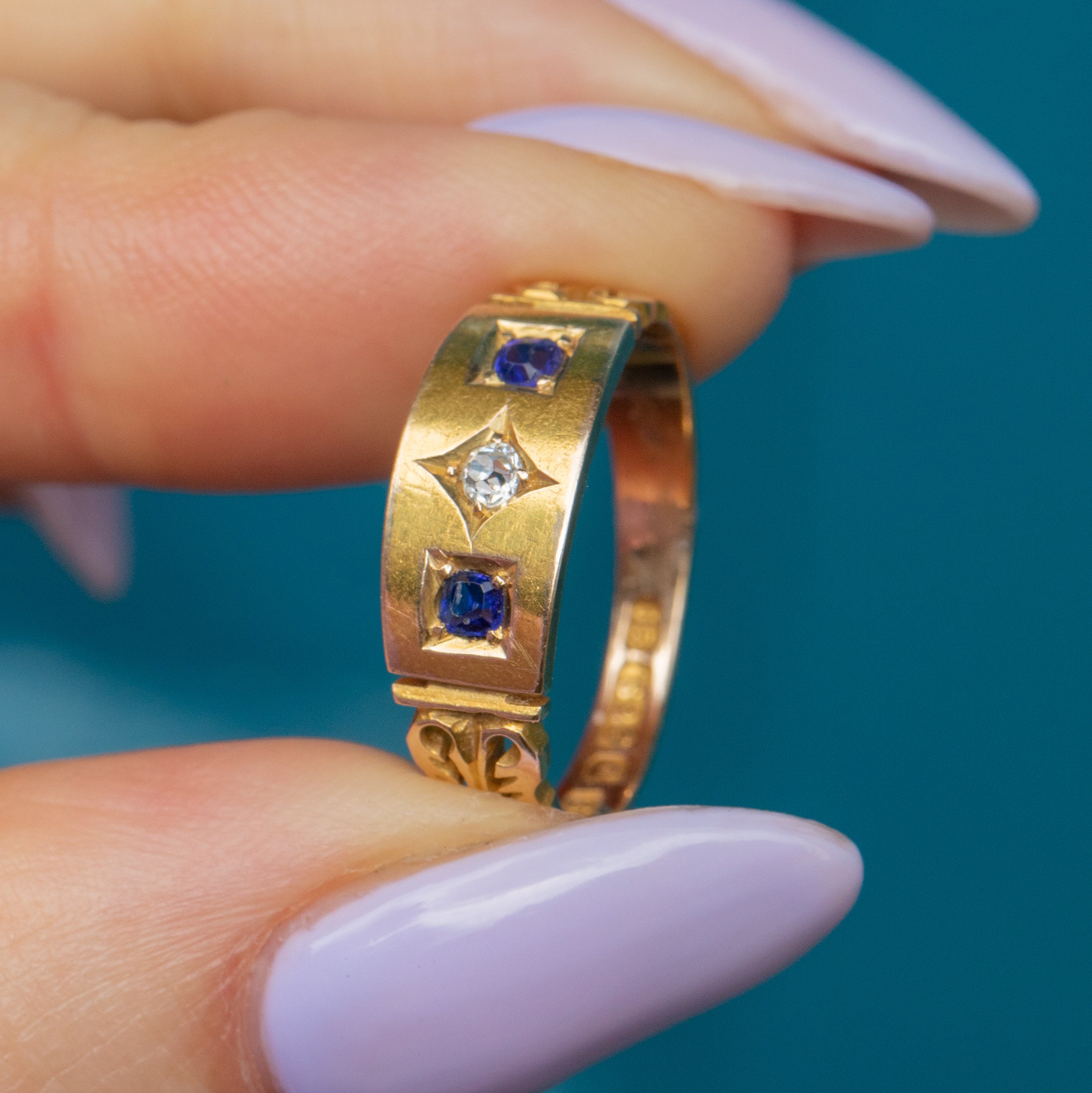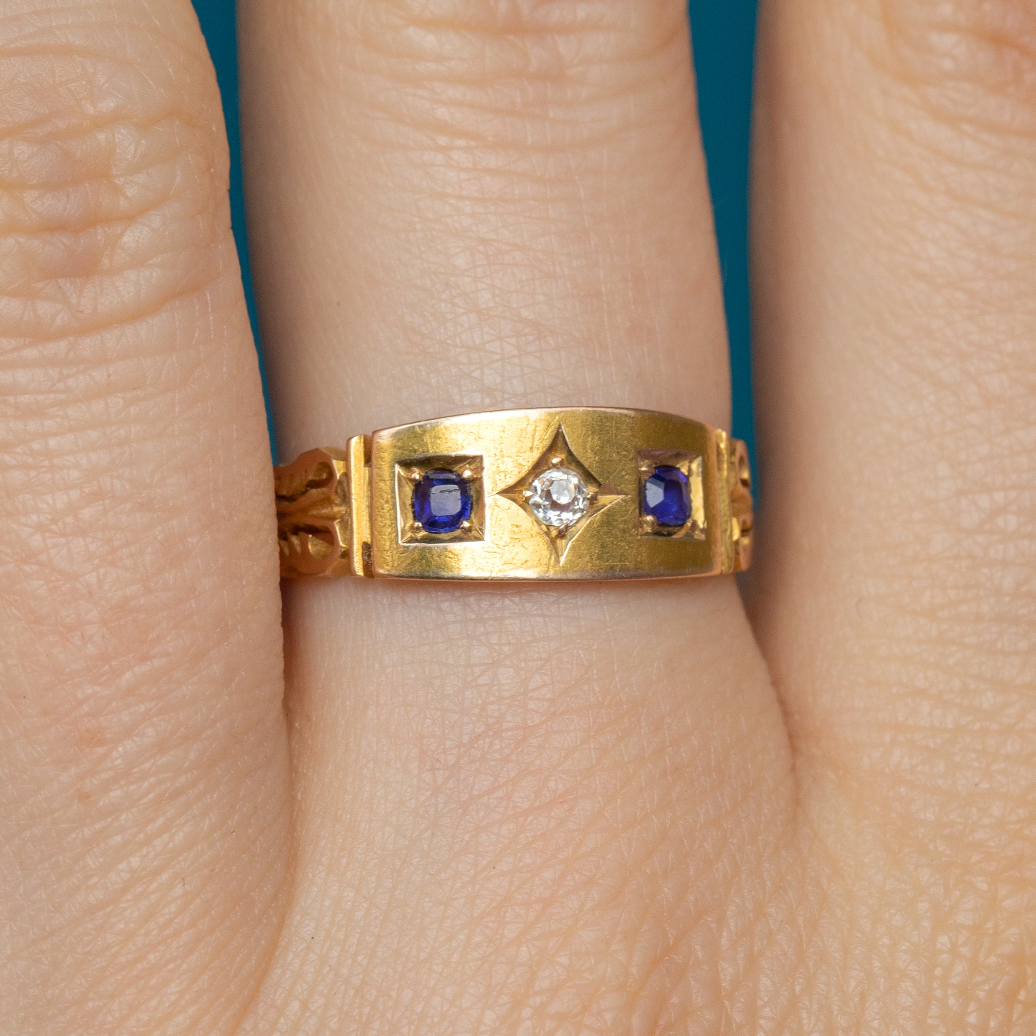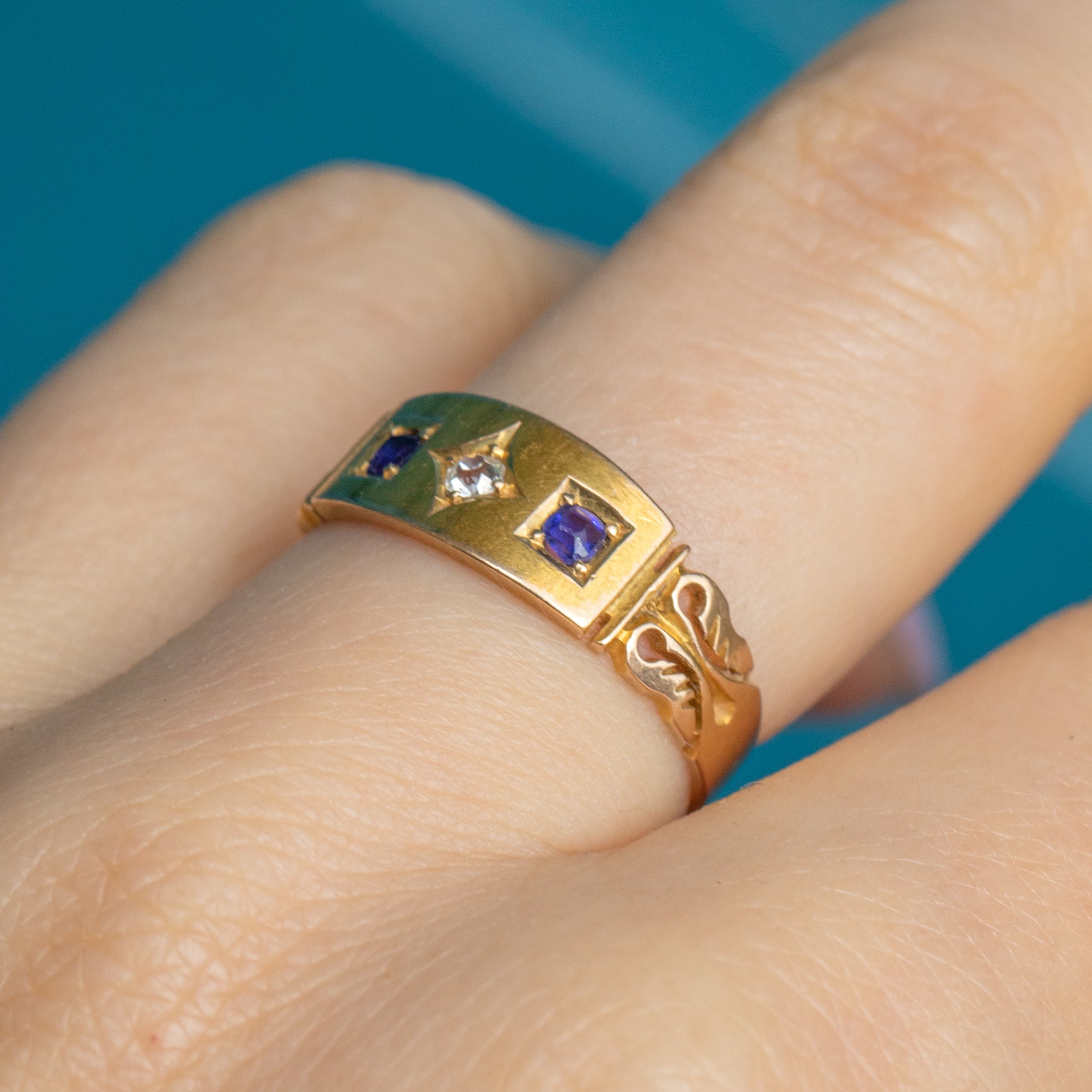 Victorian 15ct Gold Sapphire Diamond Gypsy Ring