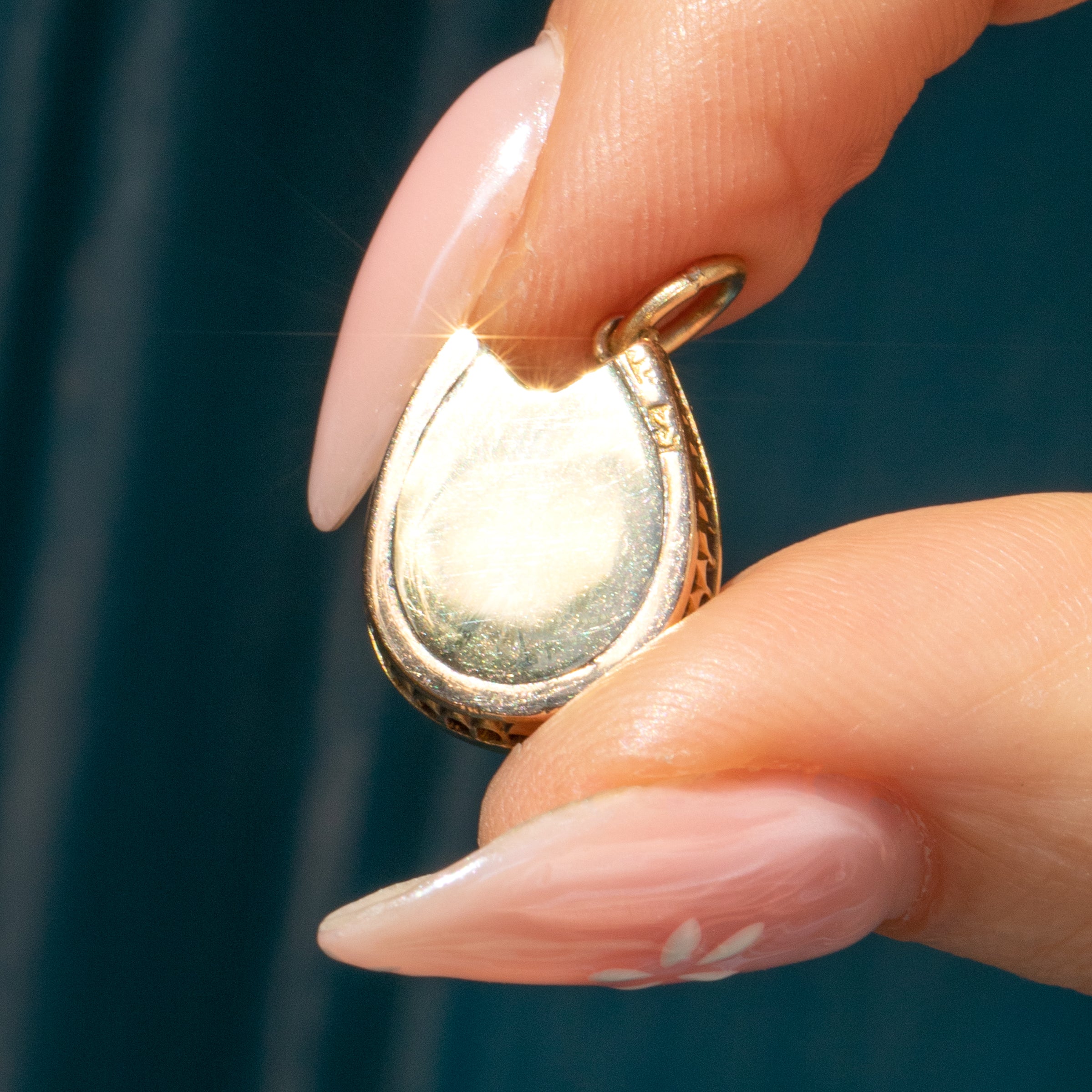 This Victorian 15ct Gold Turquoise Diamond horseshoe pendant is one of the prettiest lucky charms we have ever laid eyes on! Crafted from solid 15ct Gold, this antique pendant is home to sparkly rose-cut Diamonds, with a combined weight of 0.25ct, and four Robin's egg blue Turquoise cabochons.