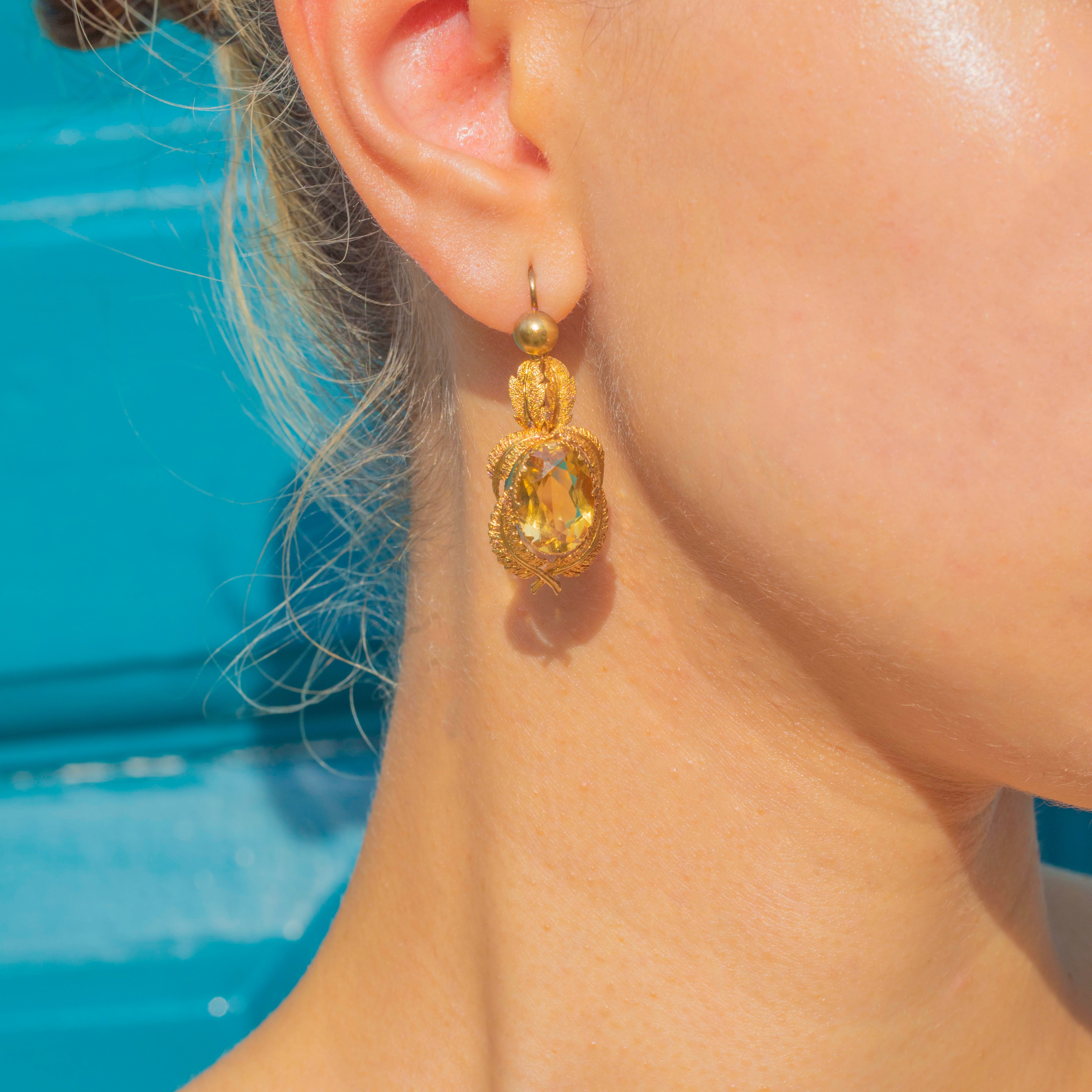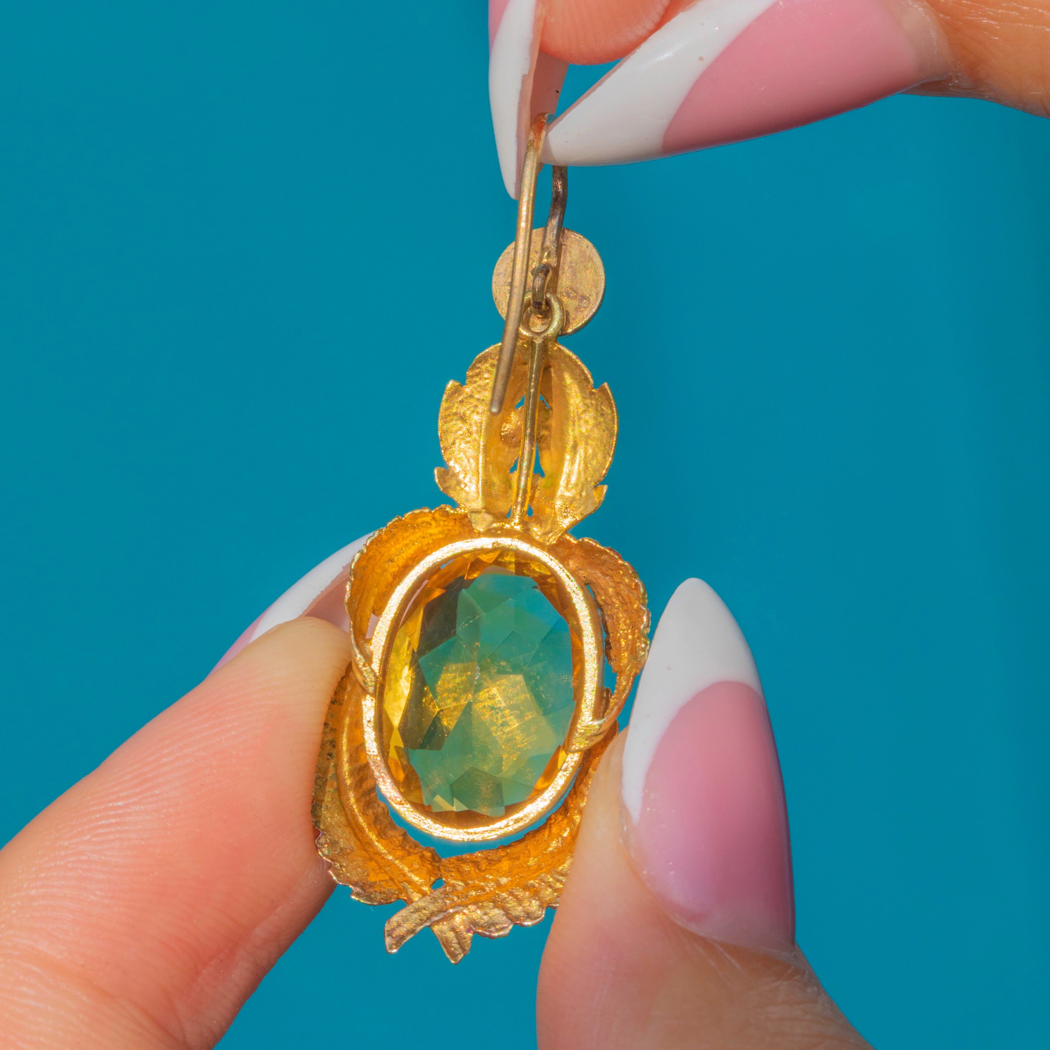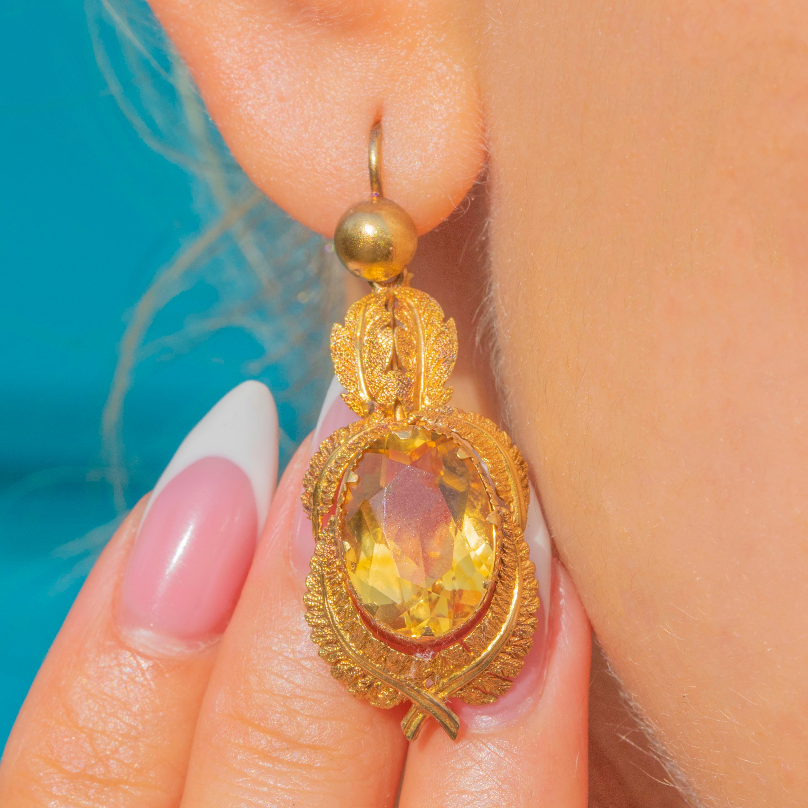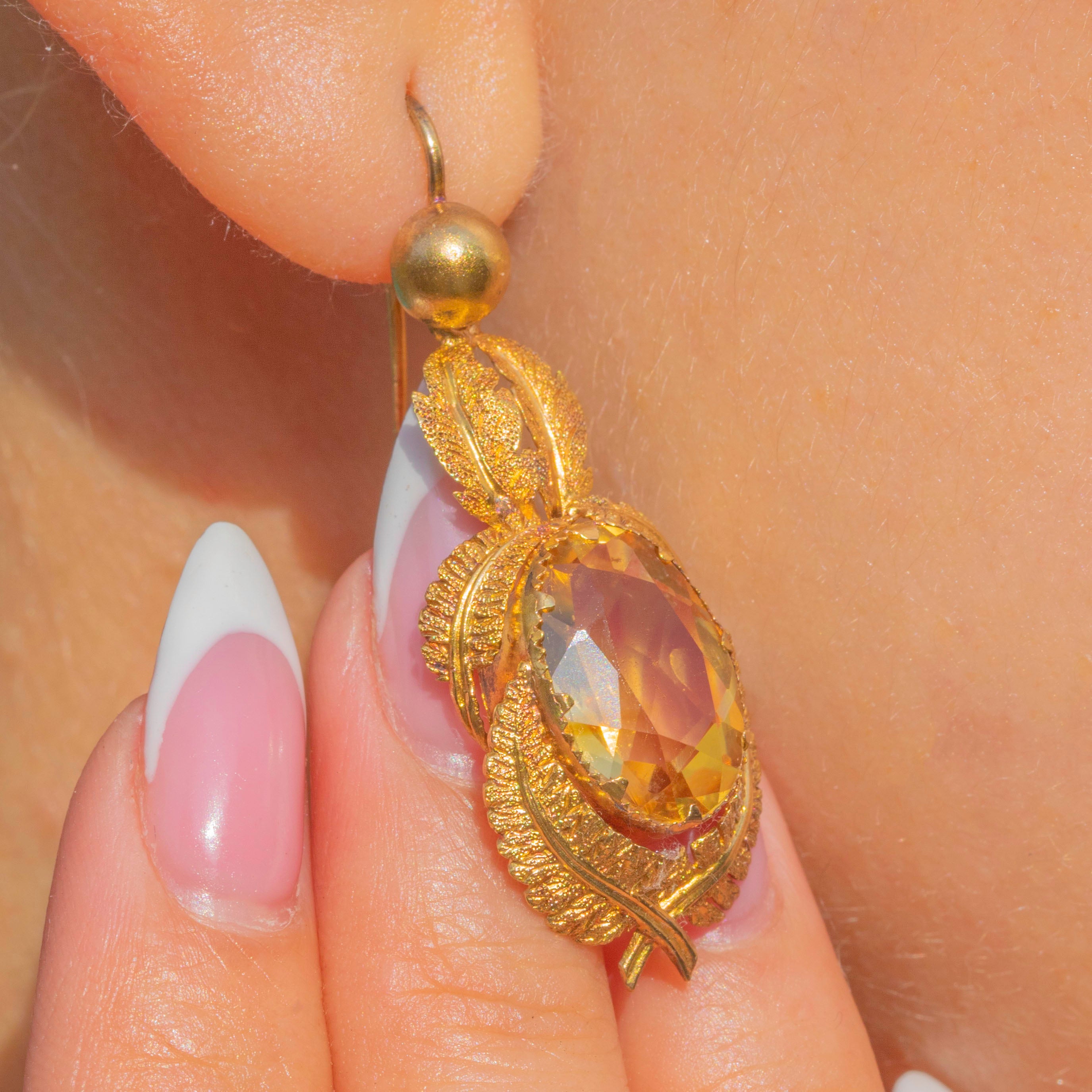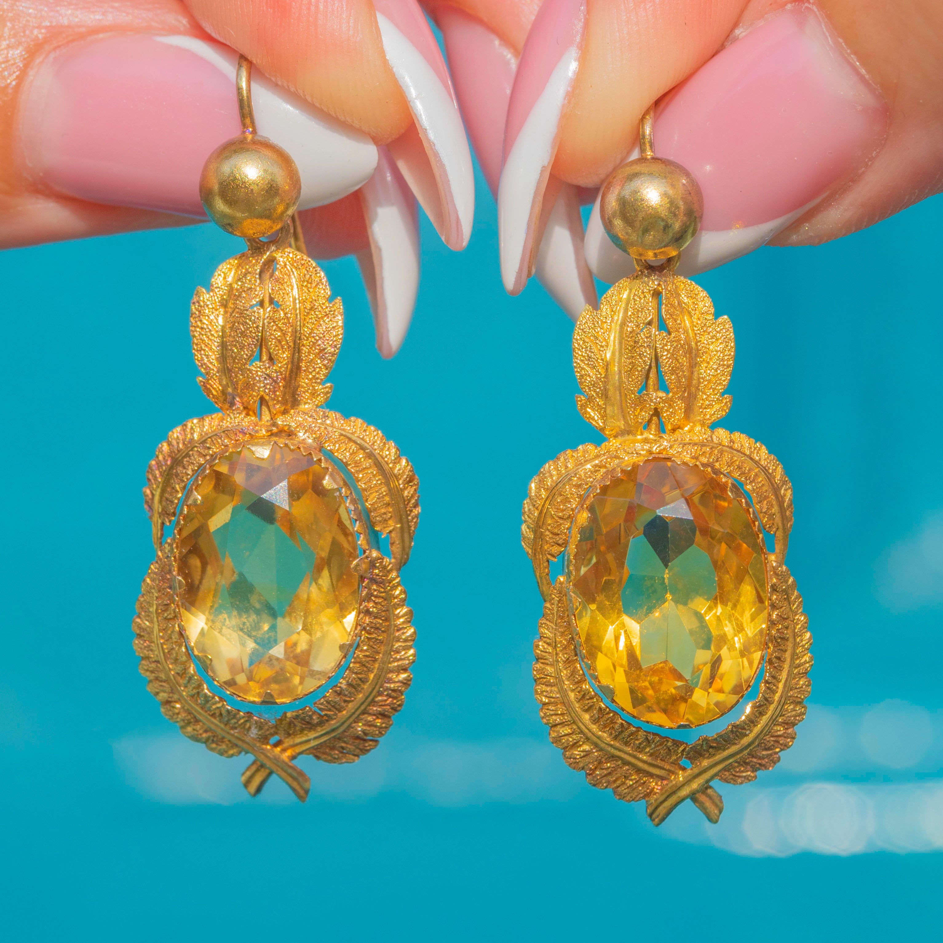 EXCELLENT: The earrings are in outstanding condition with no missing leaves and no chips to the Citrines, preserving their vibrant colour and intricate goldwork.
