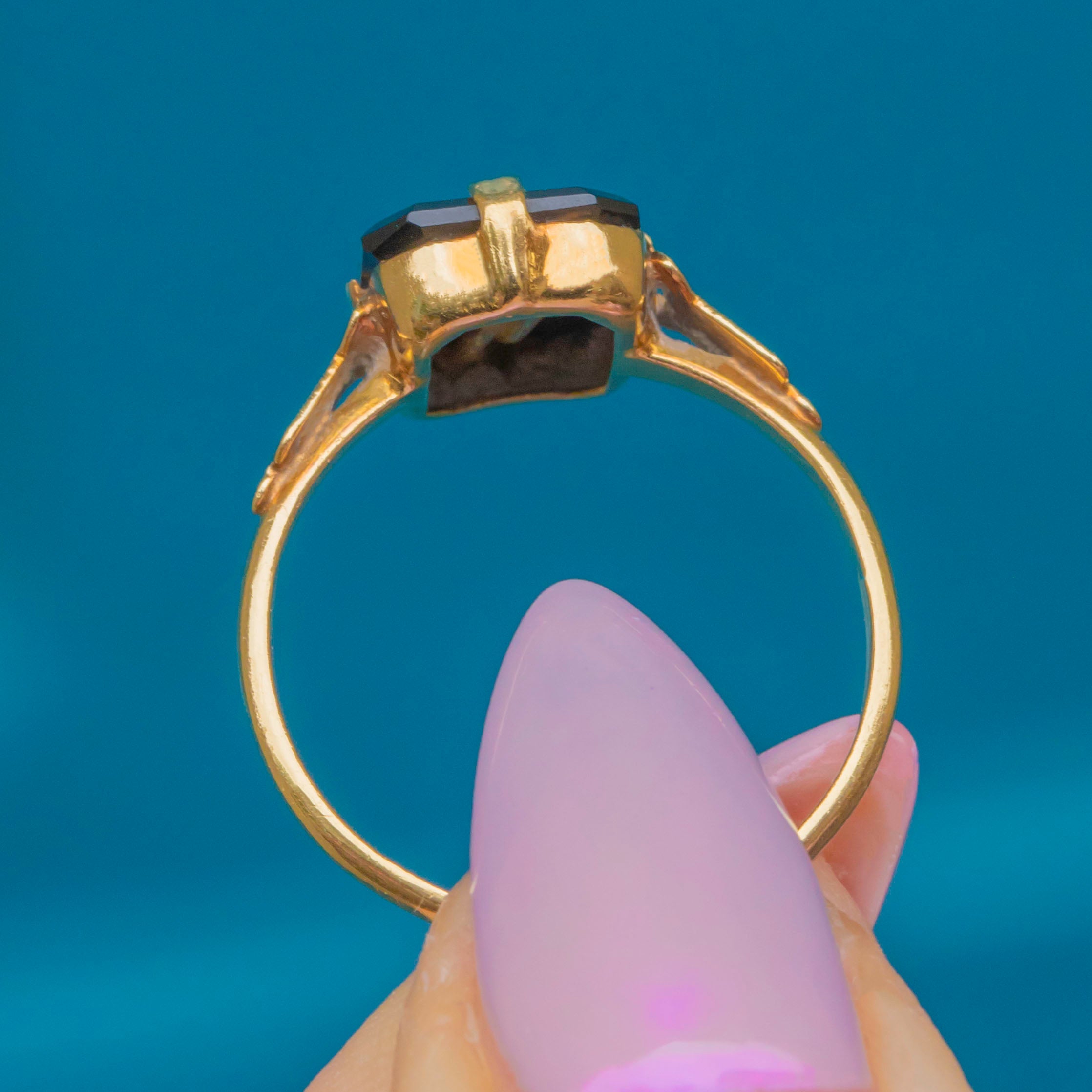 Symbolic of remembrance and devotion, this ring would once have commemorated a loved one, yet today it stands as a striking antique jewel with enduring emotional resonance and style.