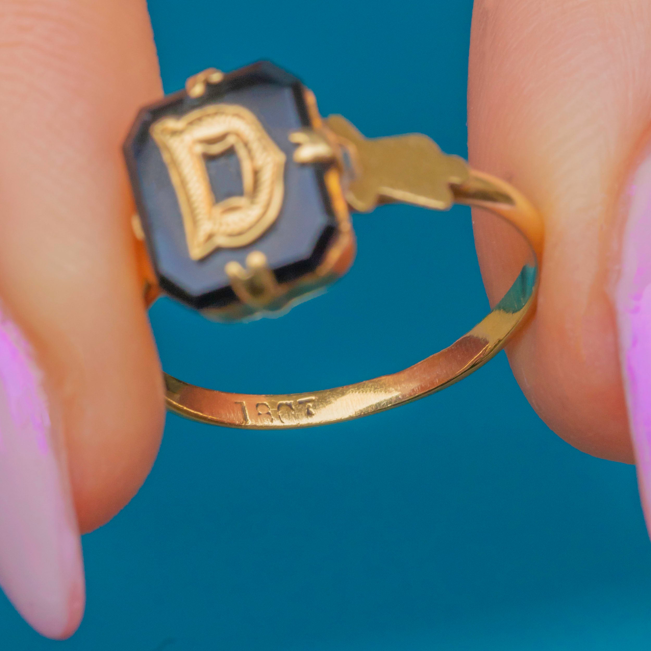 Victorian 18ct Gold "D" Initial Onyx Mourning Ring