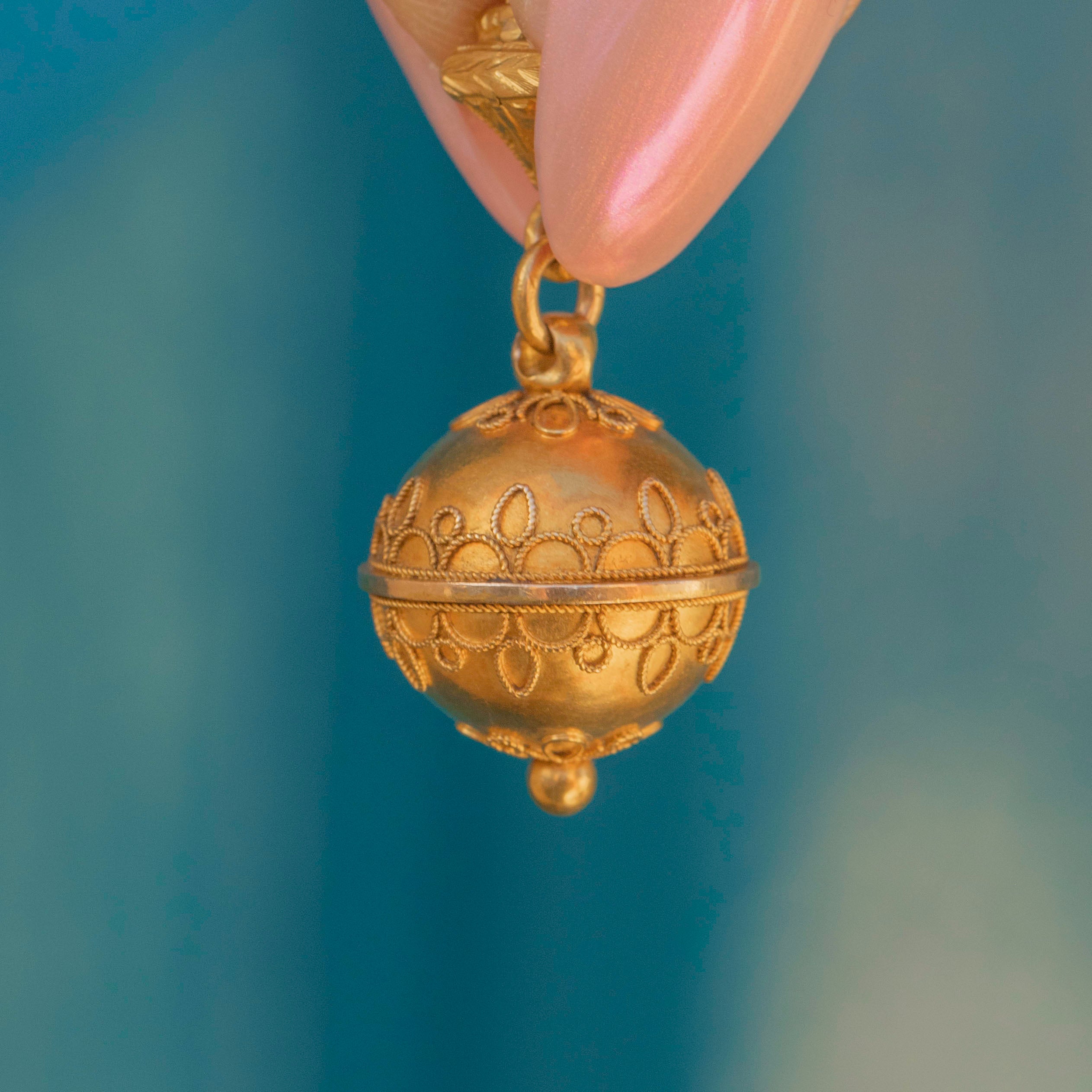 EXCELLENT. With very little to report, this Victorian 18ct Gold orb drop pendant with Dog-Clip is in near perfect condition with the most luxuriously rich hue and no scratches or scuffs, despite being over 100 years old!  Elevate an array of pieces with this fun charm!