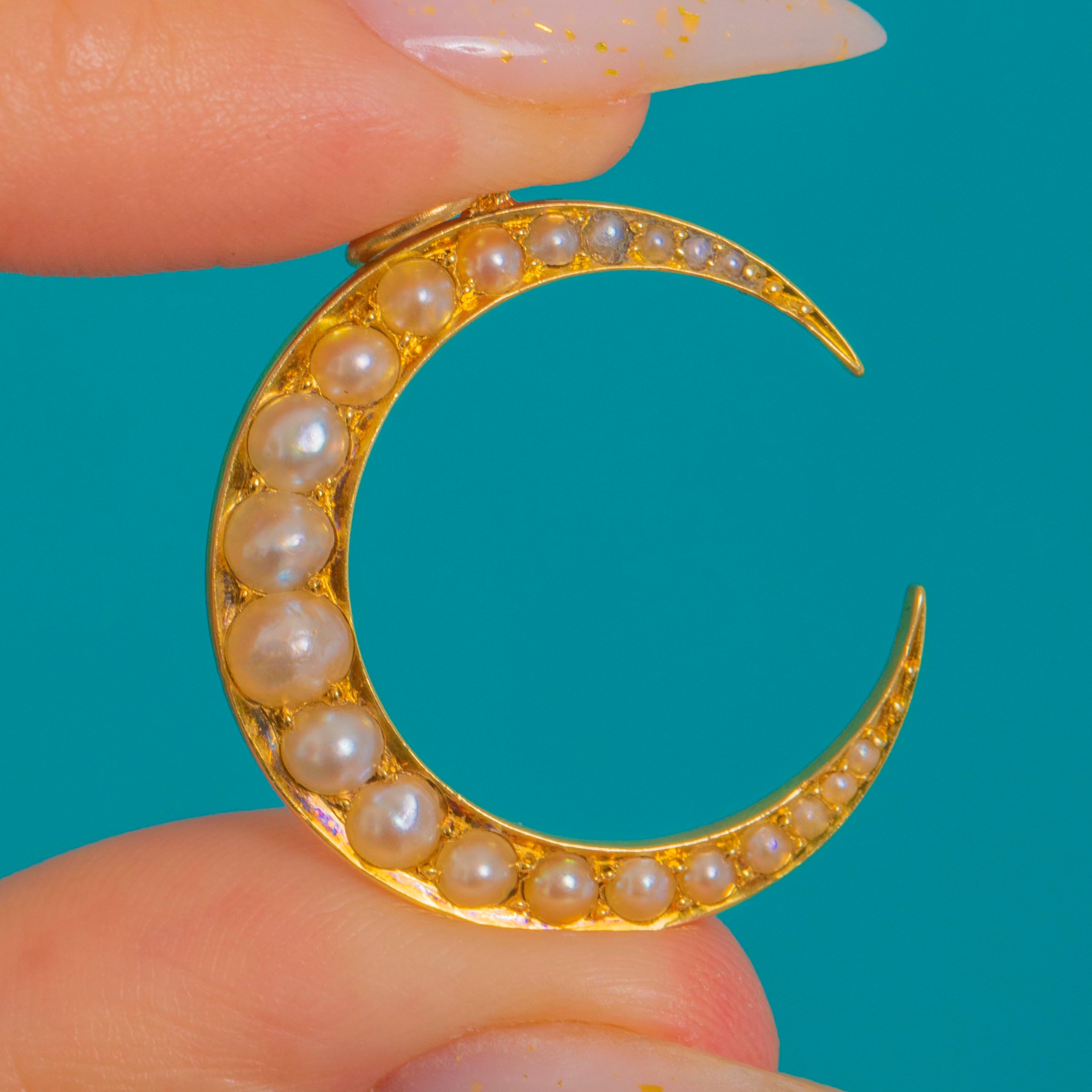 Victorian 18ct Gold Pearl Crescent Moon Pendant