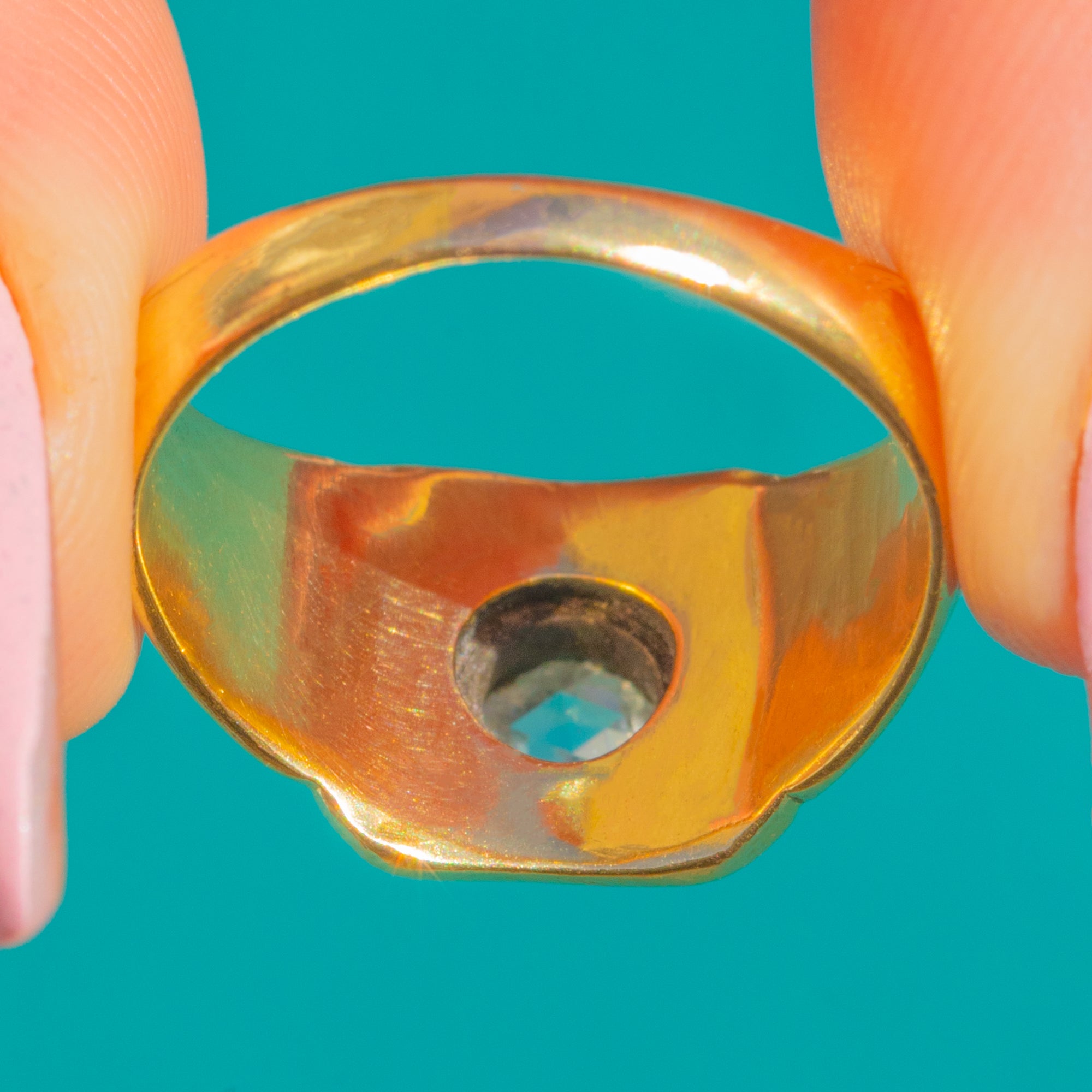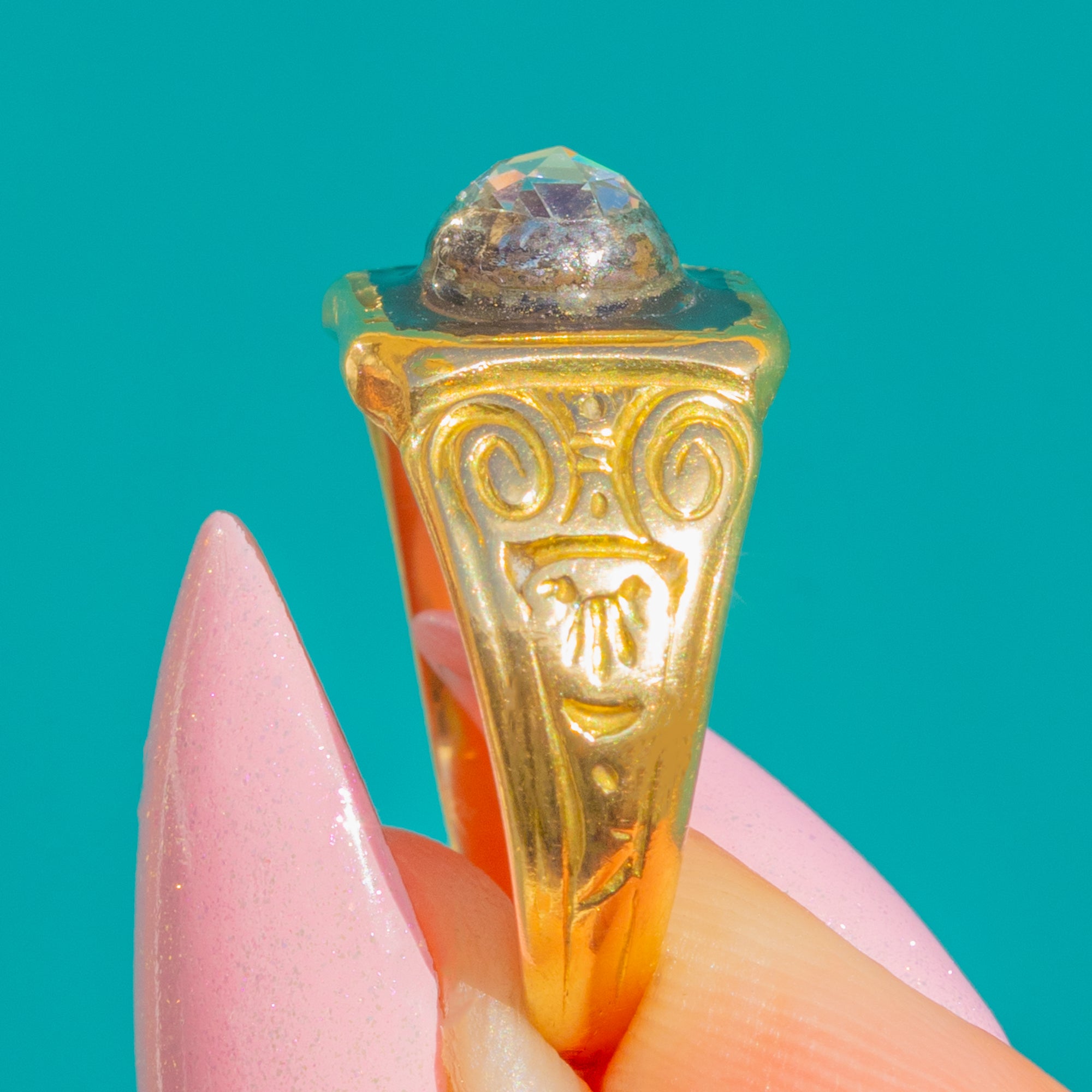 Victorian Ring aus 18ct Gold mit Rosenschliff-Diamant und Emaille