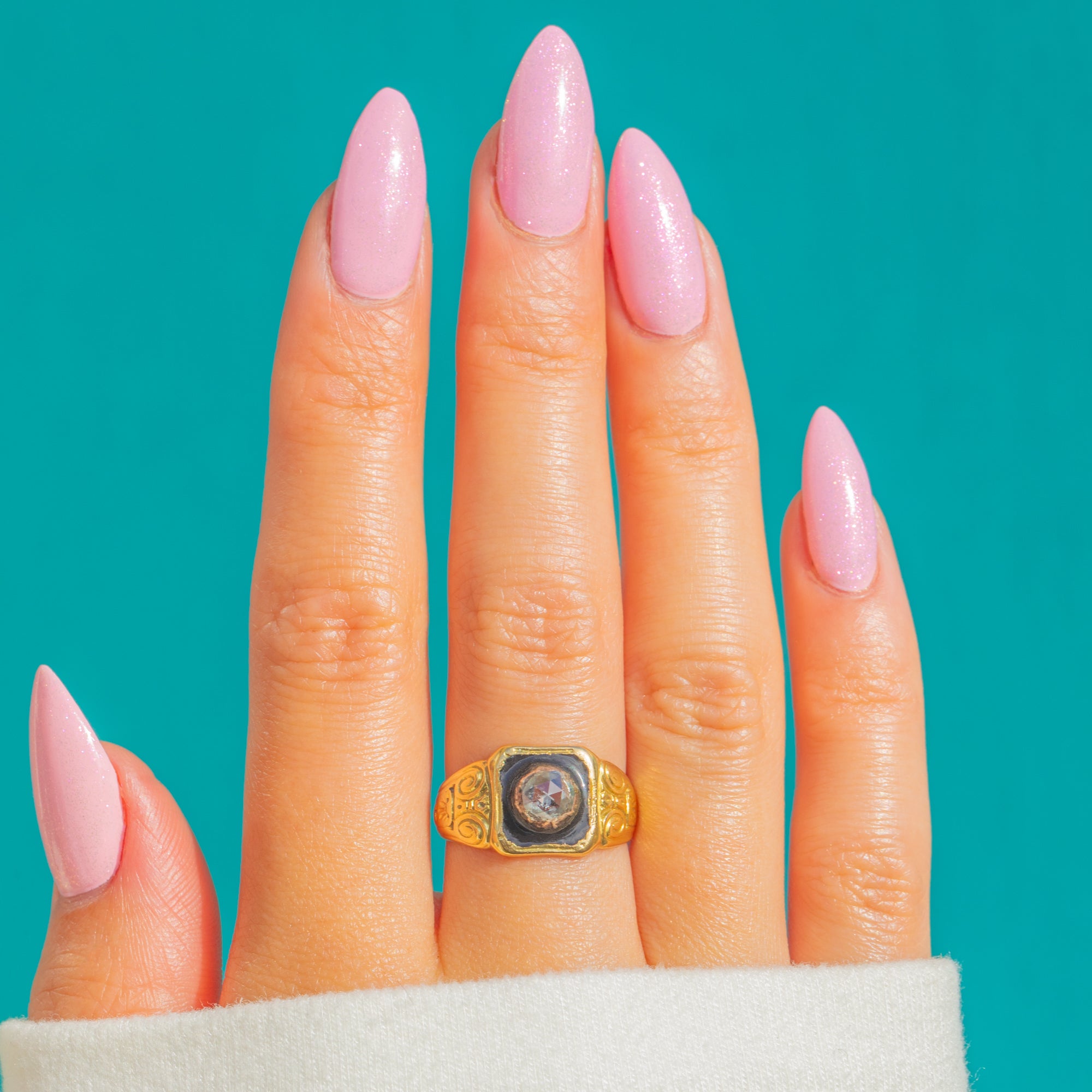 Kompakt und dennoch kunstvoll gestaltet, wirkt diese Siegelring-Silhouette dezent luxuriös und wunderbar tragbar. Das Zusammenspiel von Gold, Silber und schwarzer Emaille ist typisch Victorian und macht diesen Ring zu einer wunderschönen Wahl – ob als Teil eines Stapels oder als charaktervolles Einzelstück.