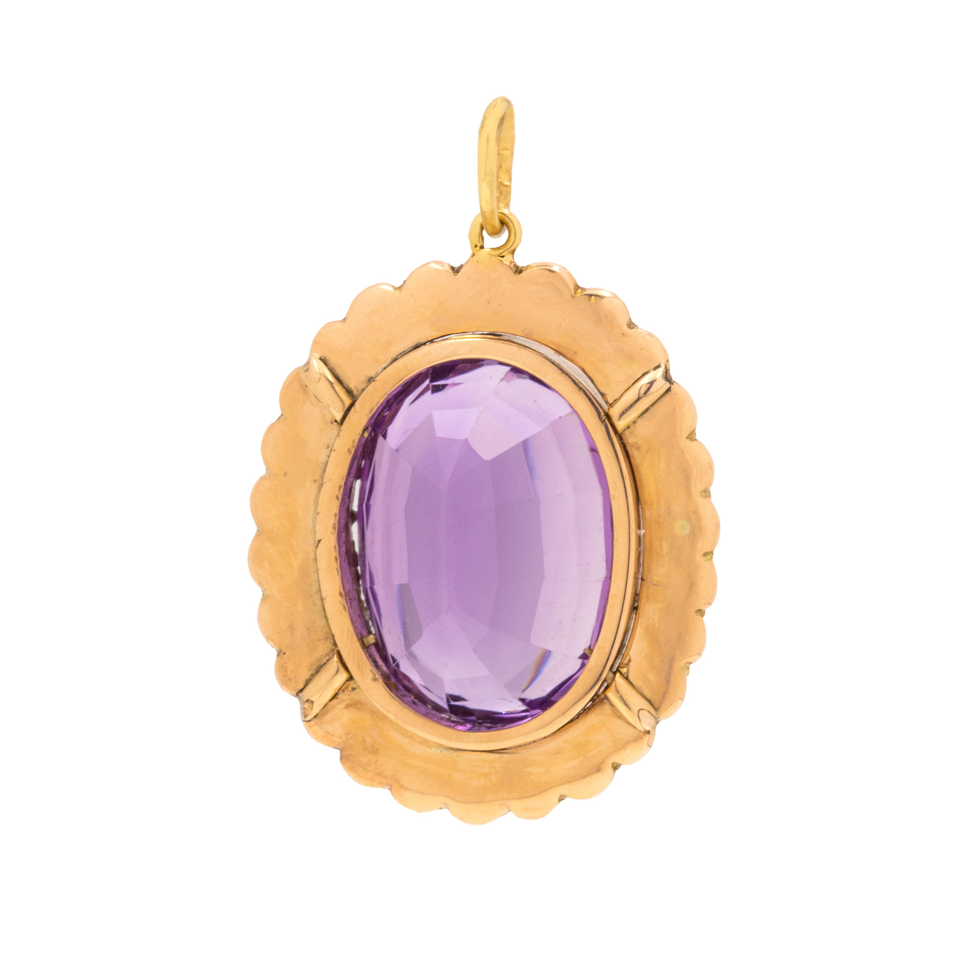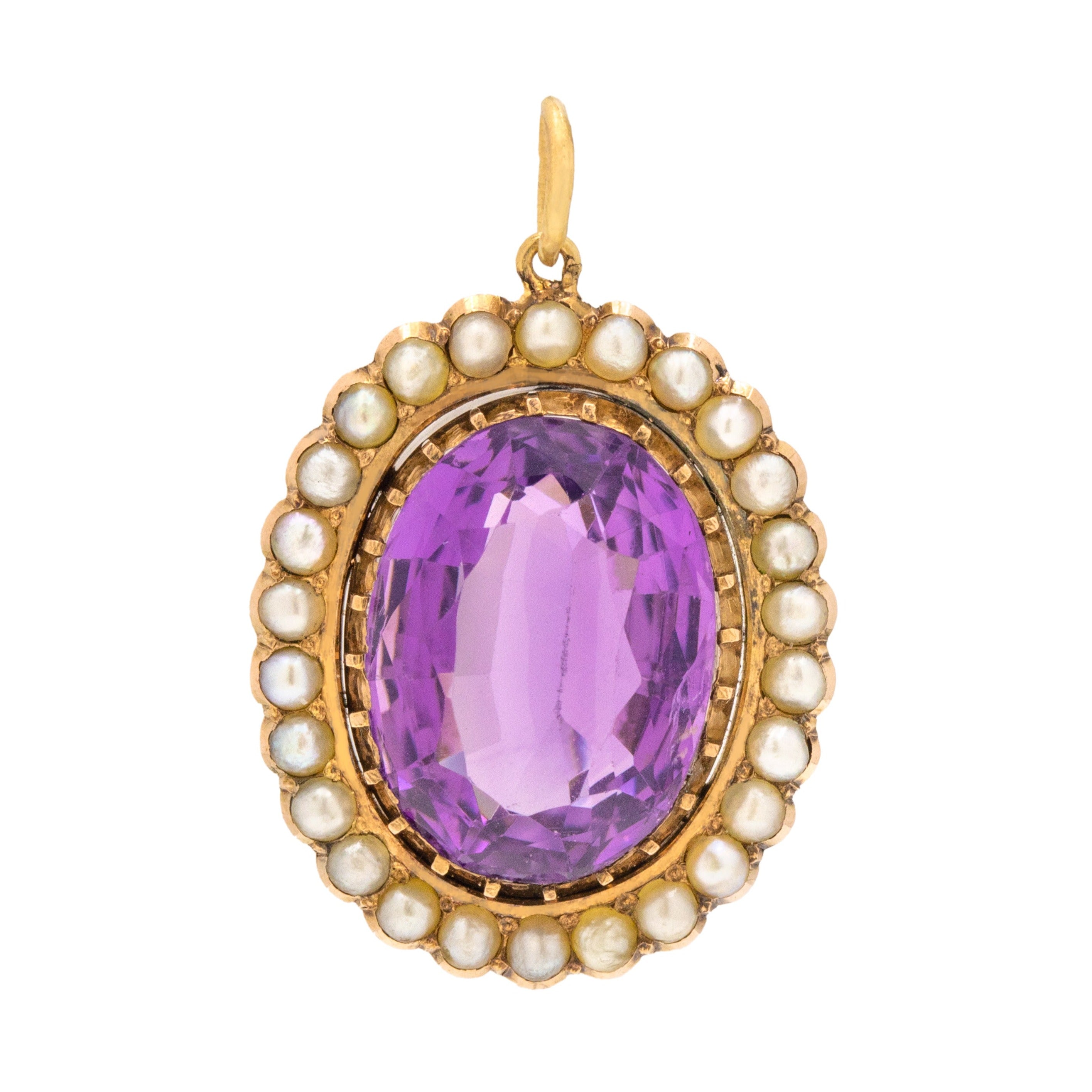 Victorian 9ct Gold Amethyst Pearl Oval Pendant, 9.00ct.
