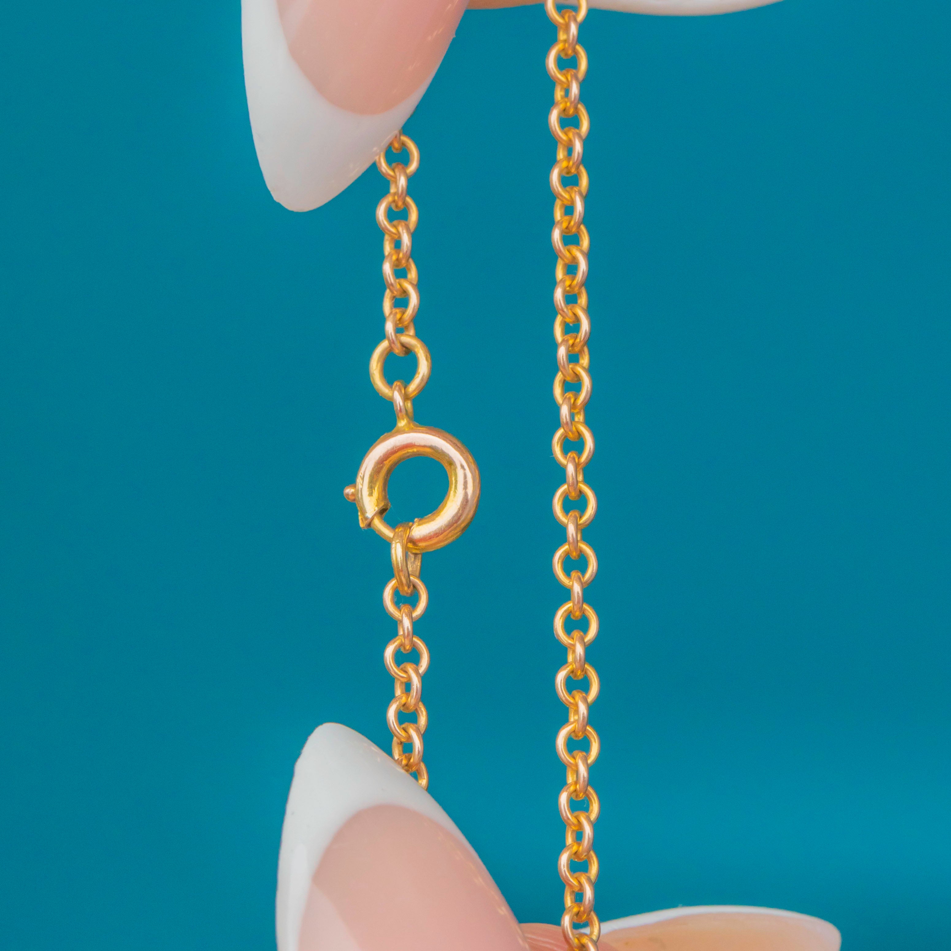 This antique chain is a quintessential piece of Victorian jewellery, crafted in rich 9ct Gold. The links are formed in a classic belcher style, with their rounded forms offering both strength and elegance. Its lightness and timeless simplicity make it an ideal layering chain or the perfect base for a treasured pendant.