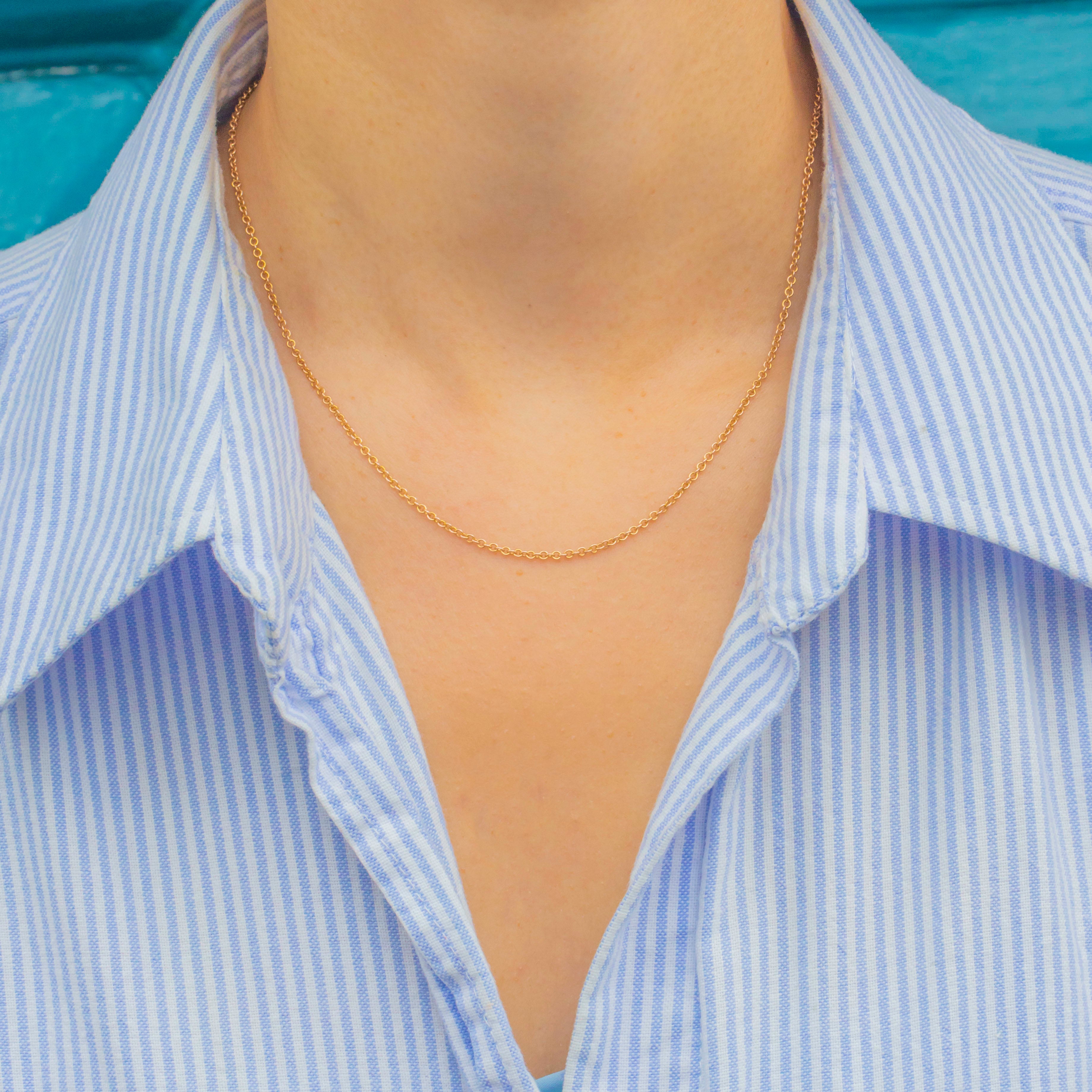 Measuring 15" long, this delicate Gold chain sits beautifully at the collarbone, bringing a warm golden glow to the neckline.