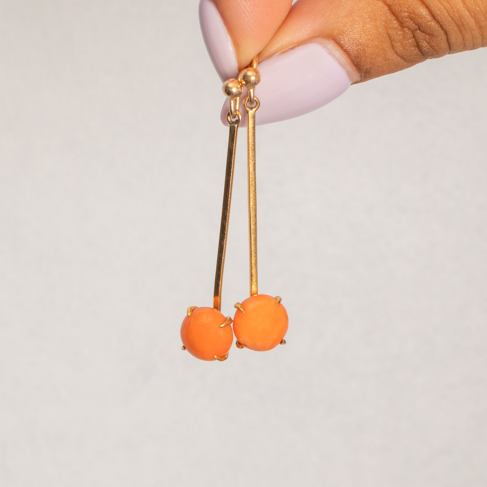 The Coral drops boast a fantastic sunset-orange hue, perfectly complemented by the 9ct Gold settings.