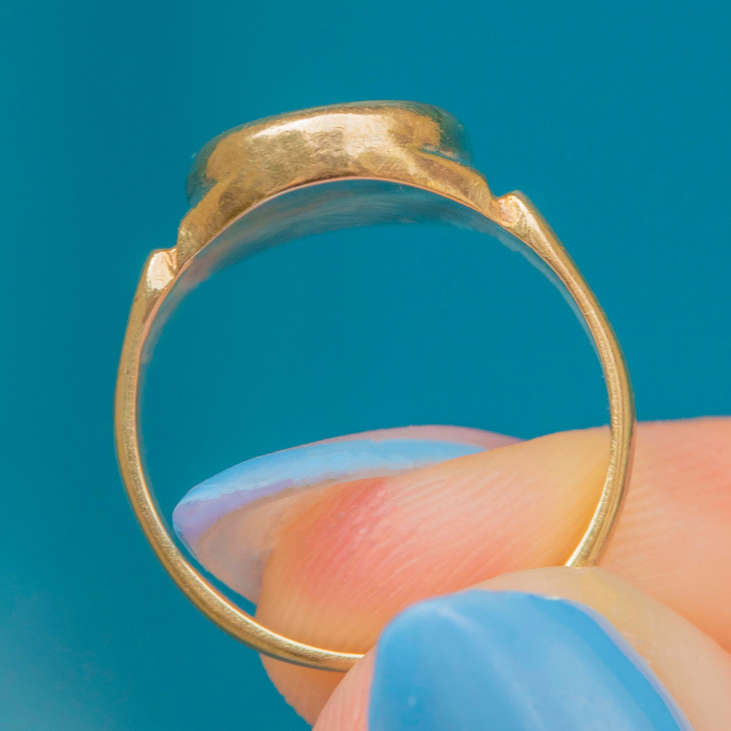 VERY GOOD-EXCELLENT: The 9ct Gold is bright and glossy, with its smooth band providing comfortable wear. The Enamel is intricately detailed and has retained a nice colour. There are two areas of wear on the bezel setting, but this does not detract from the overall impact of the ring and the Enamel remains undamaged. With little else to note, you can wear this Victorian signet ring with utmost confidence.