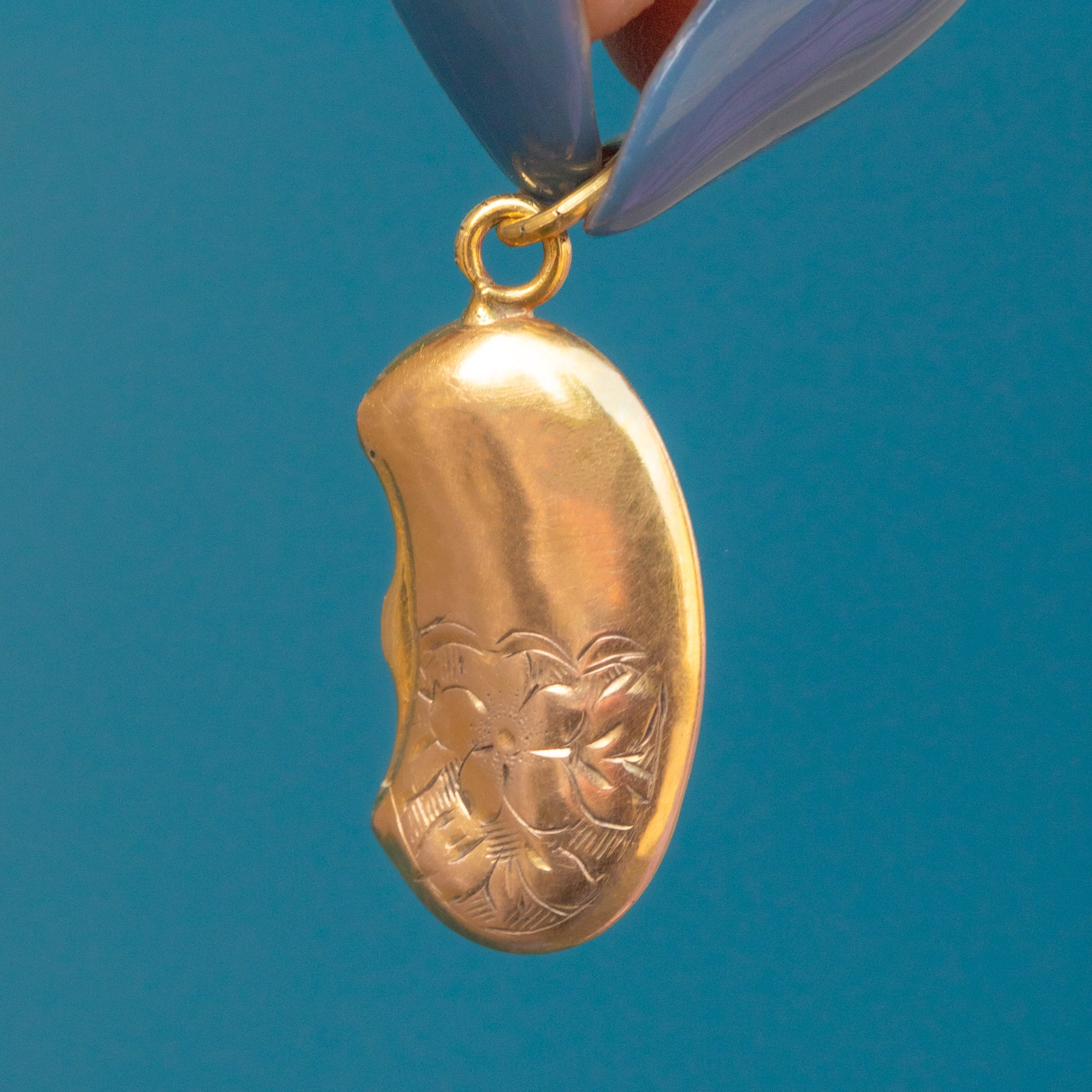Victorian 9ct Gold Engraved Lucky Bean Pendant