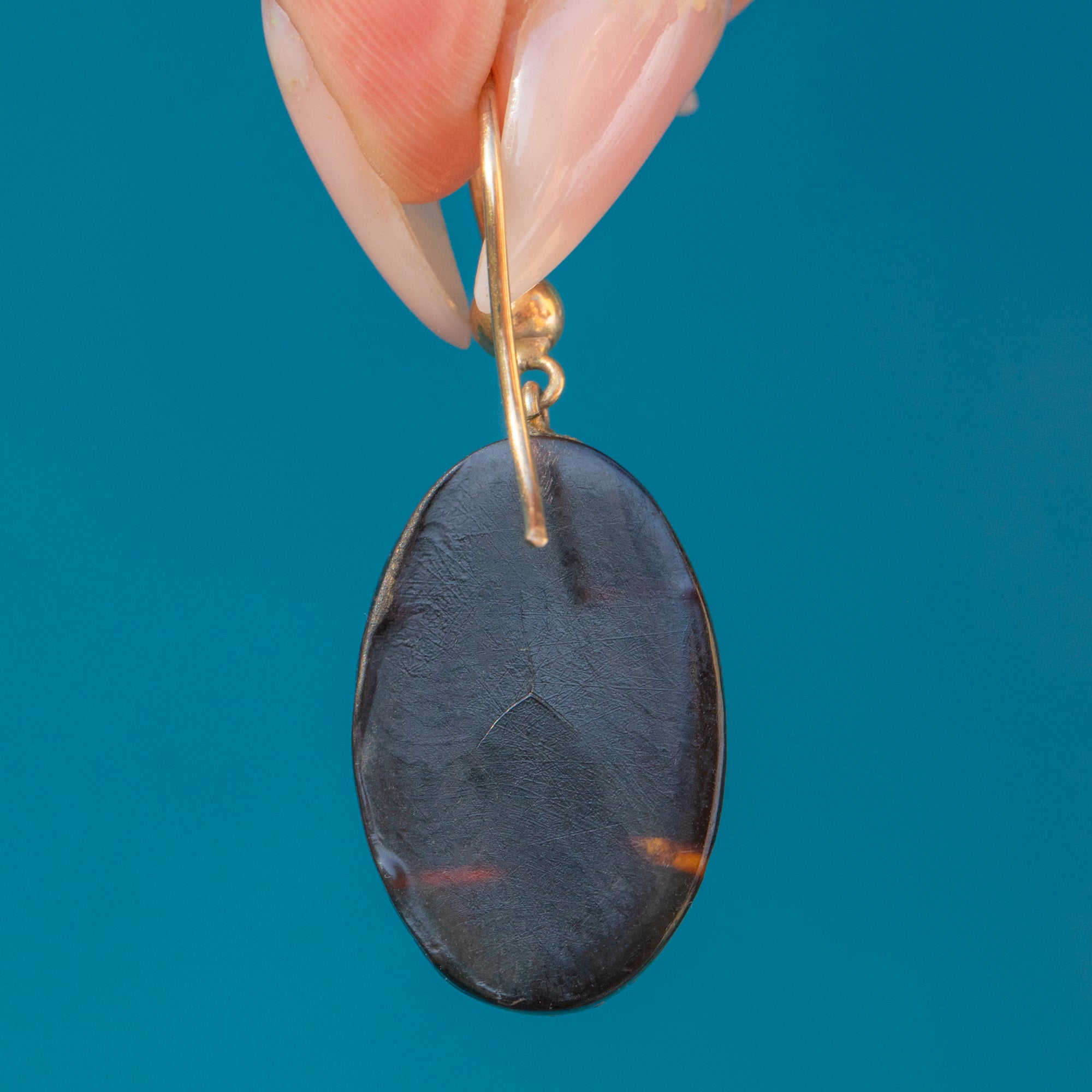 Victorian 9ct Gold Pique Oval Drop Earrings c.1860