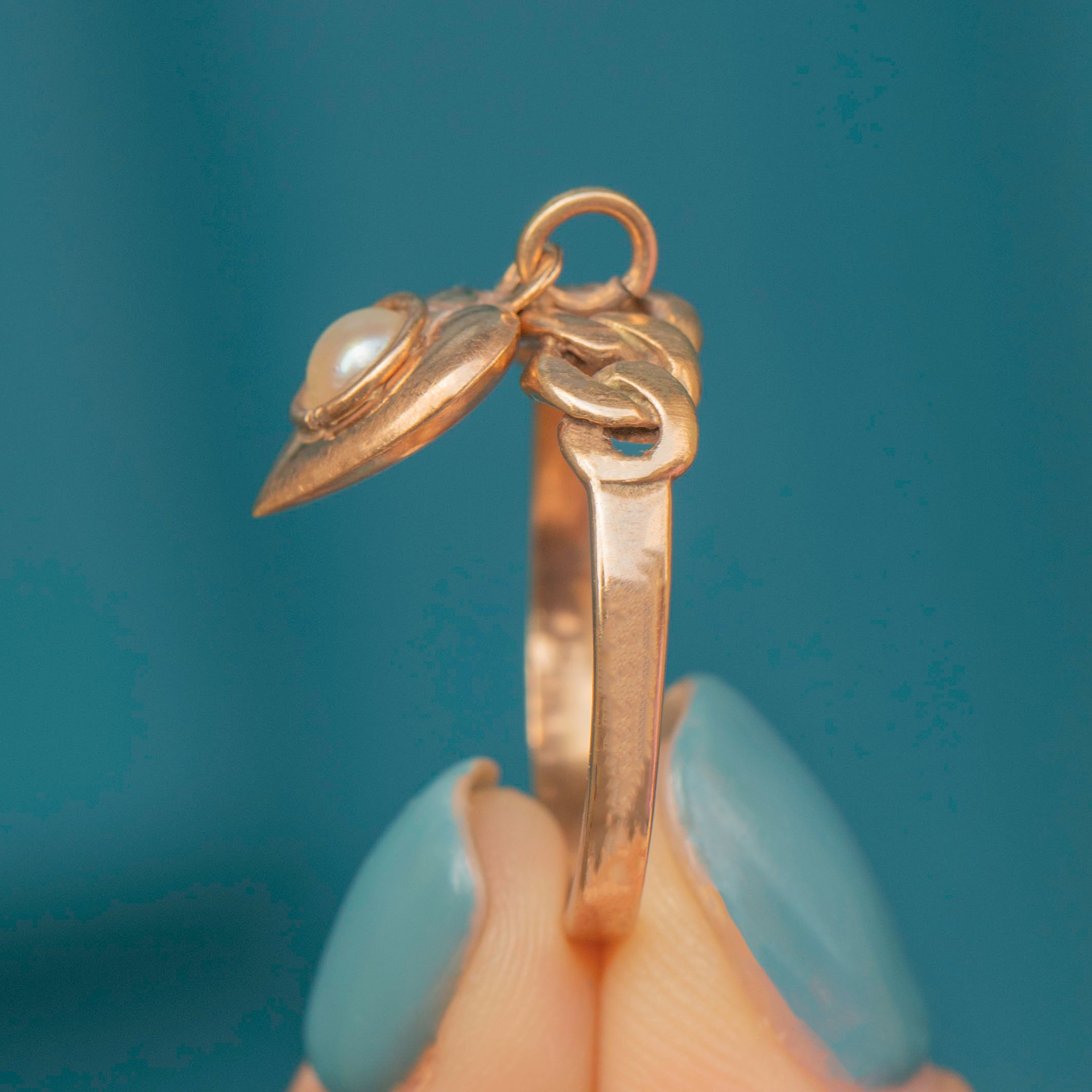 Victorian 9ct Gold Ring with Pearl Heart Drop