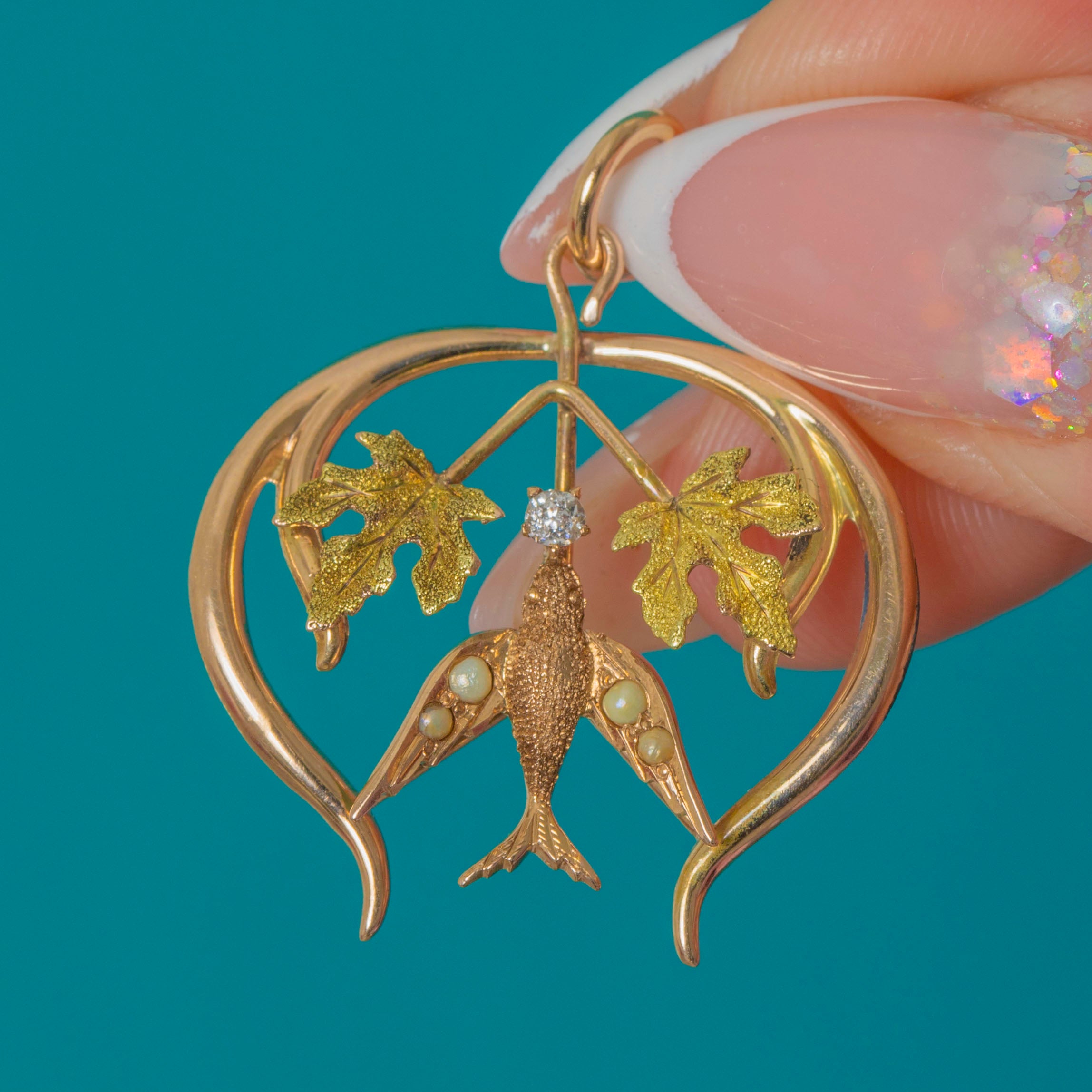 MATERIALIEN: Geprüft als 9ct Gold, natürliche Perlen, Diamant.