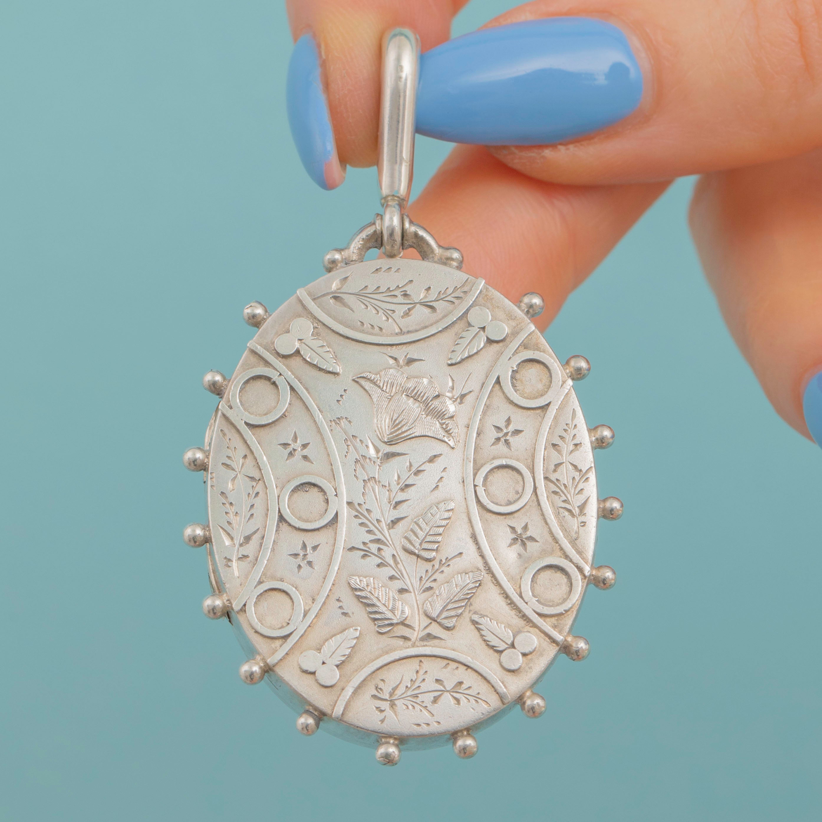 Dated to 1882, this enchanting Victorian Aesthetic Silver locket will make a striking addition to your collection, or a lovely gift for a loved one!