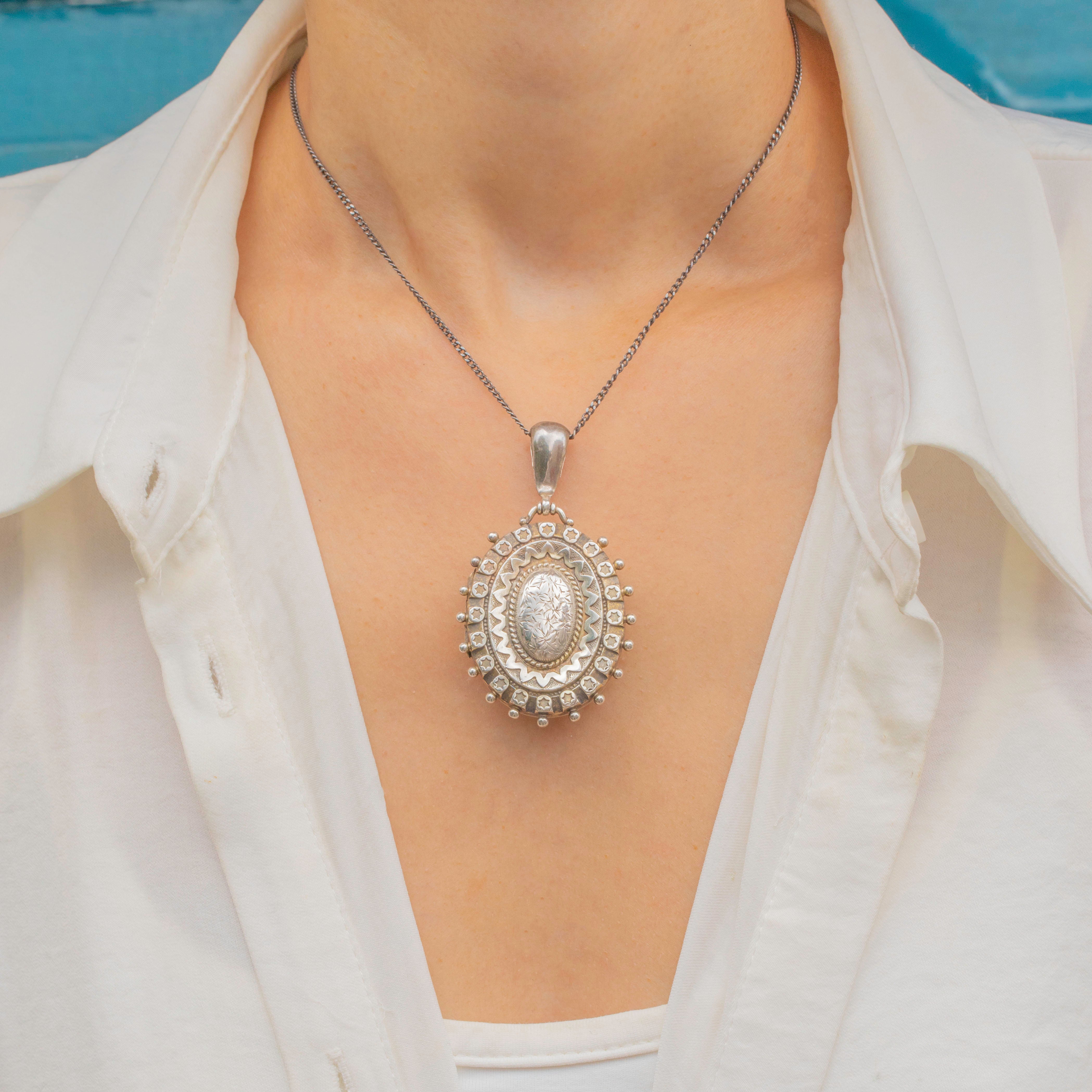 This Victorian locket has a distinctive design, with a floral engraved centre and a star border, that sets it apart from the crowd, and we love the addition of the beaded edge, another classic Victorian touch!