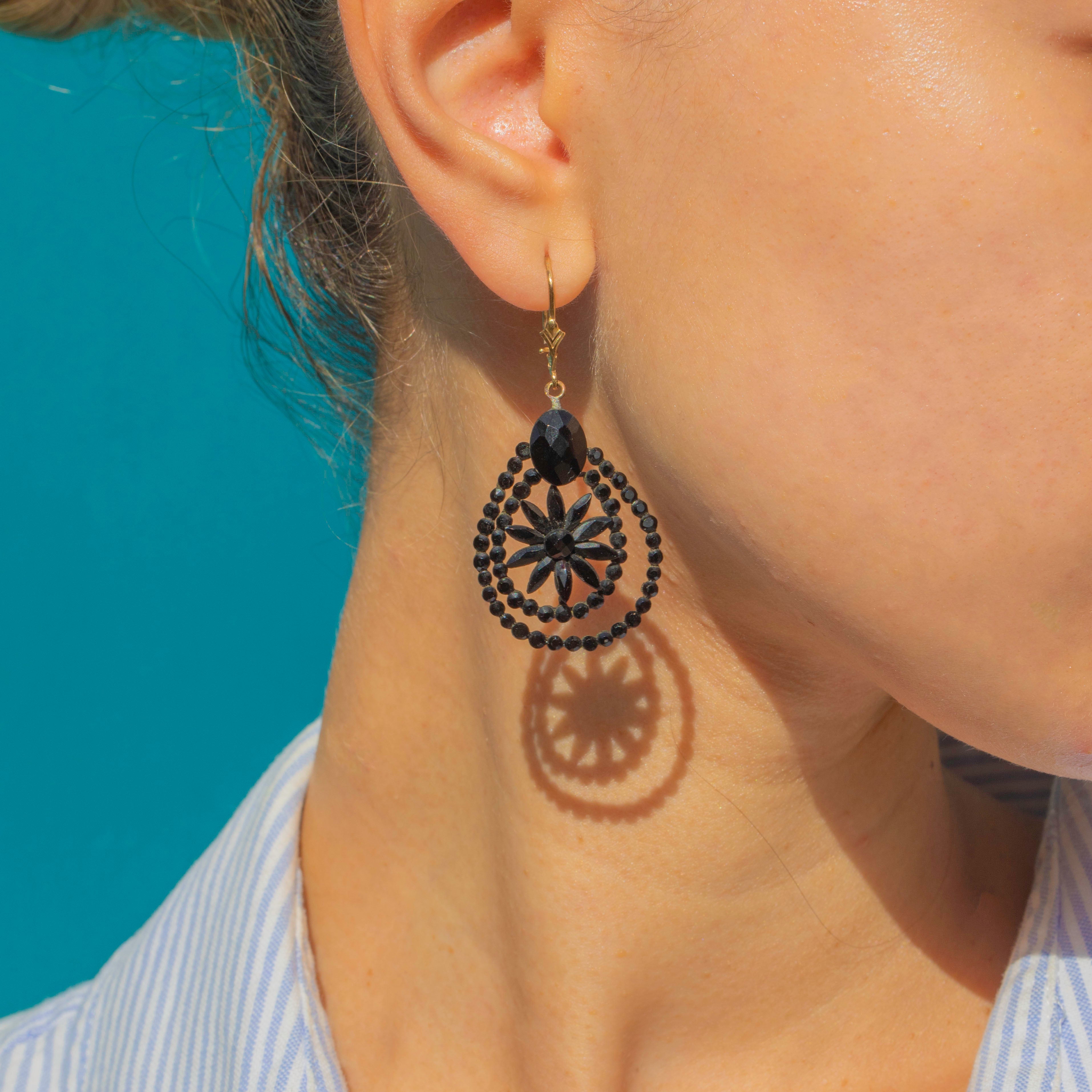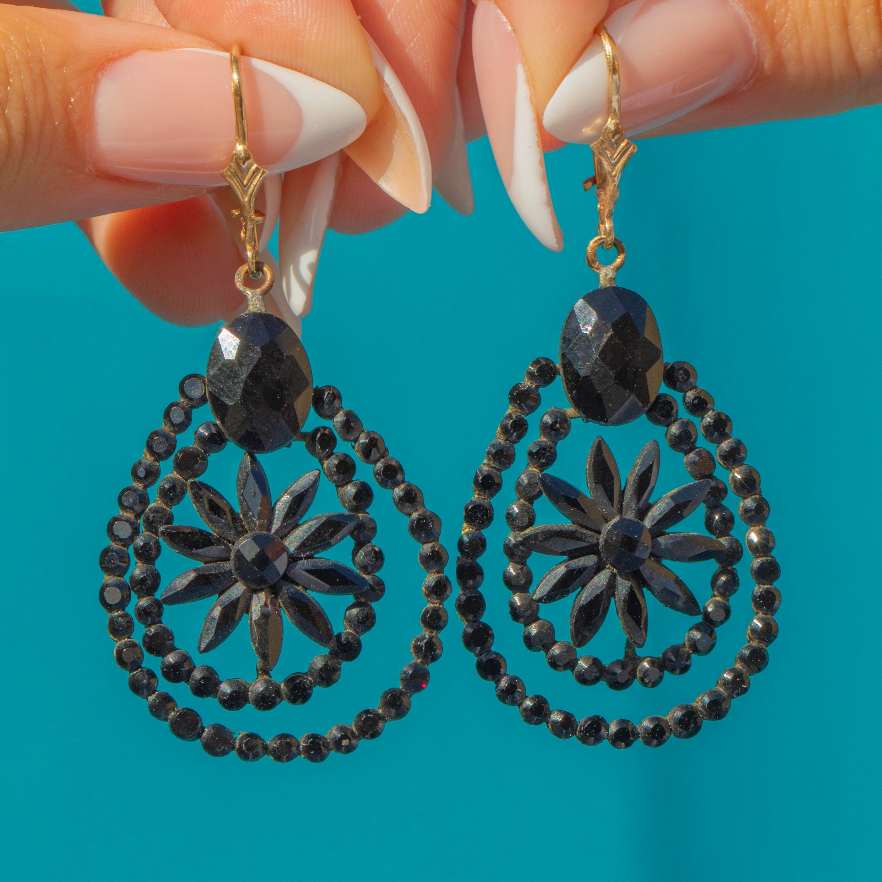 Viktorianische französische Jet-Tropfenohrringe mit 9ct Gold-Schraubverschlüssen