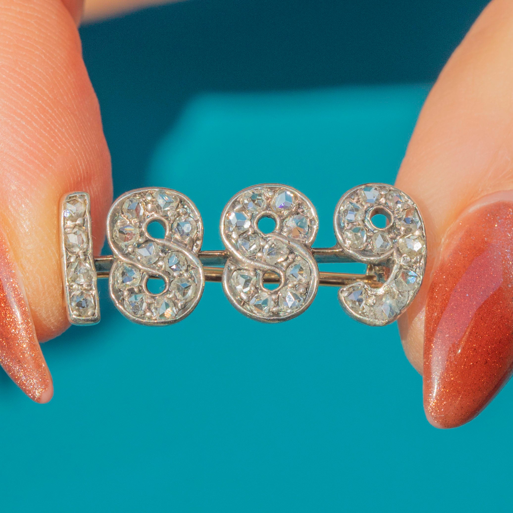 Celebrate International Women's Day with this Victorian rose-cut Diamond 1889 brooch! Inlaid with an array of scintillating rose-cut Diamonds, this Victorian Silver brooch catches the light wonderfully with a dazzling twinkle.