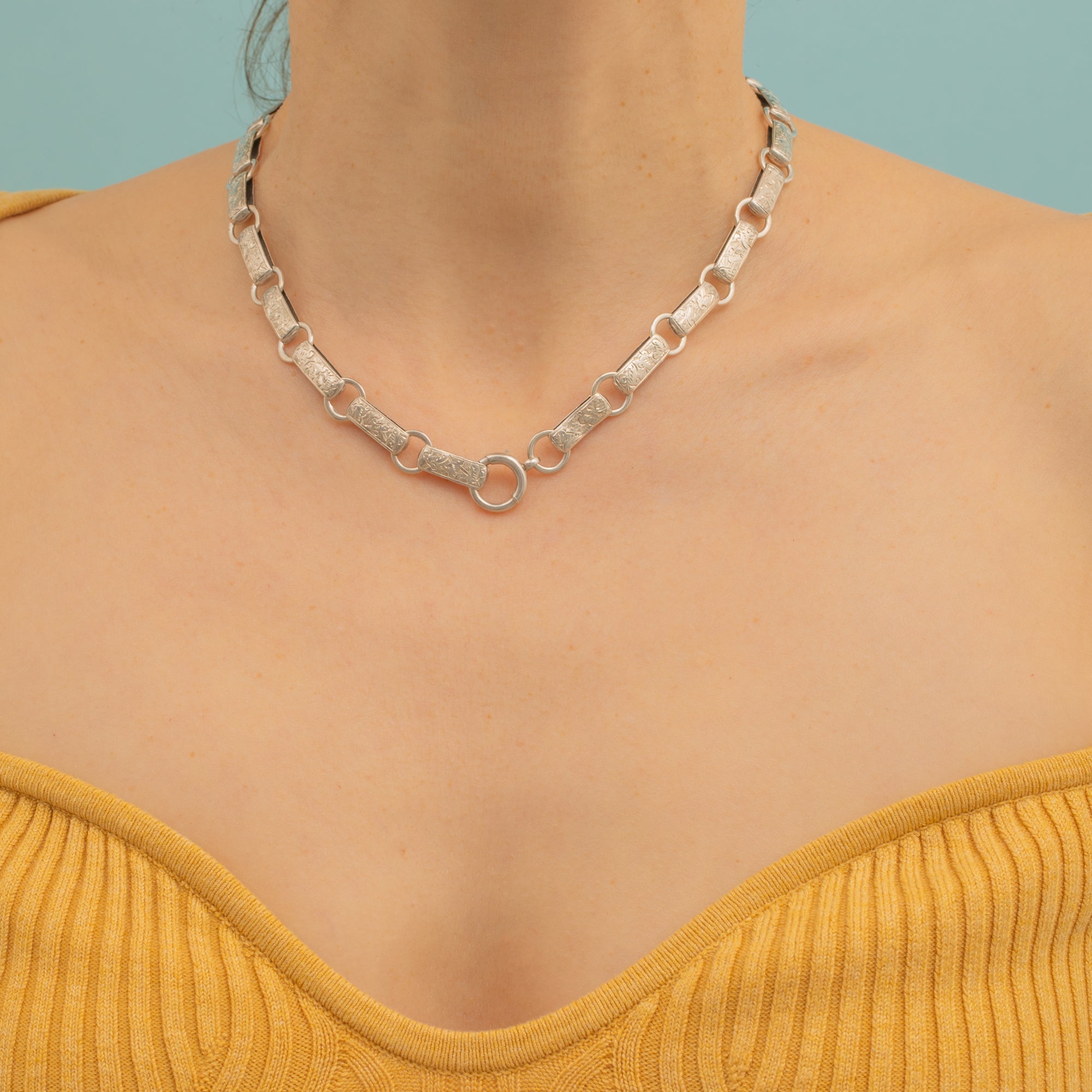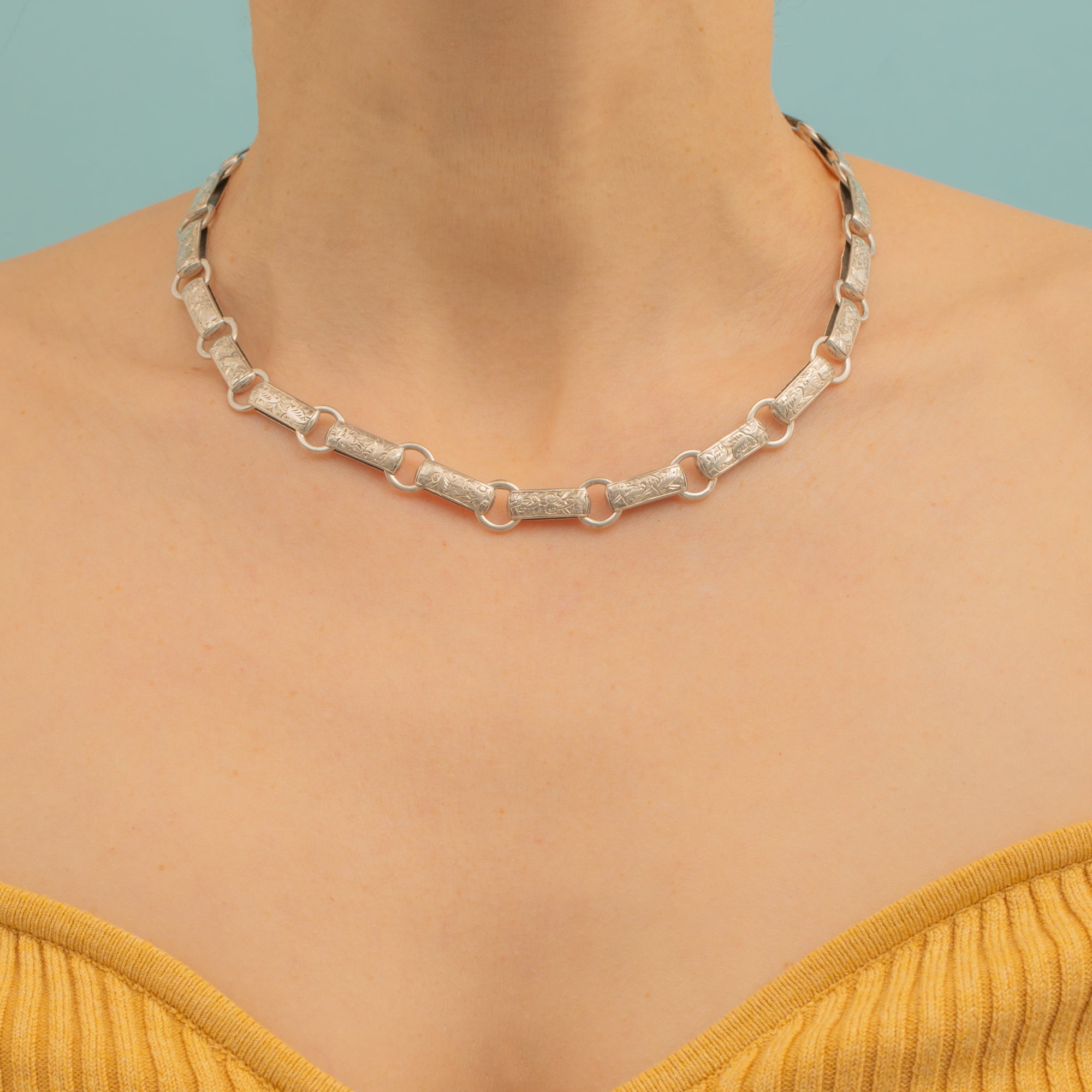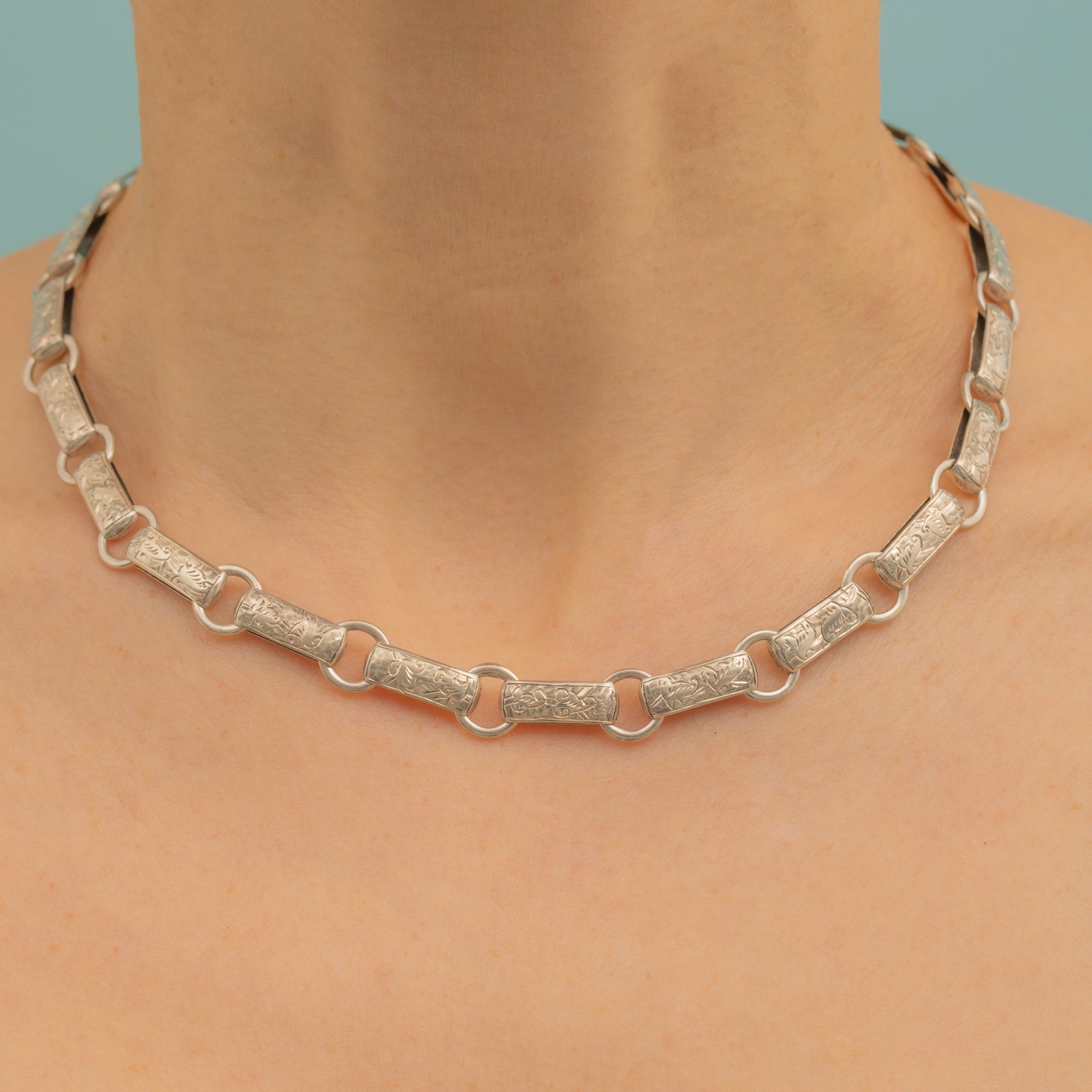 The crisp engravings on the links of this Victorian silver chain portray distinct, quirky patterns - capturing the eye of all who cast their eye on her.