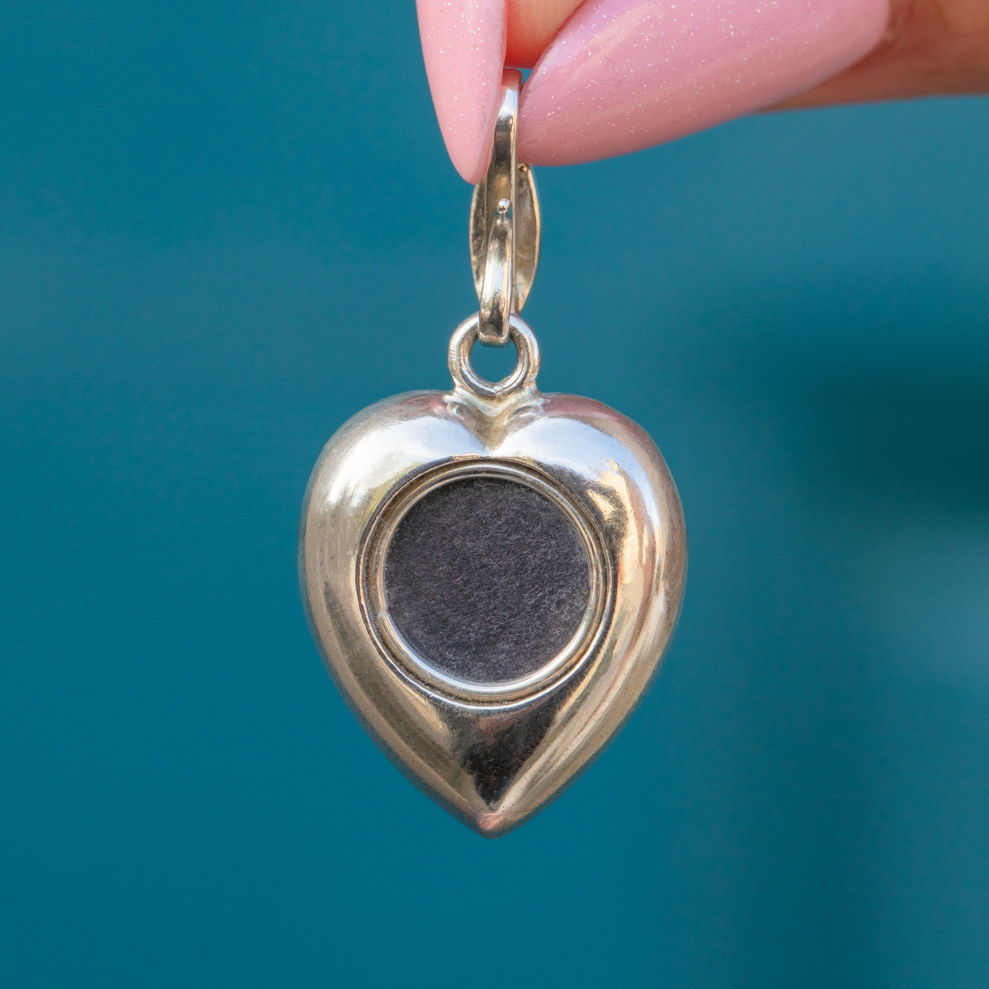 Victorian Silver Turquoise Pave Heart Pendant, Locket Back