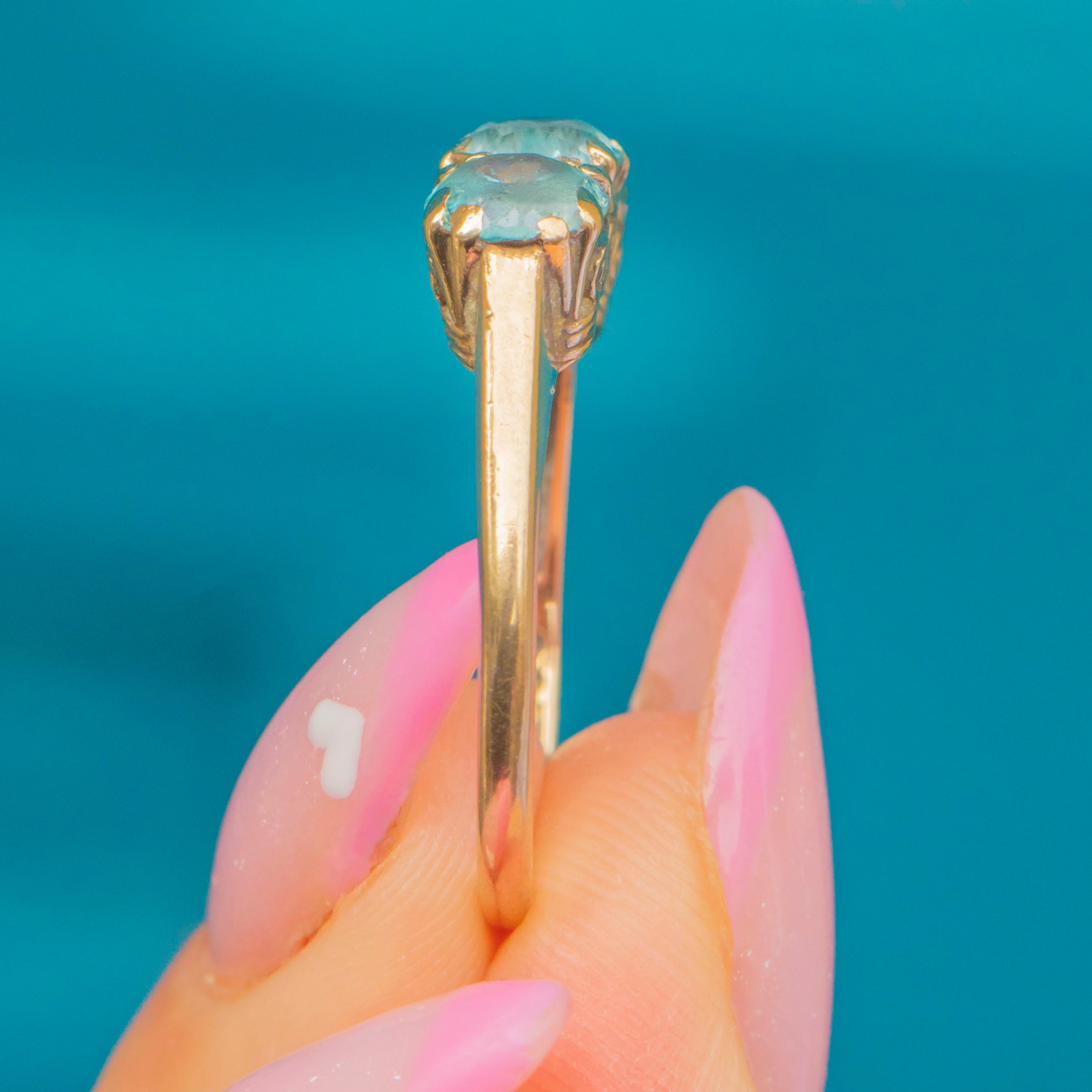 Vintage 9ct Gold Blue Zircon Trilogy Ring