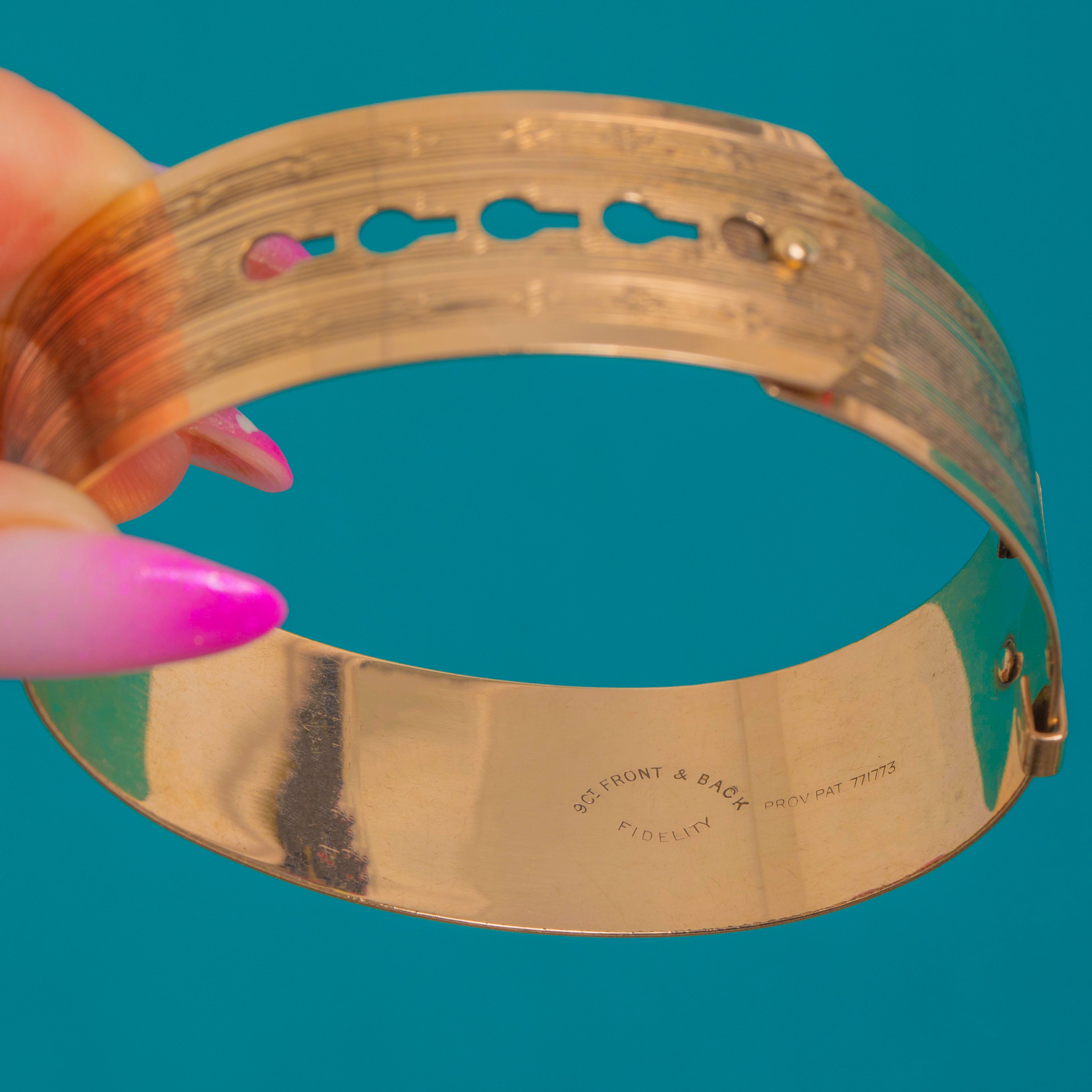 Antiker Armreif aus 9 Karat Doublé-Gold mit gravierter Schnalle